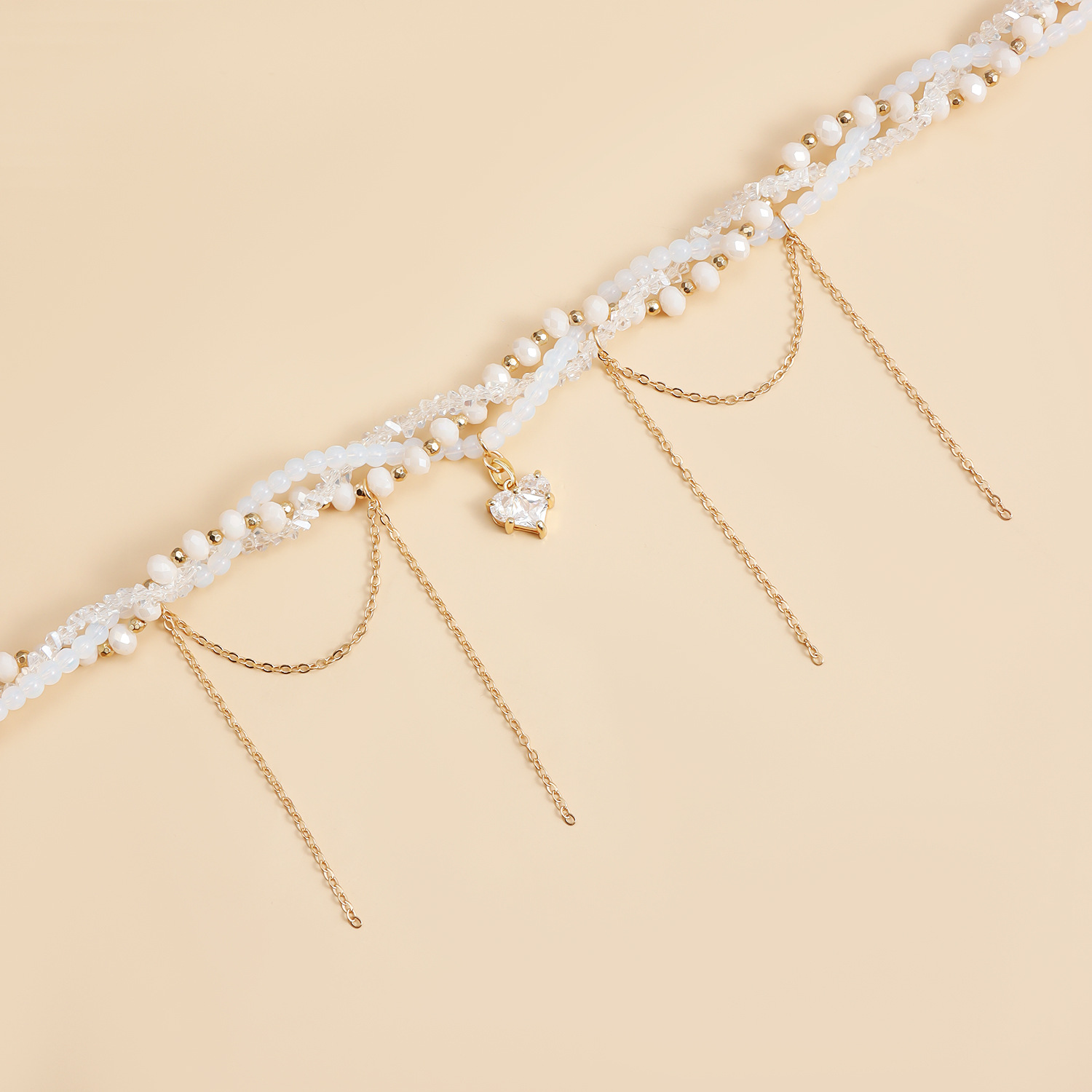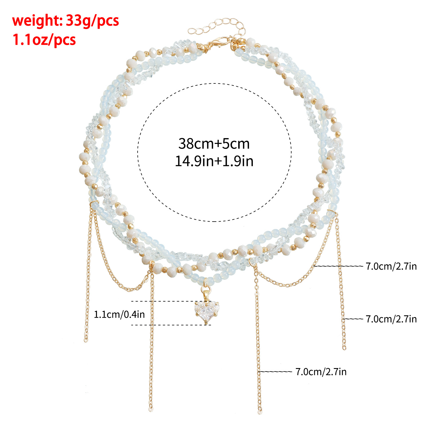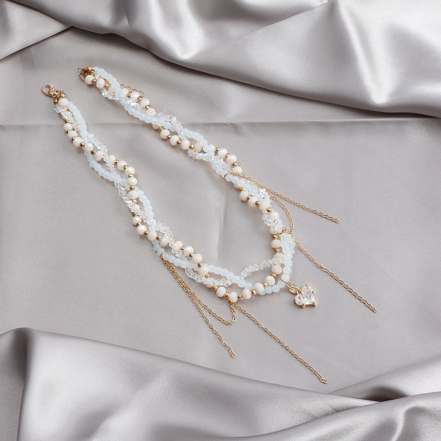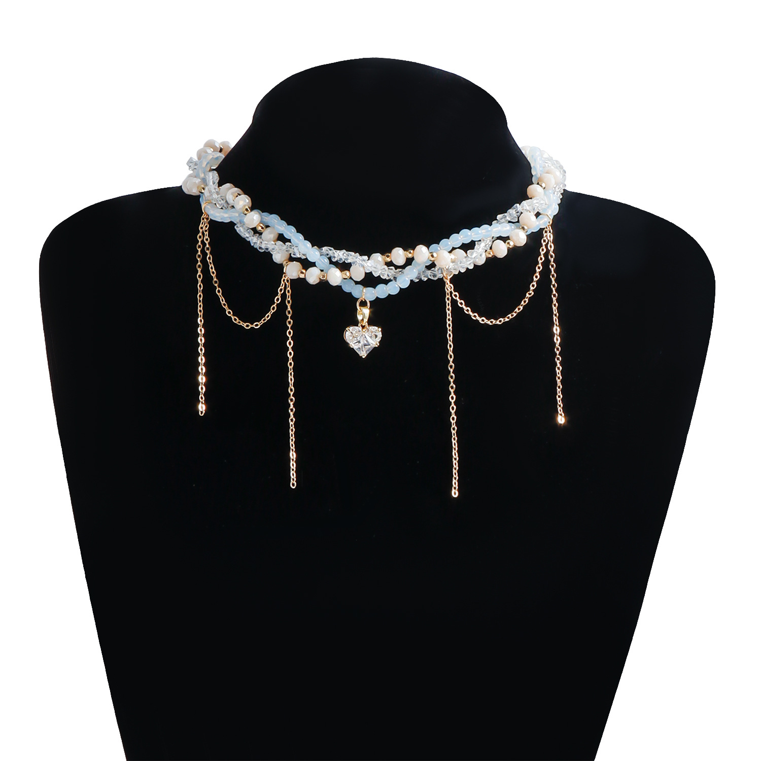 欧美跨境饰品玻璃水晶轻奢爱心流苏锁骨链ins高级缠绕多层项链女 English | 投诉