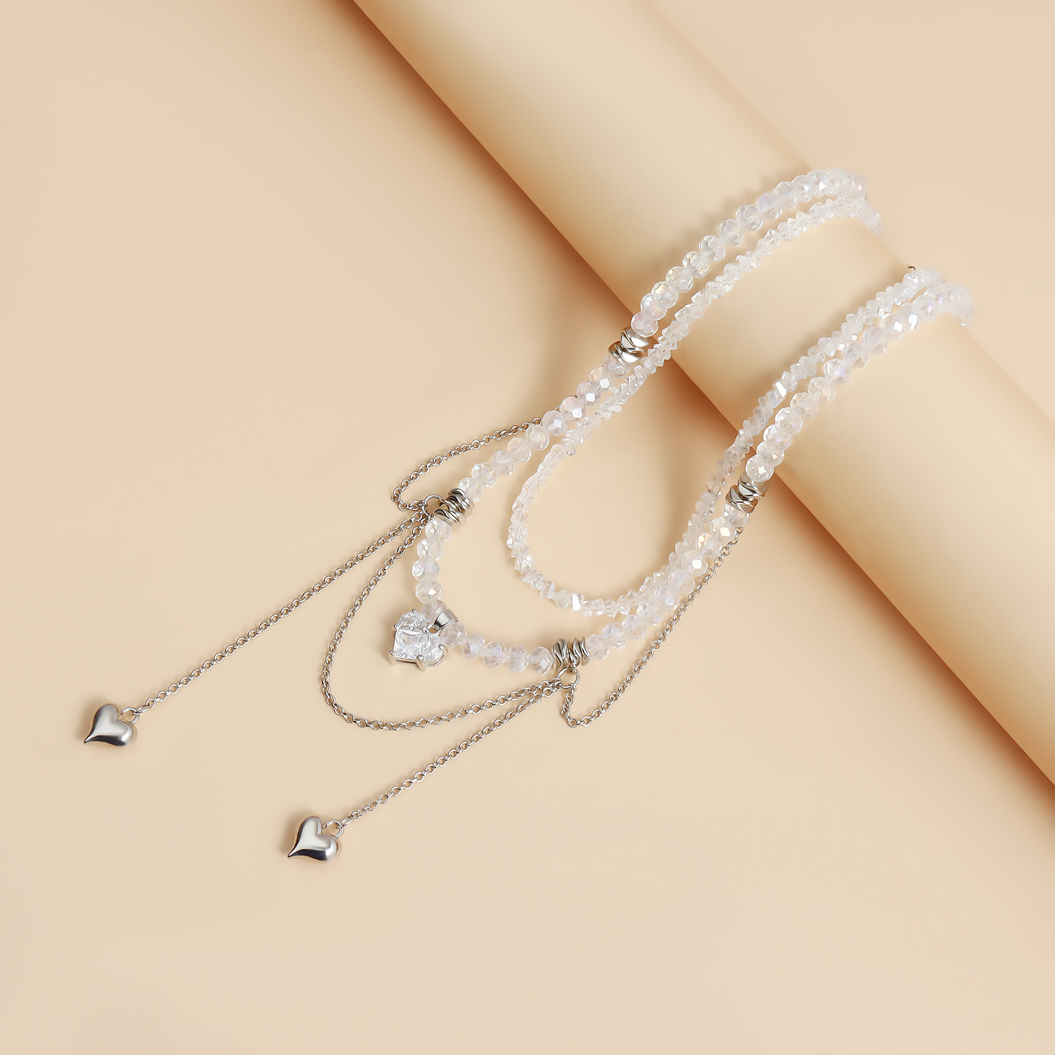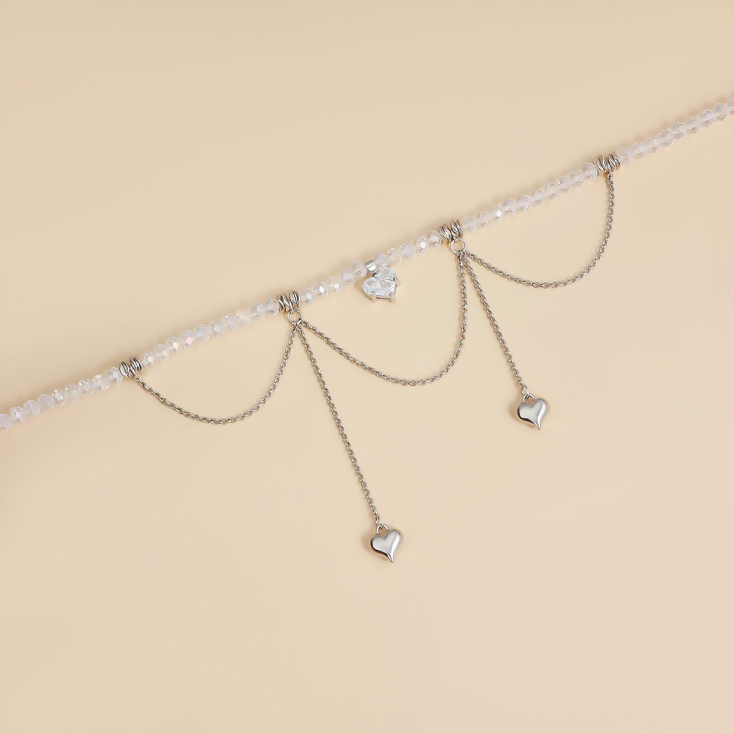 欧美跨境饰品爱心锆石双链流苏设计锁骨链ins轻奢高级感水晶项链 English | 投诉