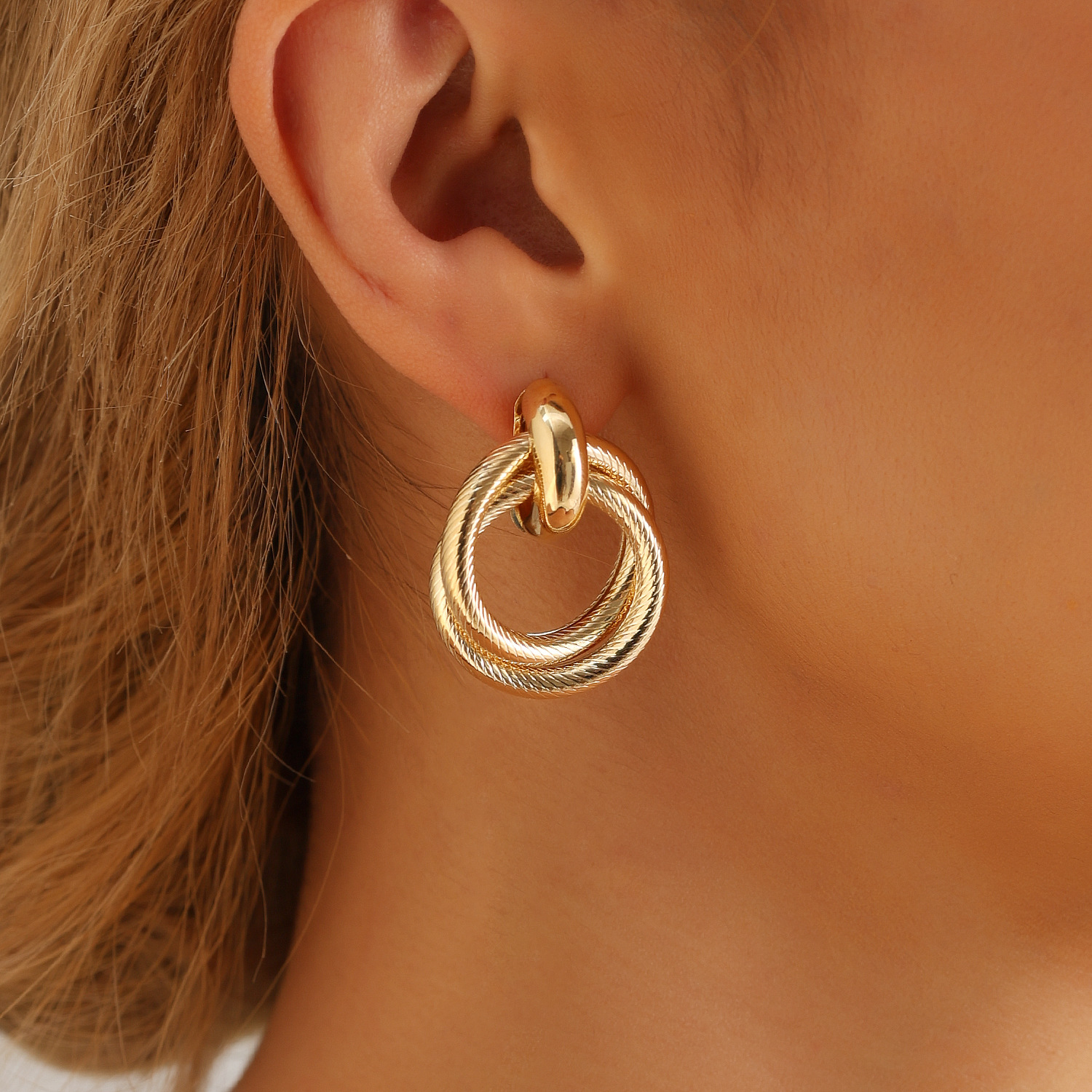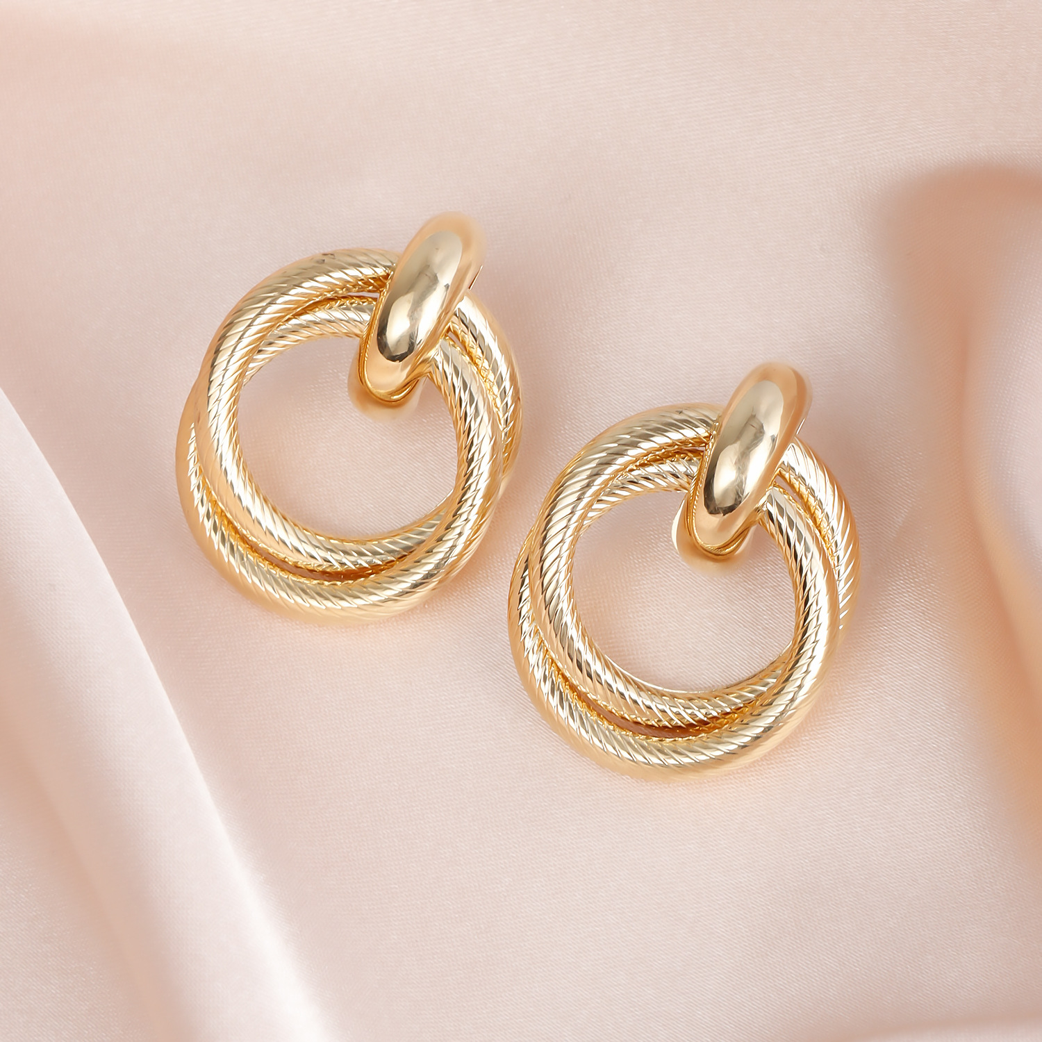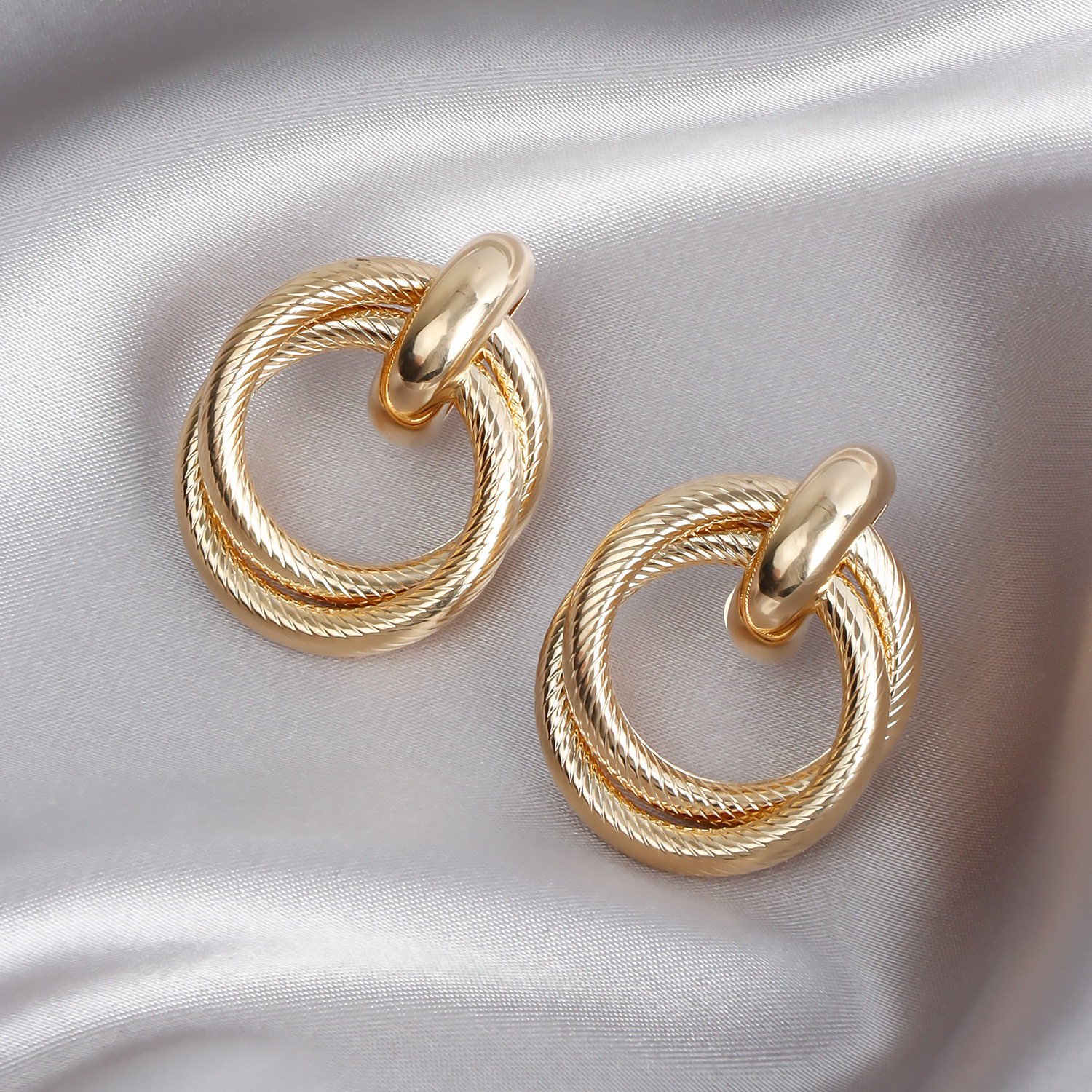 欧美跨境饰品 新款法式复古金色双圈耳环 夸张金属几何纹路耳圈女 English | 投诉