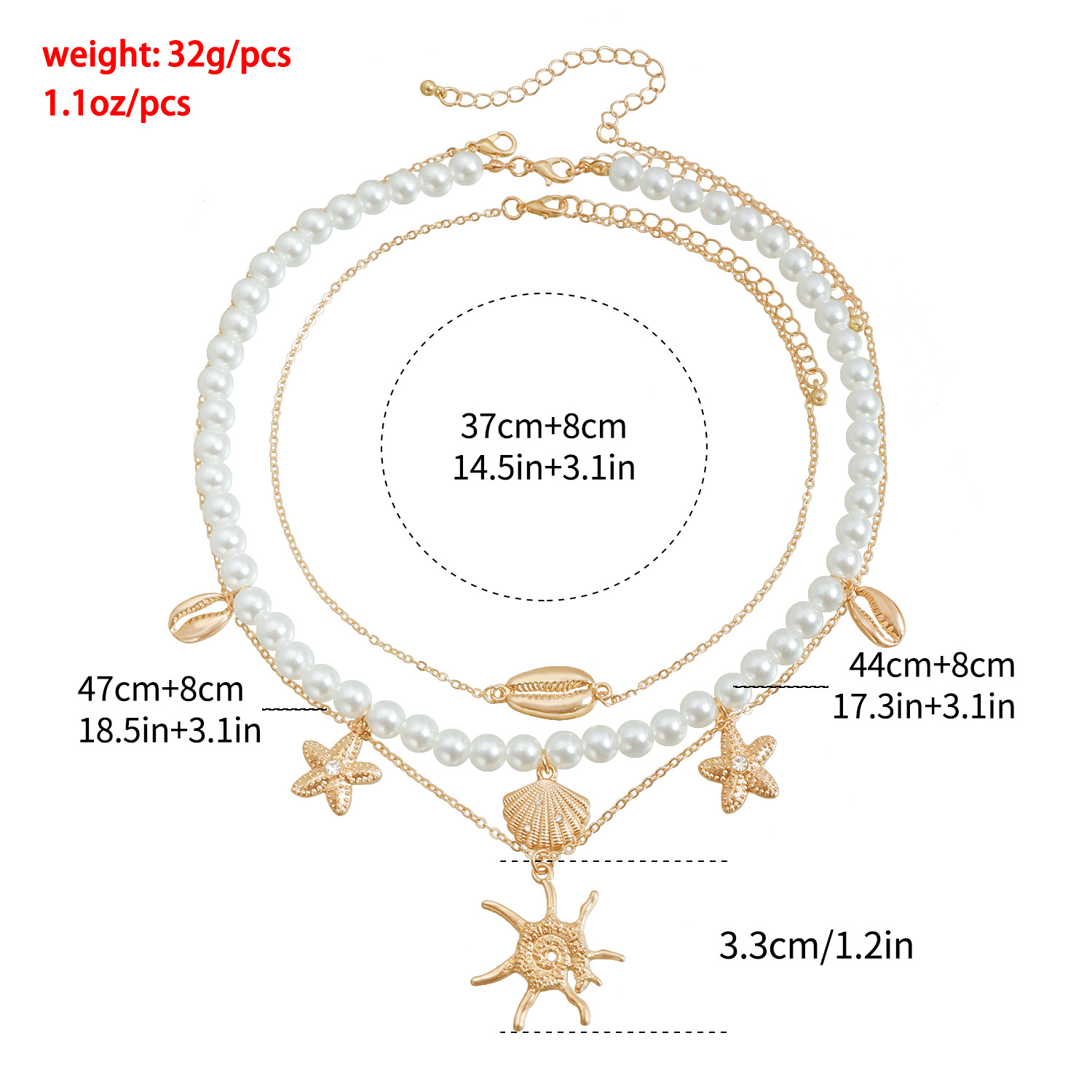 材质: 合金 处理工艺: 电镀 链子样式: 锁骨链 坠子材质: 合金 品牌: 佐文(饰品) 流行元素: 贝壳 造型: 几何型 货号: ZW1964 产地: 义乌 是否多层: 是 周长: 31cm(含)-40cm(含) 颜色: 金色 有可授权的自有品牌: 是 是否跨境出口专供货源: 是 上市年份/季节: 2025夏季 风格: 欧美 重量: 32 风格分类: 时尚通勤 适用人群: 女式 流行元素分类: 形状/图案 重量: 0.402 kg/个