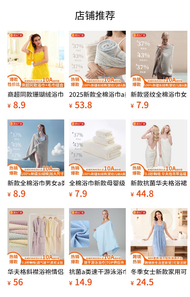 | 浴巾超柔吸水70*140cm | ¥1188 | 893条可售 |
