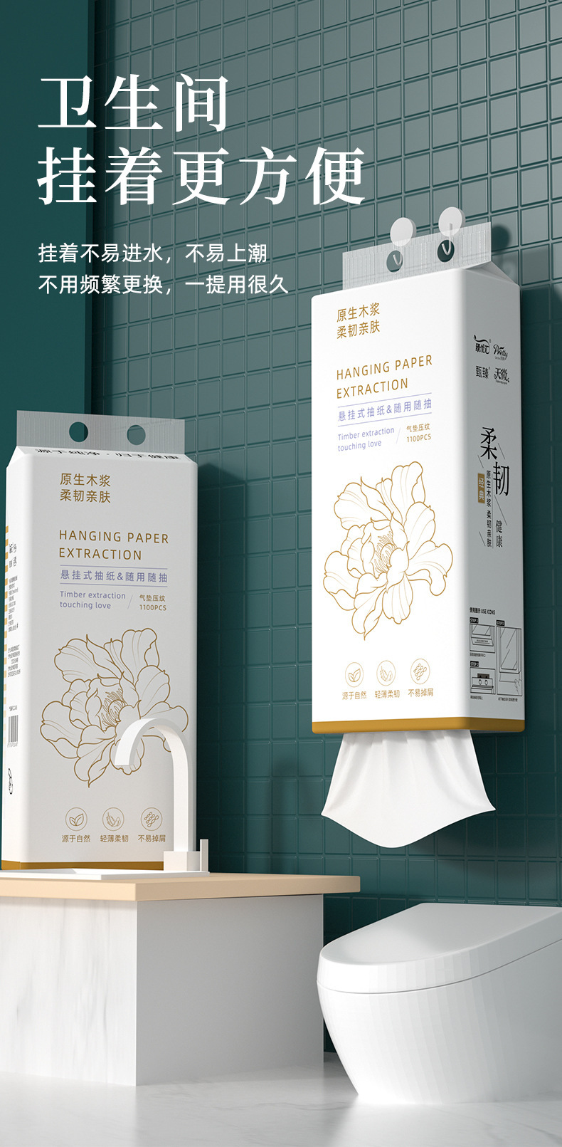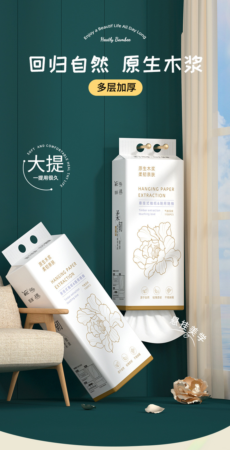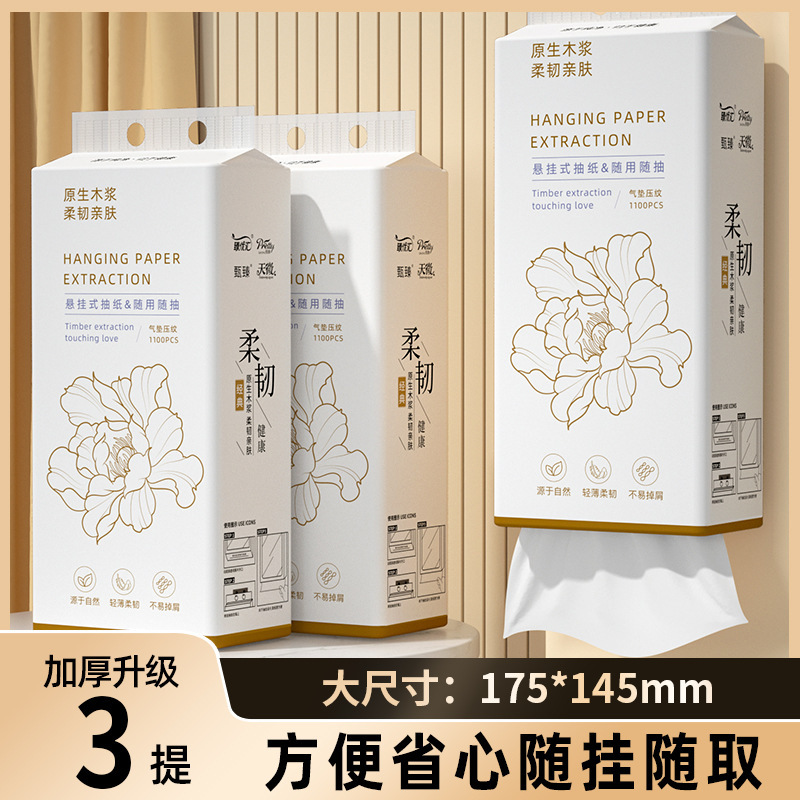 12提悬挂抽纸家用卫生纸原生木浆亲肤面巾纸厕所专用壁挂式纸抽 English | 投诉
