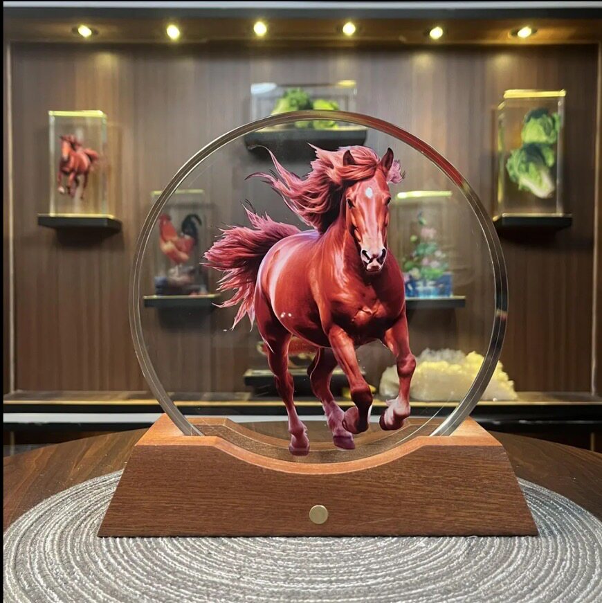 可定制 圆形骏马内雕水晶摆件家居好物客厅玄关电视柜乔迁送礼物