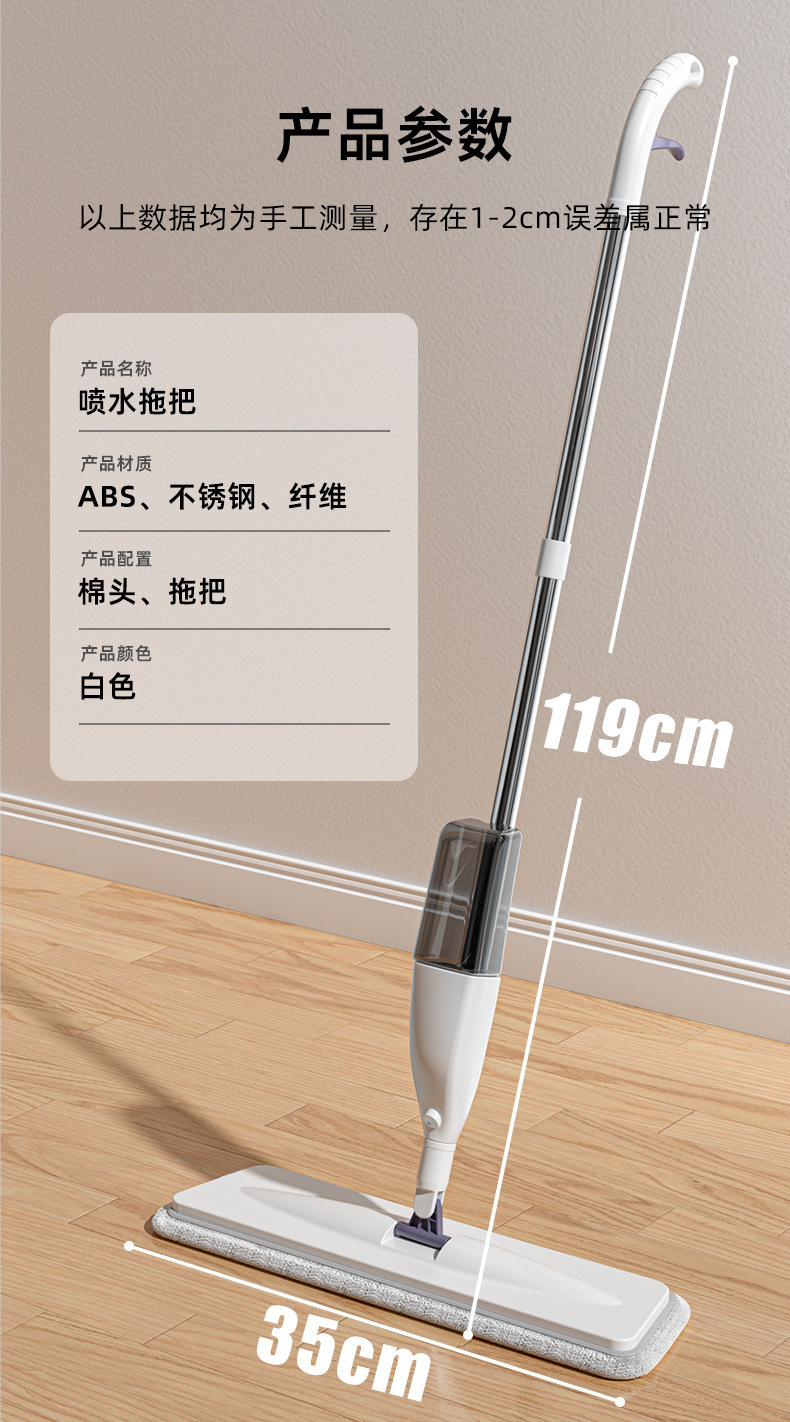 加厚不锈钢杆子35CM喷雾拖把(共5布) ¥4000 10092件可售