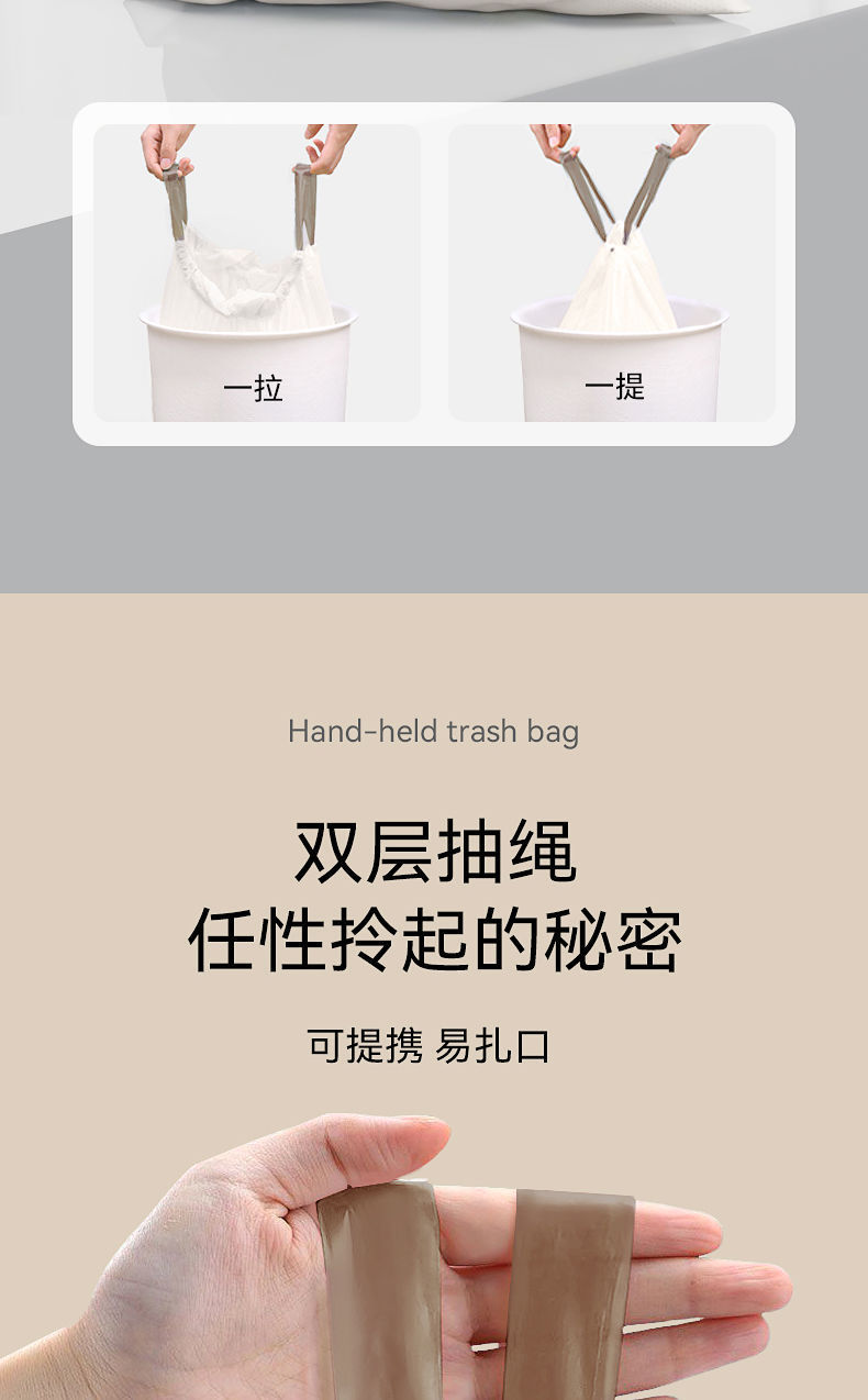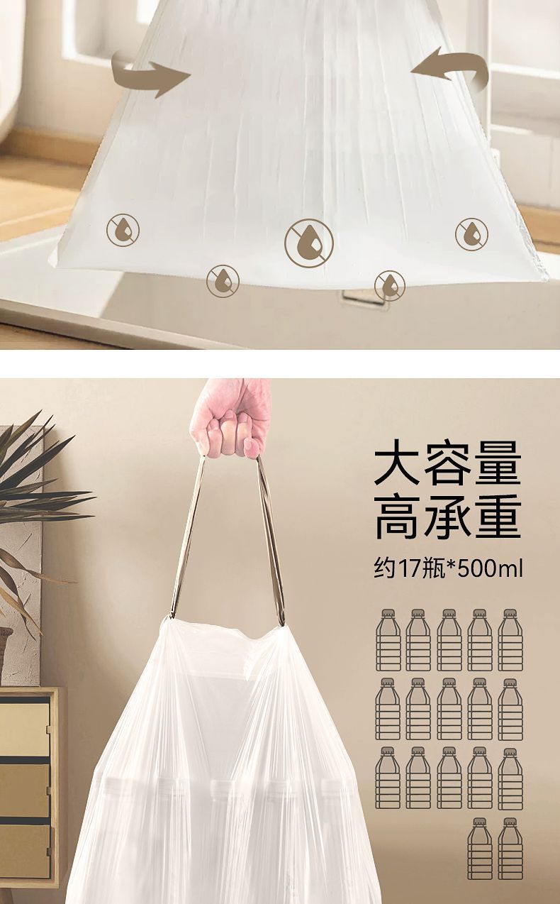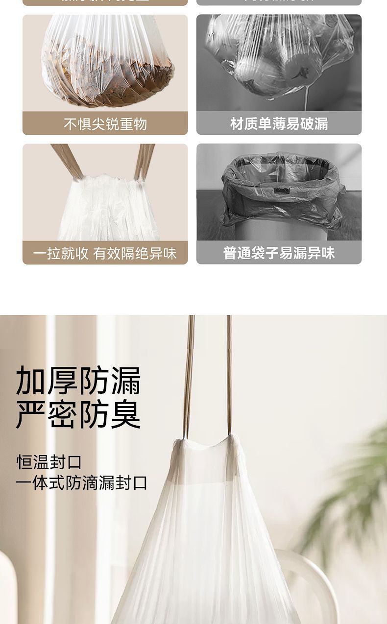 抽绳垃圾袋自动收口大号塑料袋加厚实惠装厨房宿舍学生家用手提式 English | 投诉