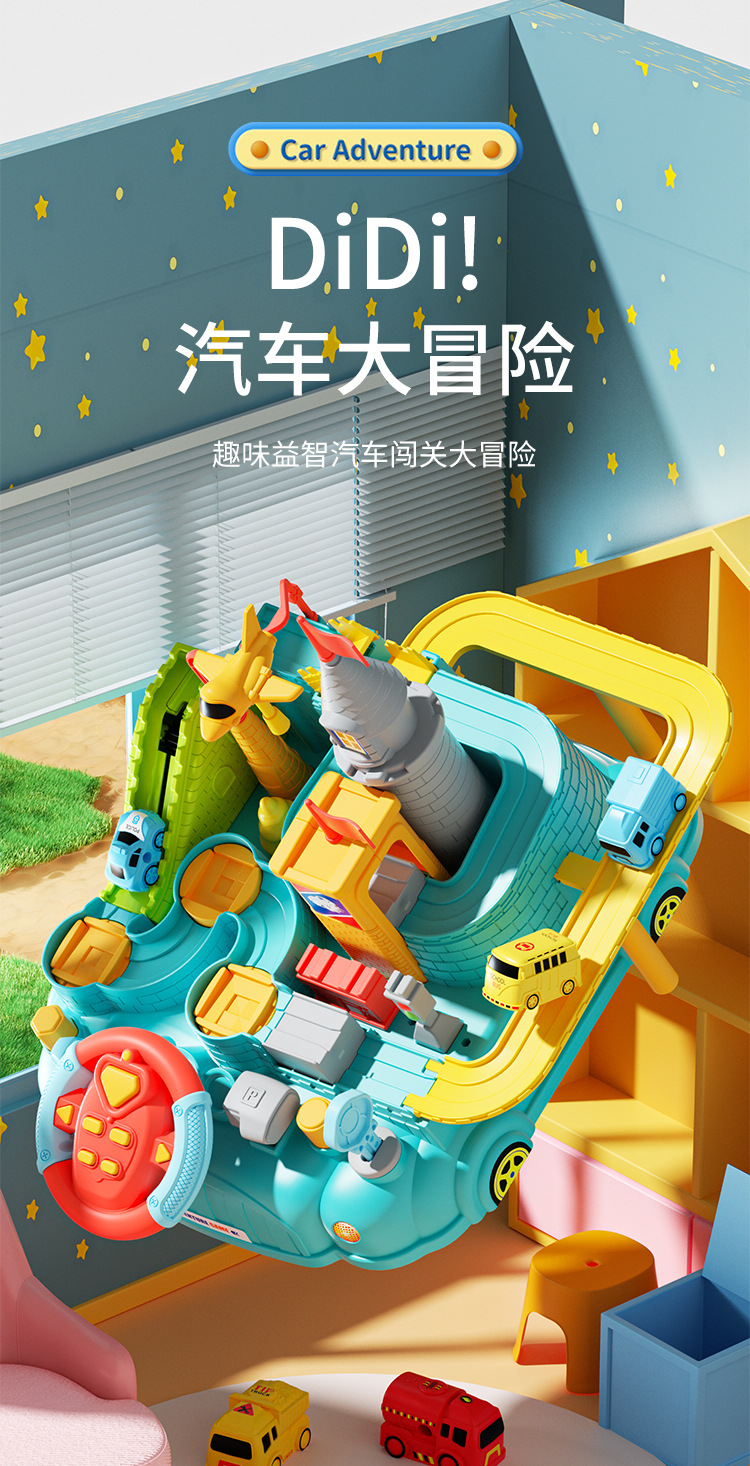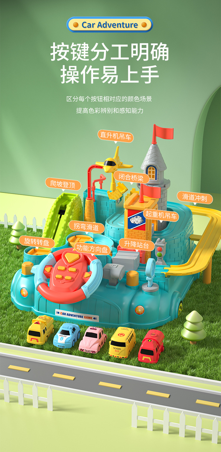 儿童汽车闯关大冒险轨道滑行益智交通玩具小火车宝宝男孩女孩3岁4 English | 投诉