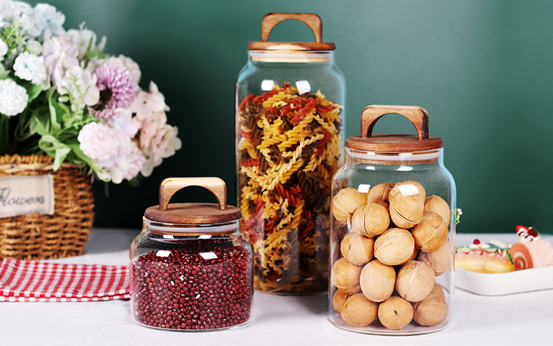 储物罐提手盖玻璃罐干果储物罐透明茶叶咖啡豆食品五谷杂粮收纳罐