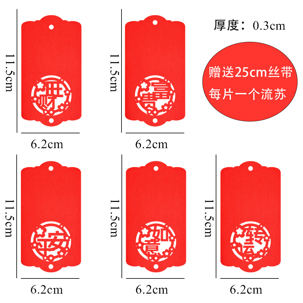 【产品包装】:双面滚漆,每片带一个流苏和25cm挂绳入一个opp袋