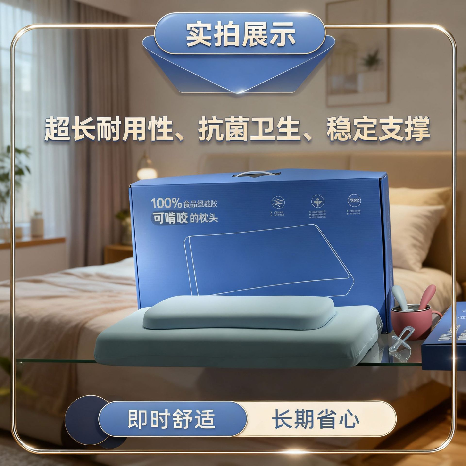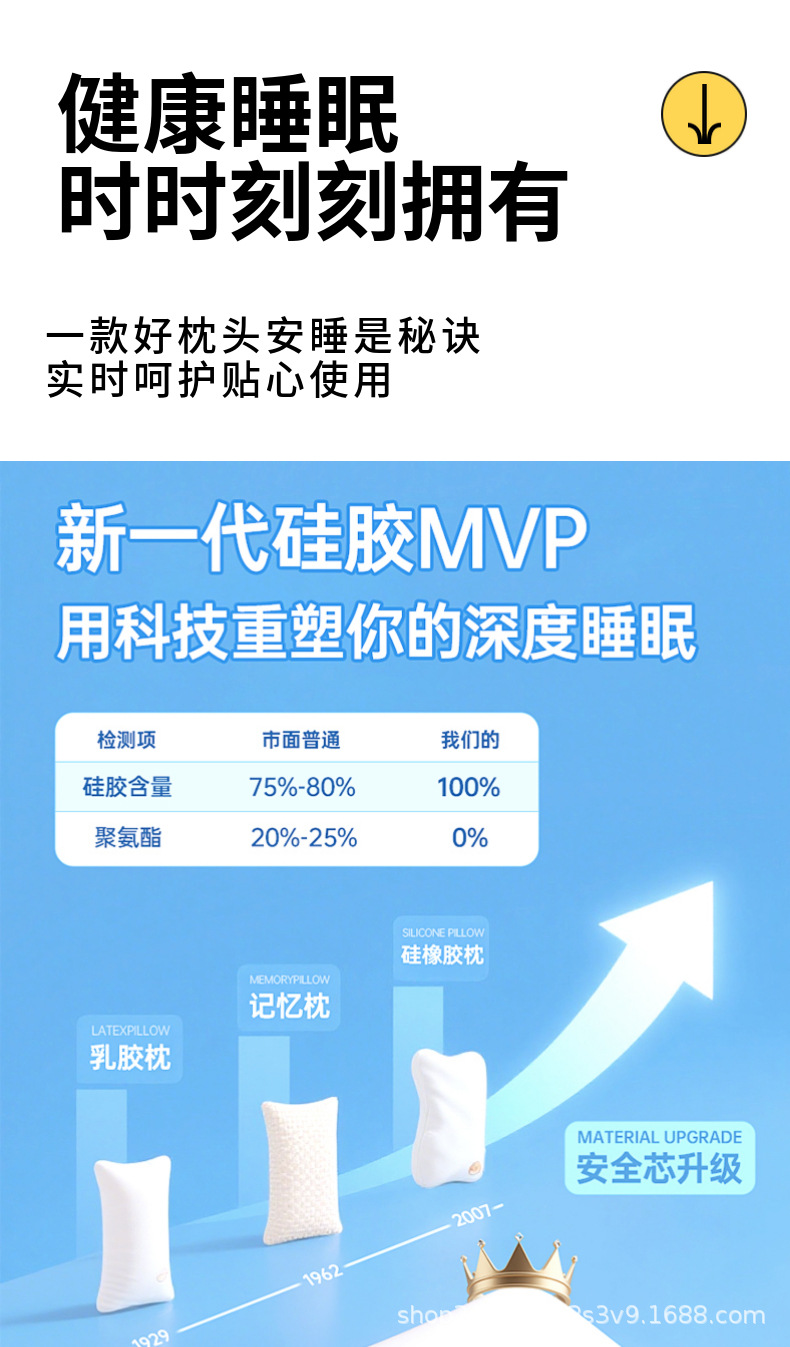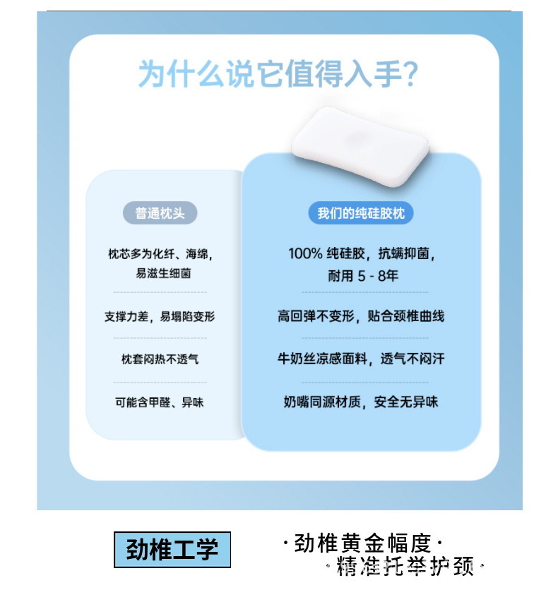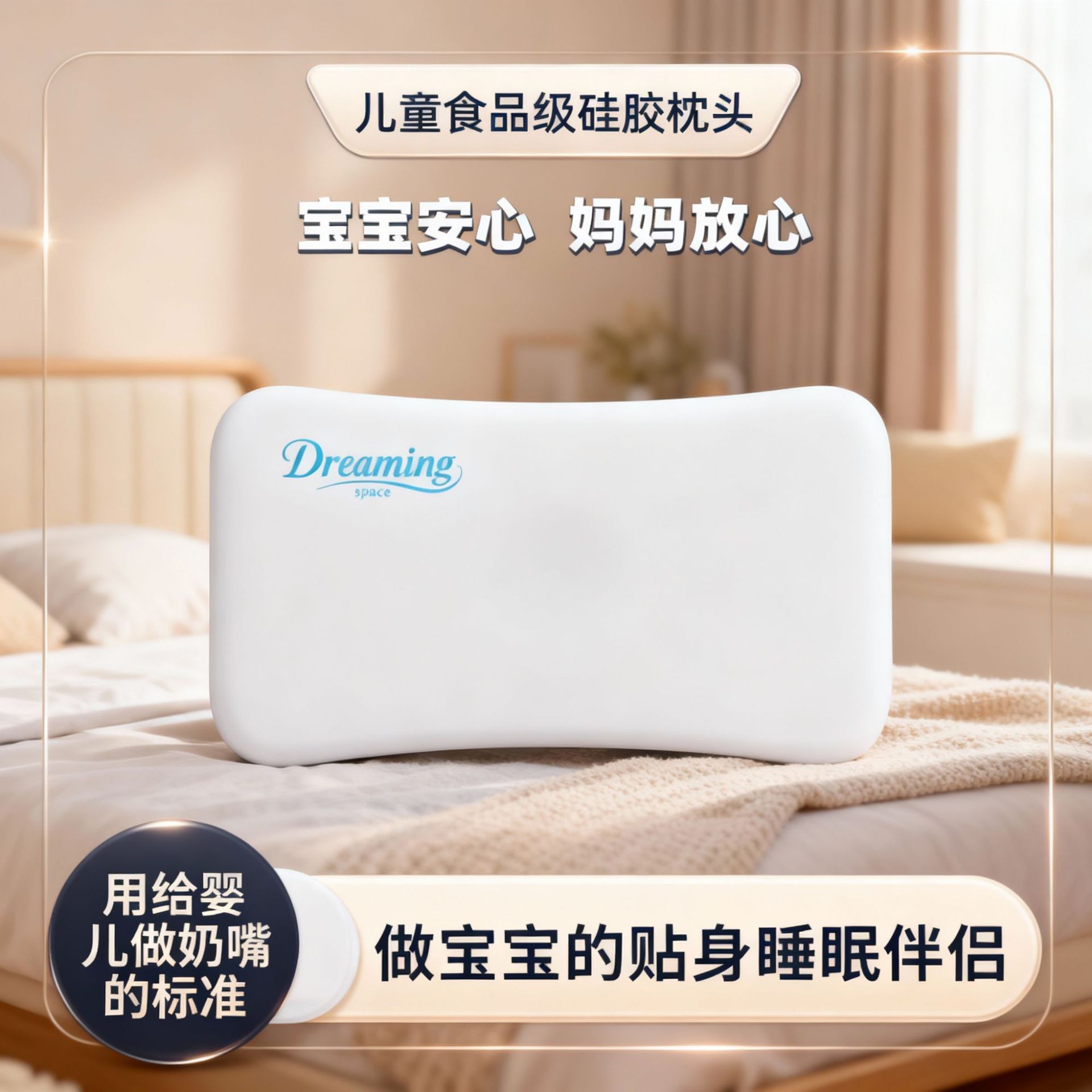 婴幼儿专用100%食品级纯硅胶枕头睡眠过敏宝宝可水洗机洗枕芯 English | 投诉