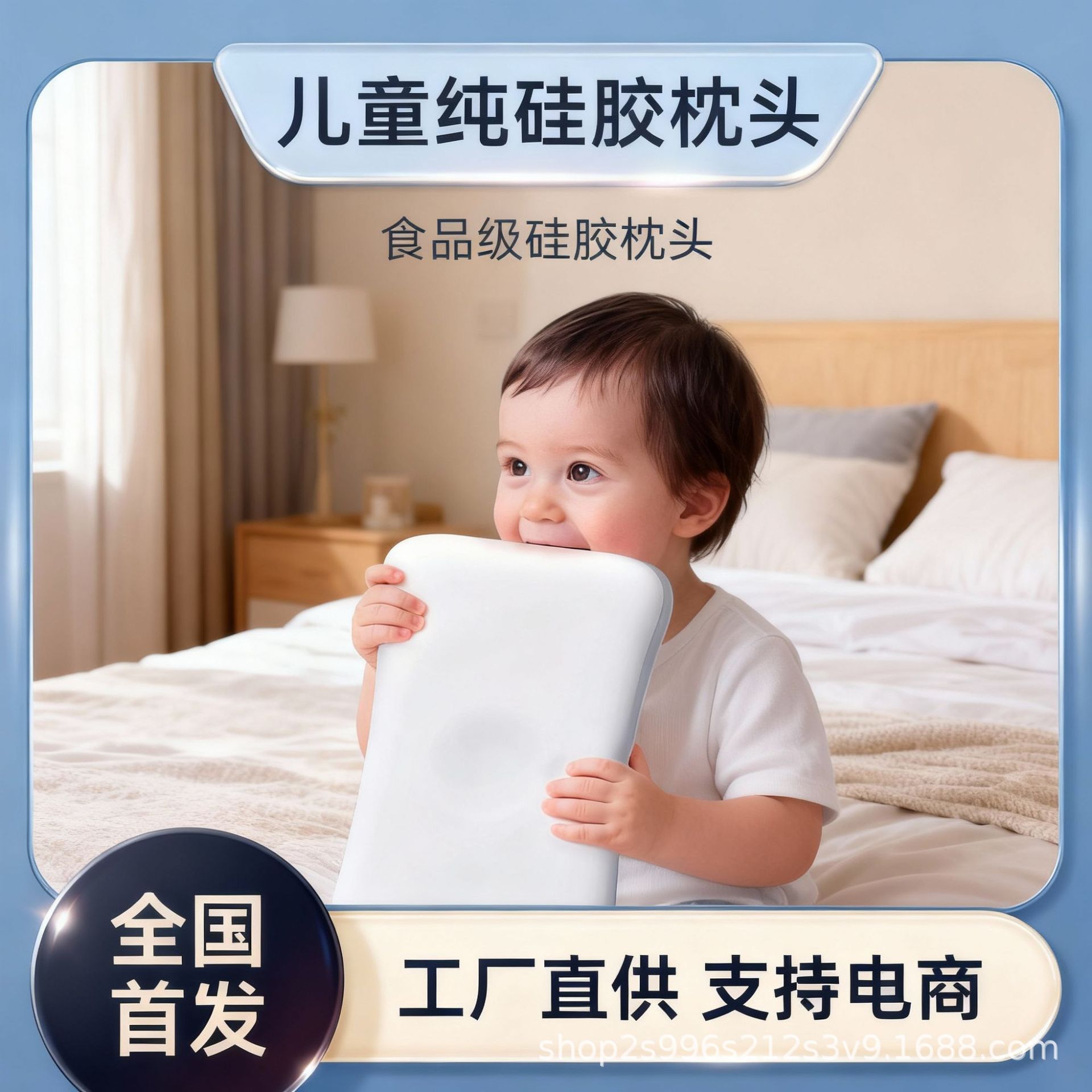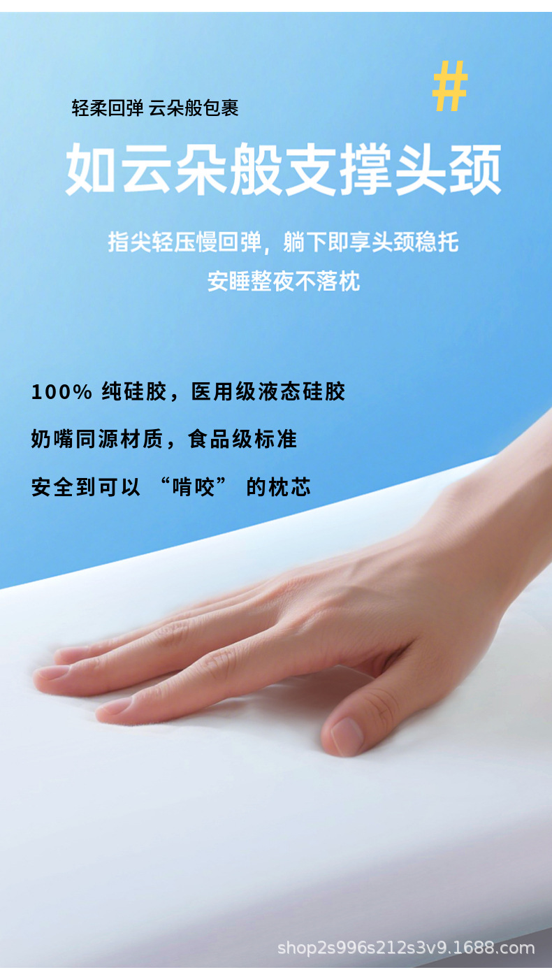婴幼儿专用100%食品级纯硅胶枕头睡眠过敏宝宝可水洗机洗枕芯