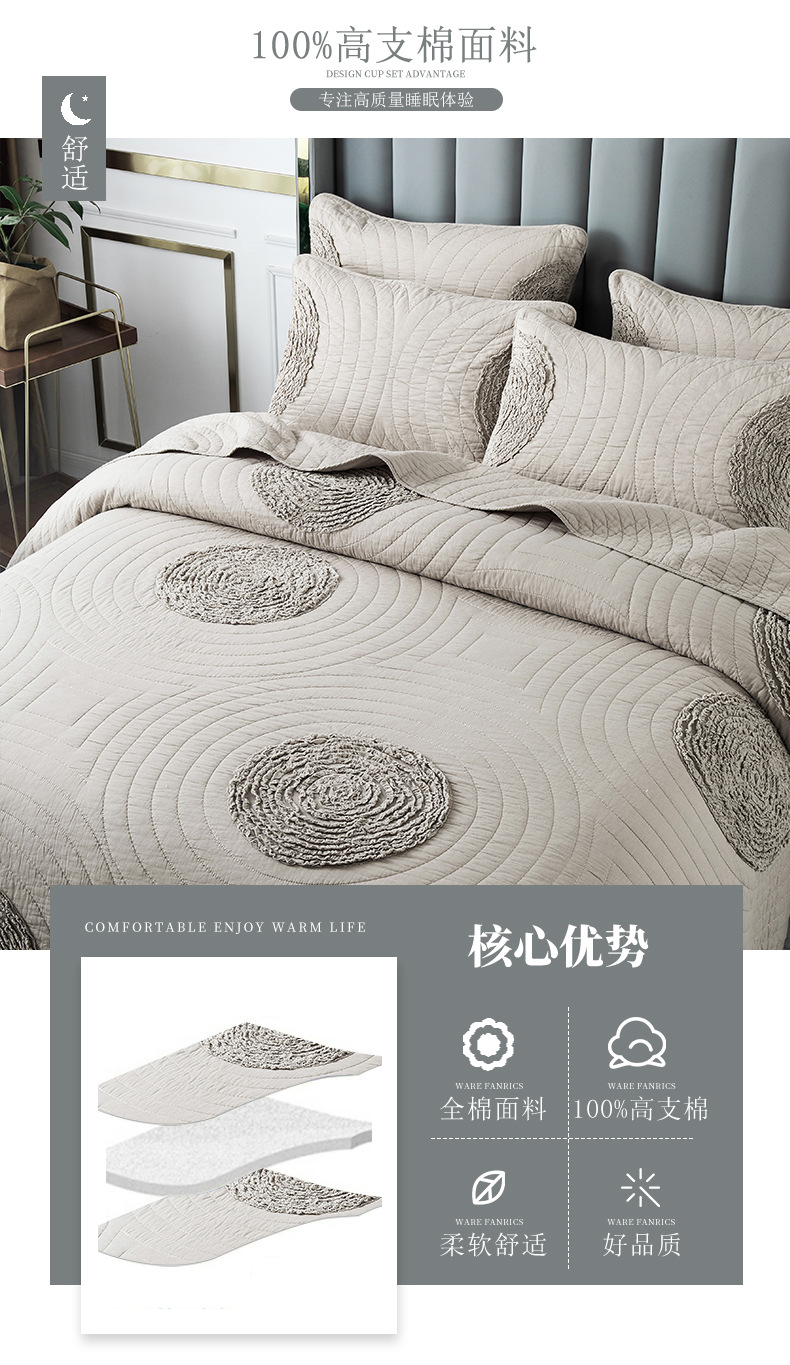 工厂直供!全棉床盖三件套支持混批,一件代发!
