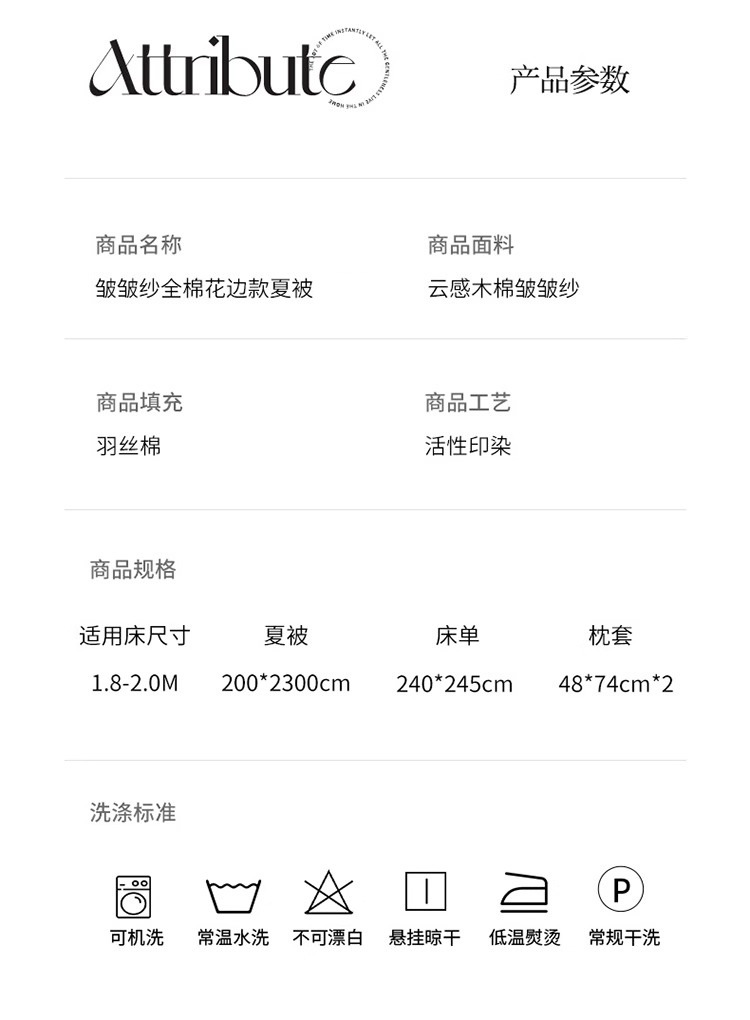 | 200*230cm夏被+240*245床单+枕套*2 | ¥11900 | 200件可售 |