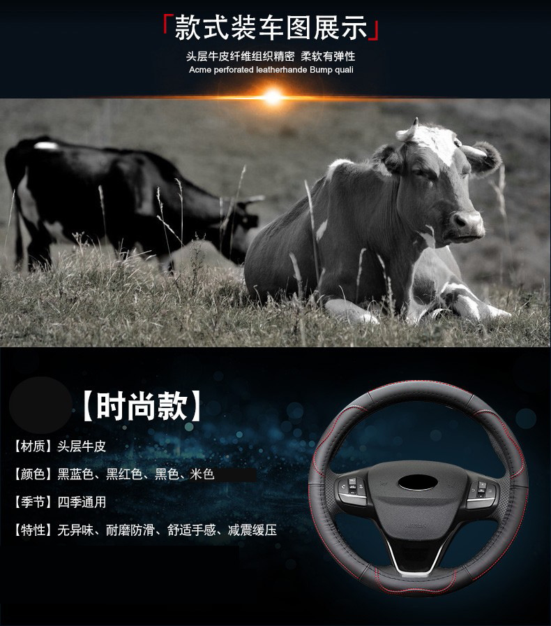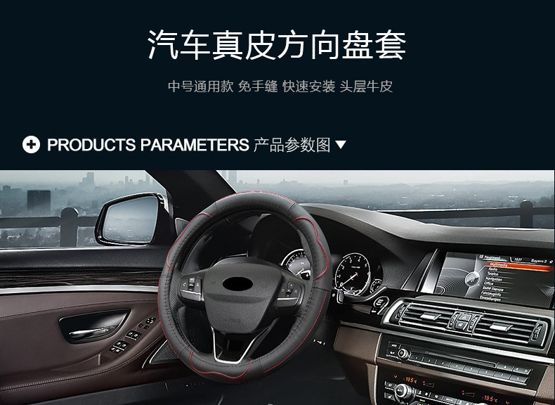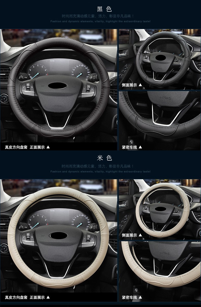 方向盘套 真皮四季通用 汽车用套头层牛皮圆形汽车用品定制