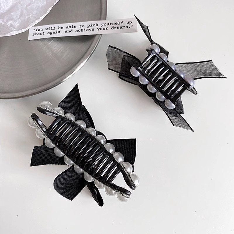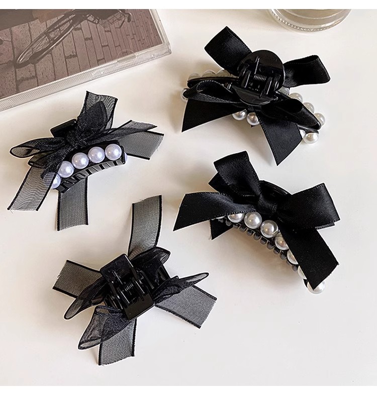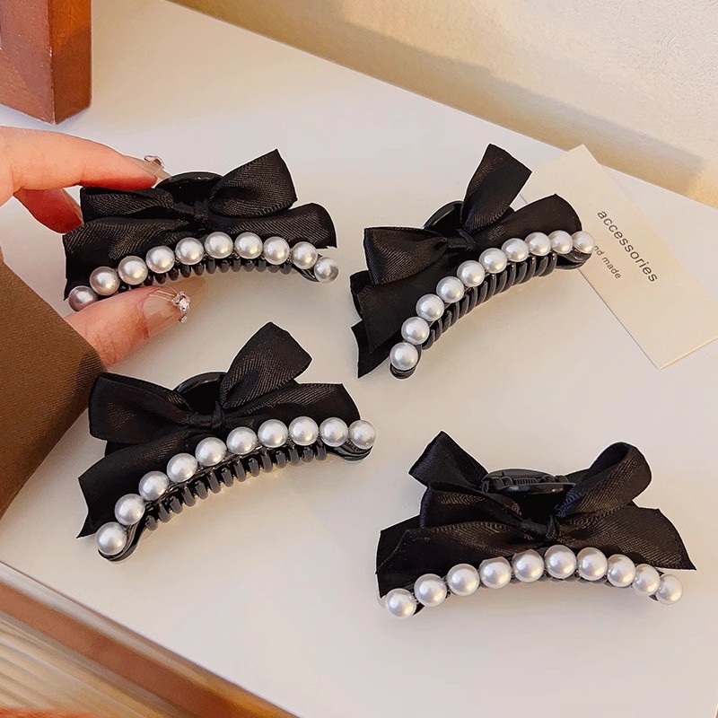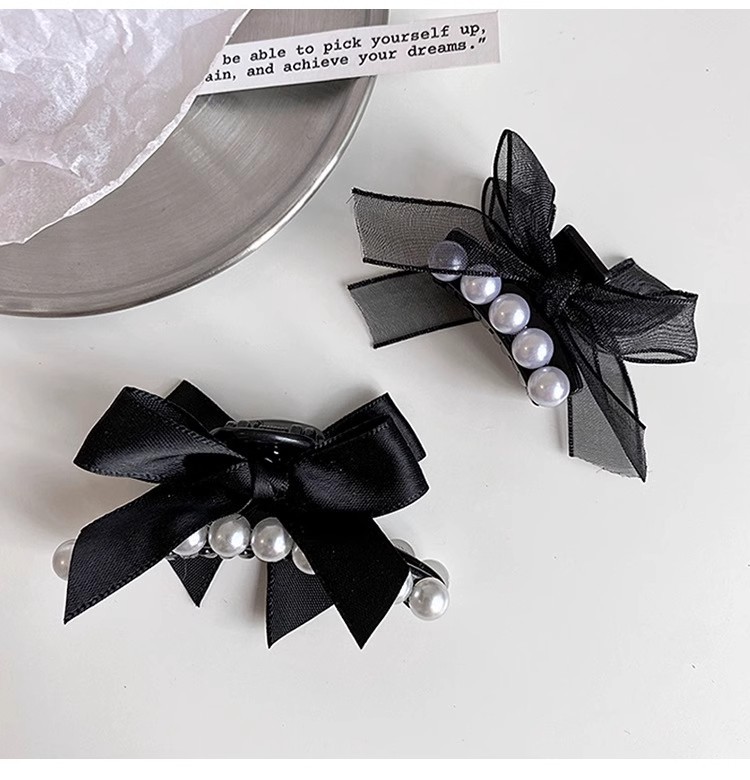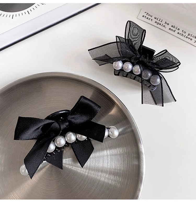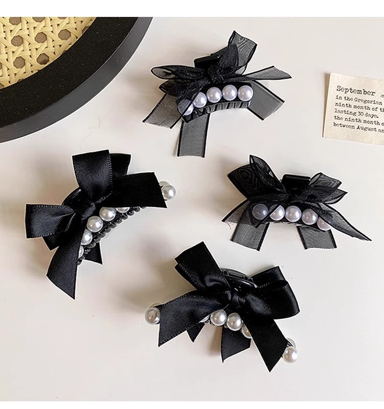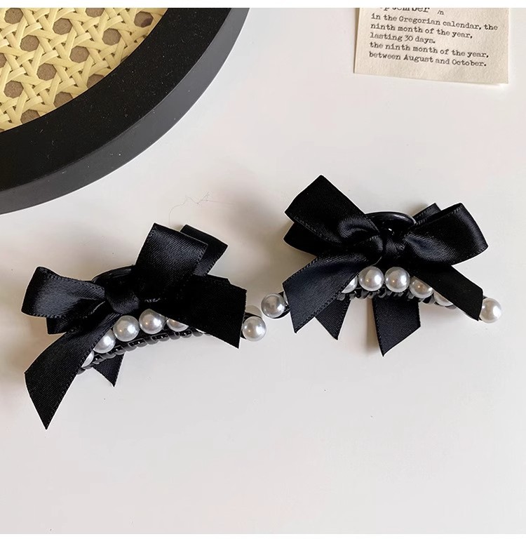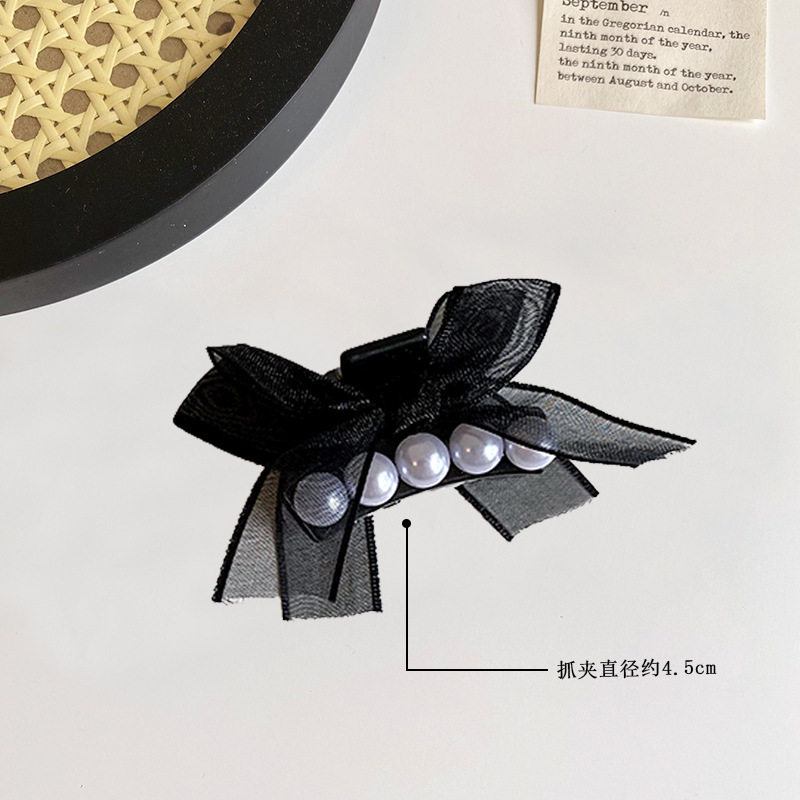 法式珍珠黑色蝴蝶结小抓夹2025高级感新款侧边刘海碎发夹子 English | 投诉