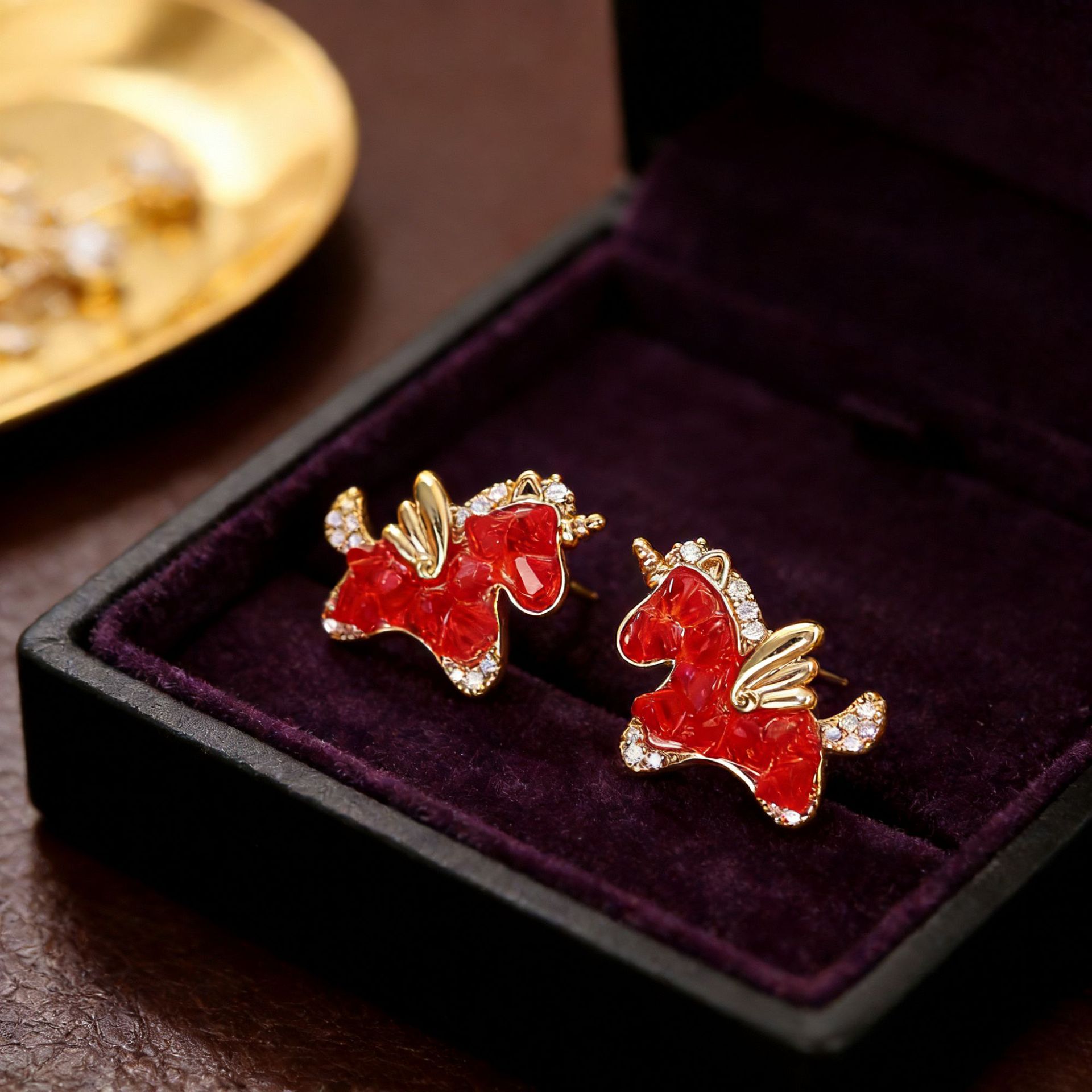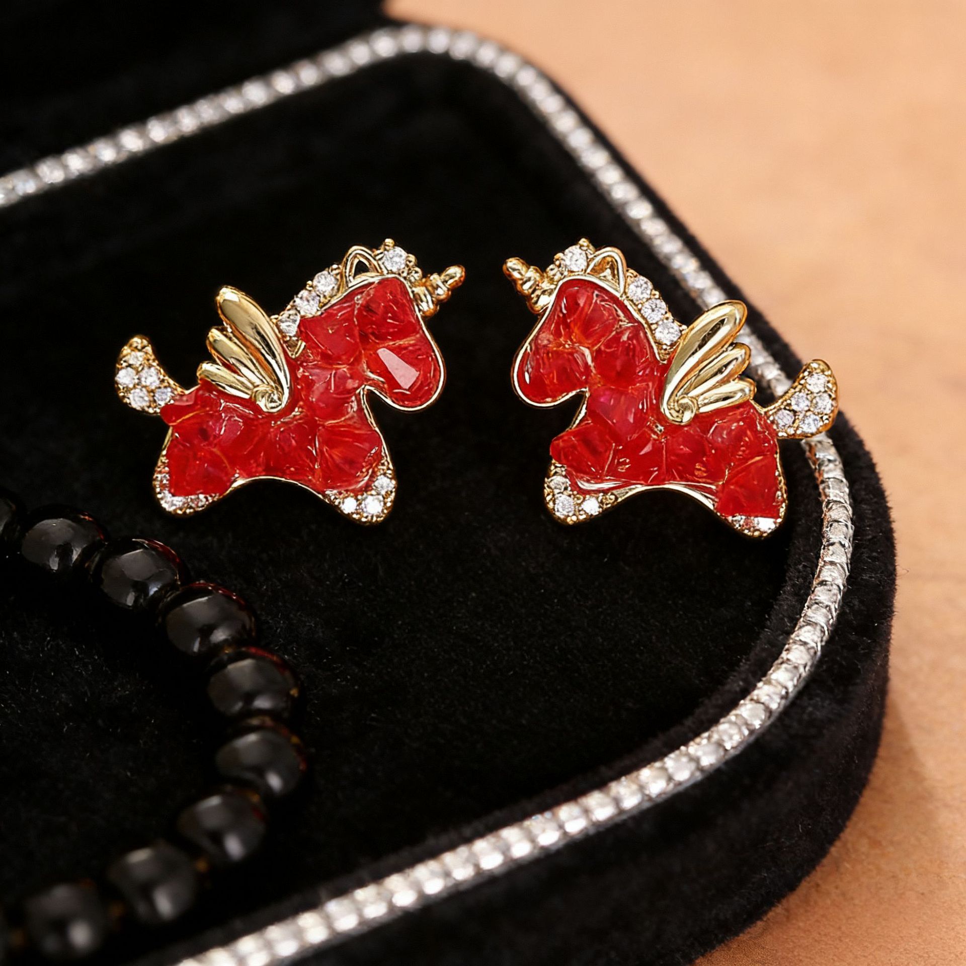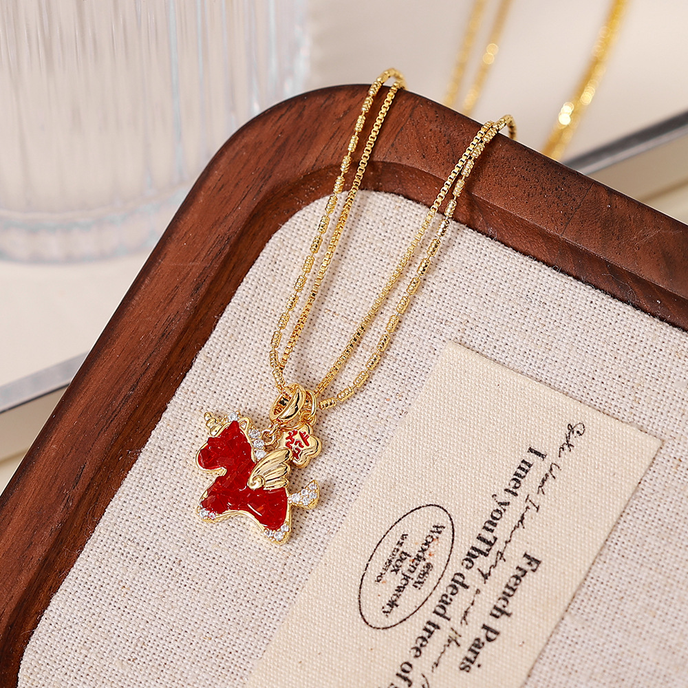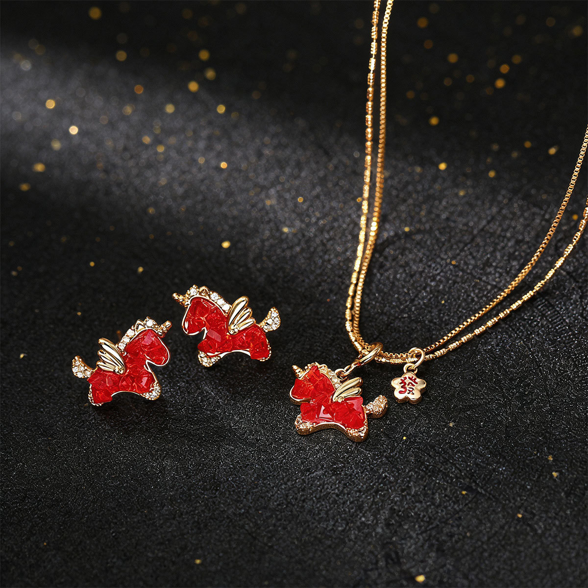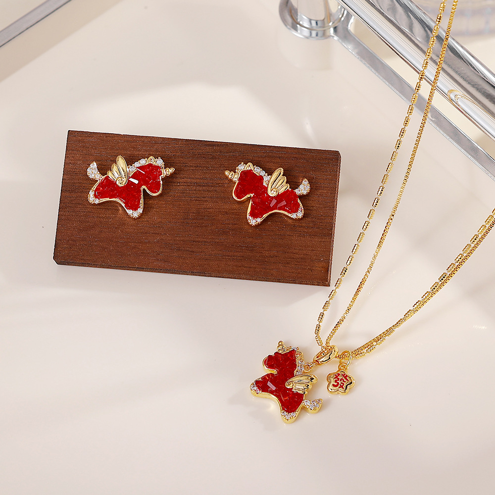 红色水晶小马项链耳钉新年喜庆新中式高级感饰品红色生肖马本命年 English | 投诉