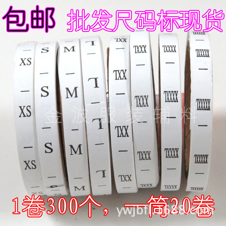批发服装尺码标 工号标,长期供货,XS-6XL码均有现货,批发量大可优惠,1箱100筒,只要8元/筒