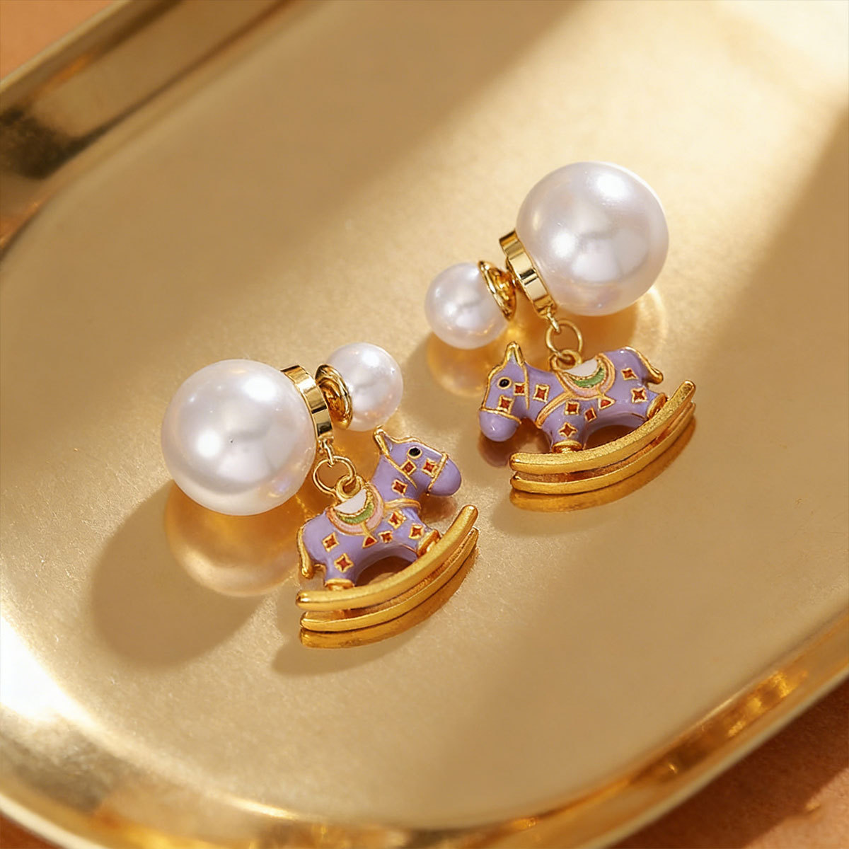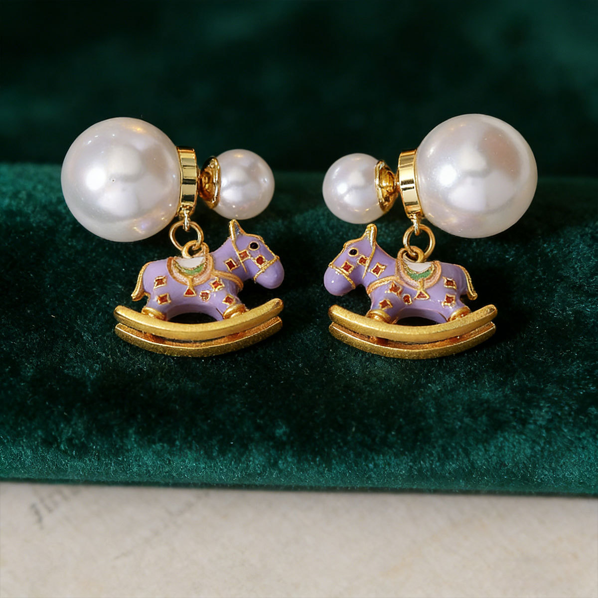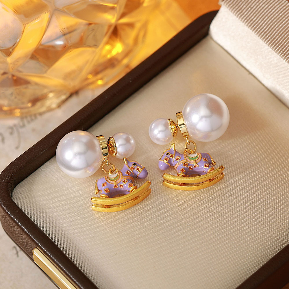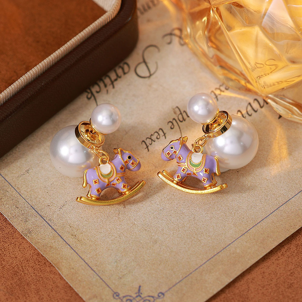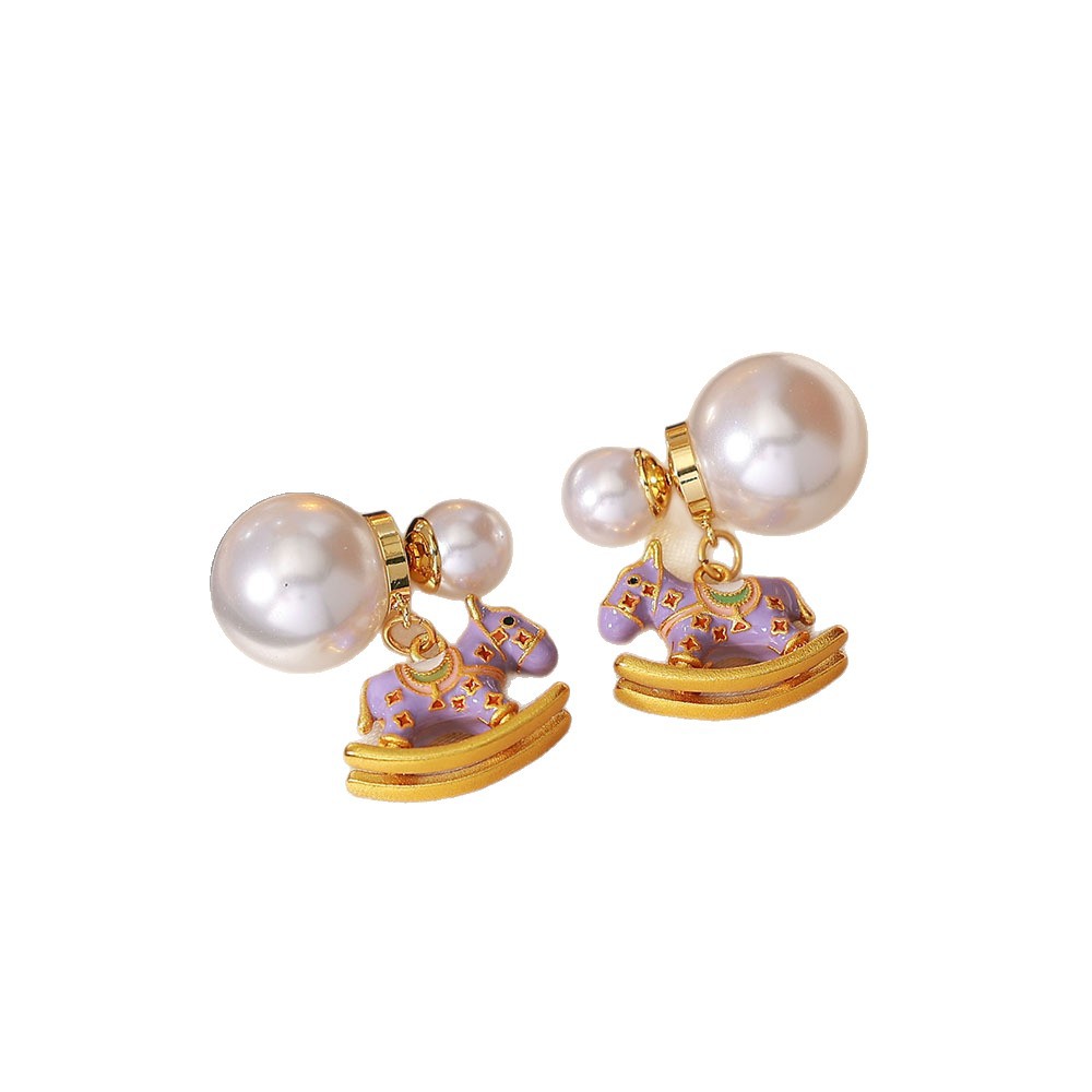 时尚清新紫色滴油木马珍珠耳钉轻奢高级感小众气质百搭耳钉女耳饰 English | 投诉