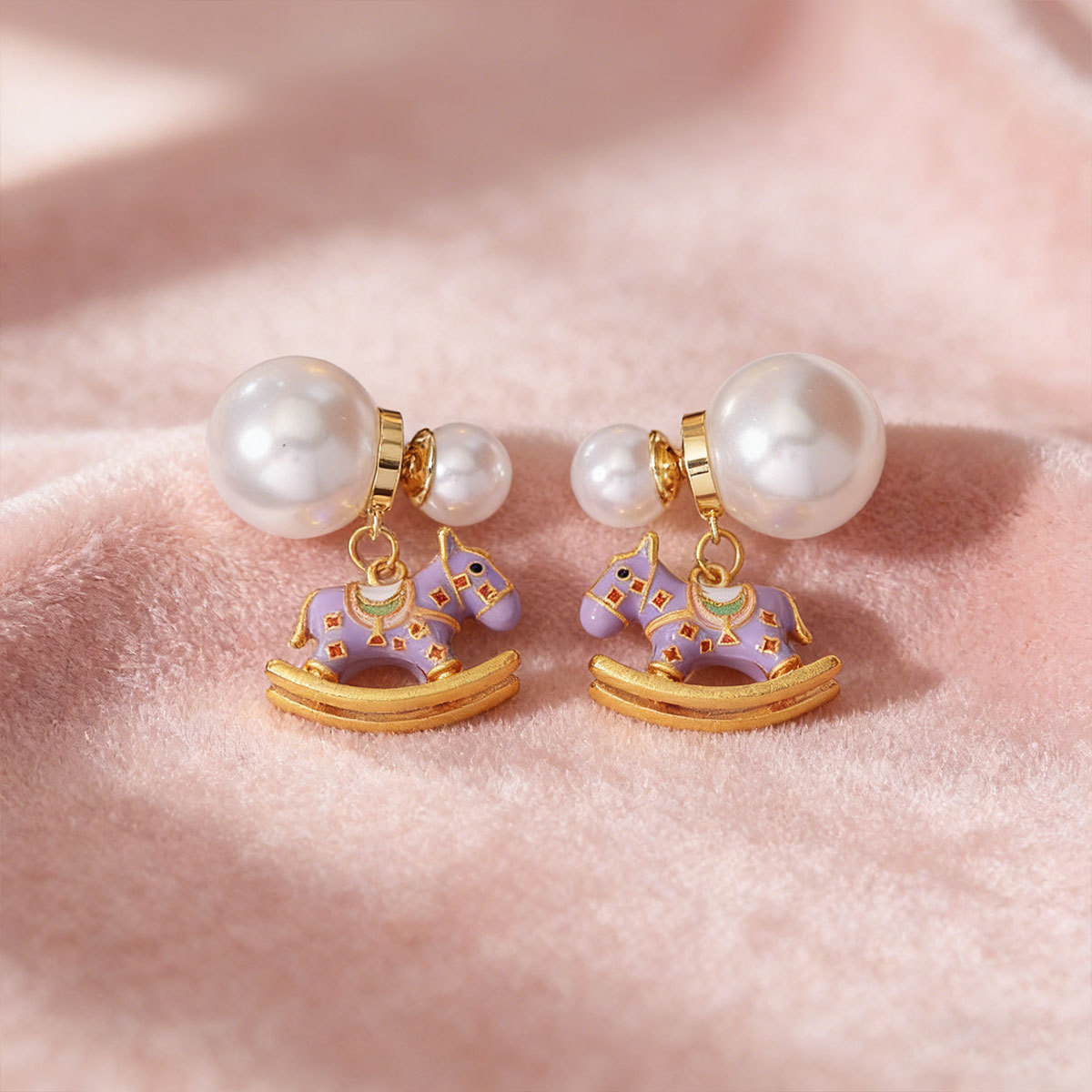 紫色滴油小马珍珠耳钉 ¥0 998对可售
