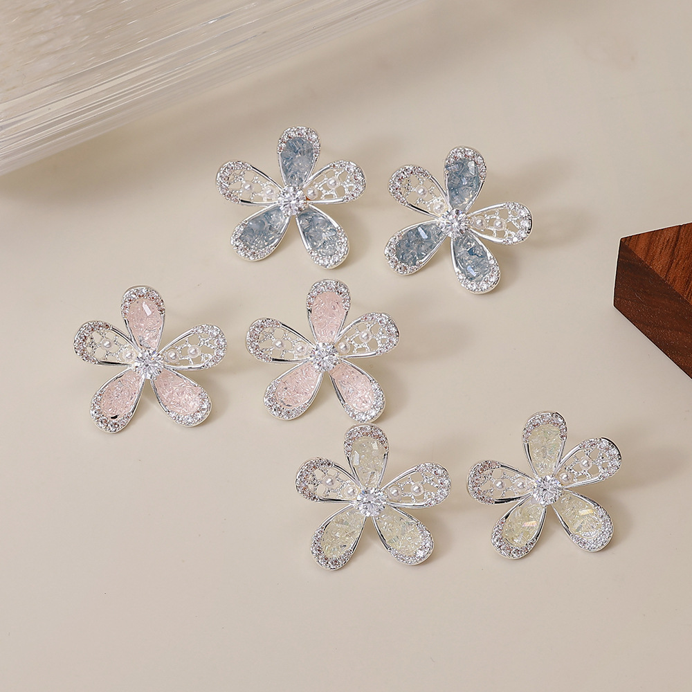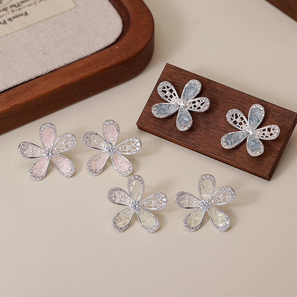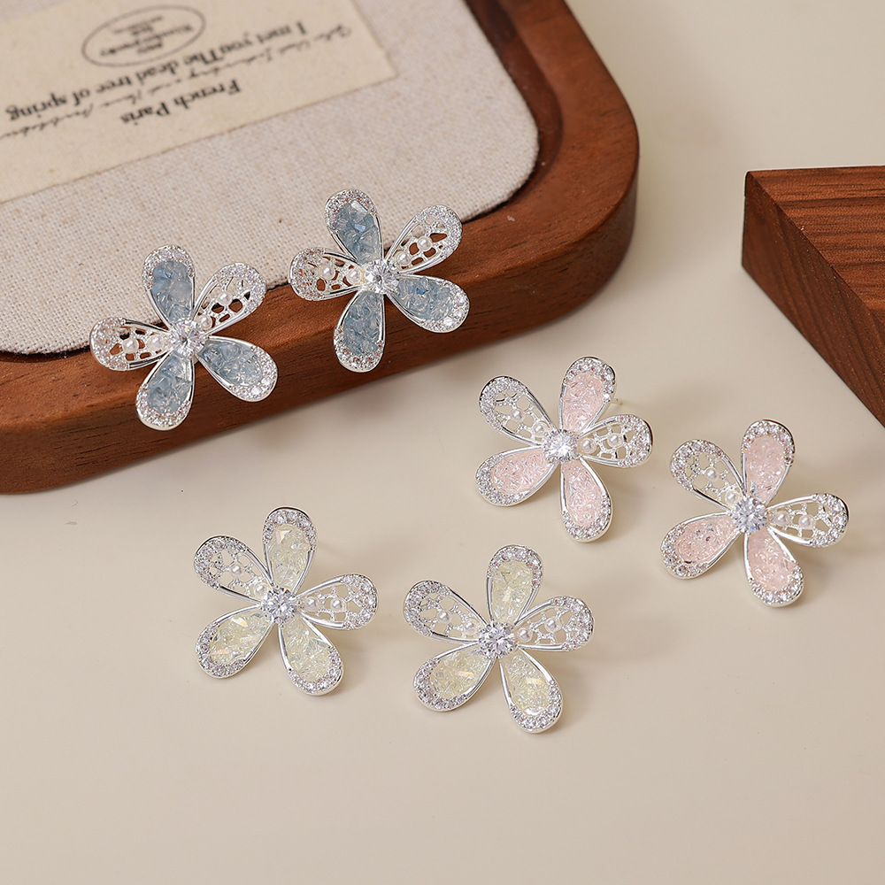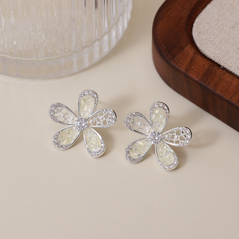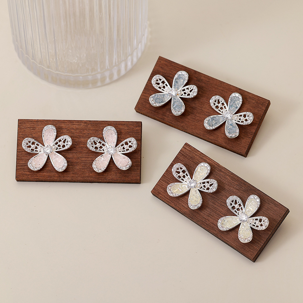 锆石花朵耳钉女韩系精致满钻2025新款小巧耳环轻奢风时尚百搭耳饰 English | 投诉