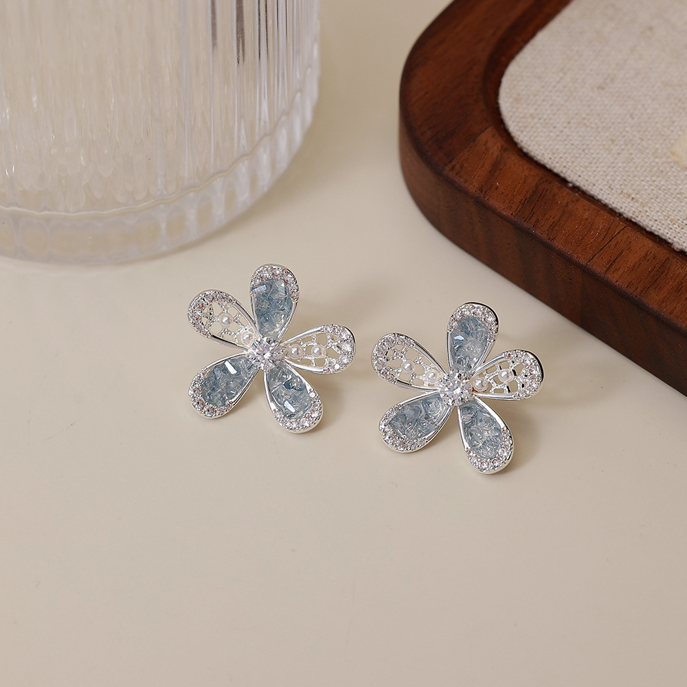 蓝色锆石花朵耳钉(925银针) ¥0 995对可售