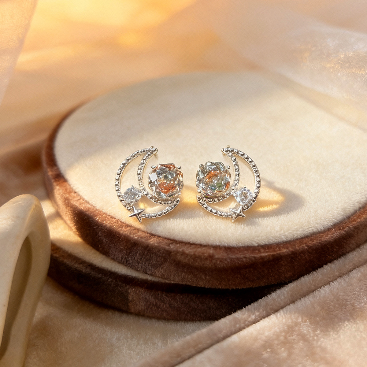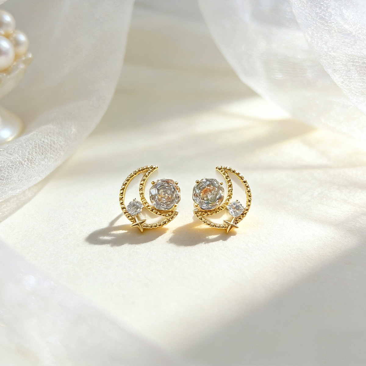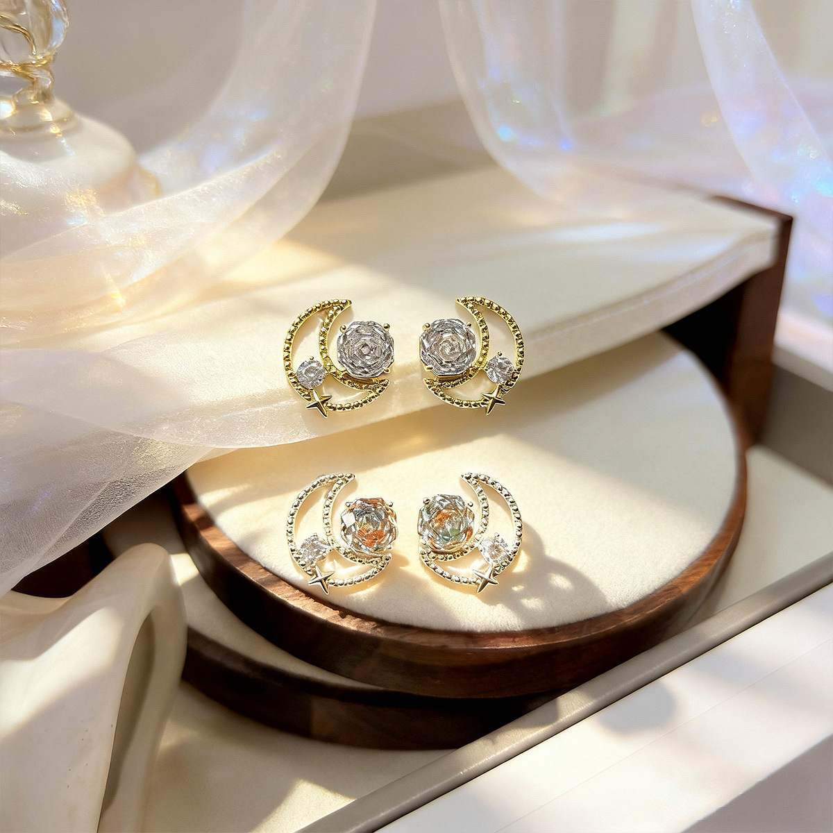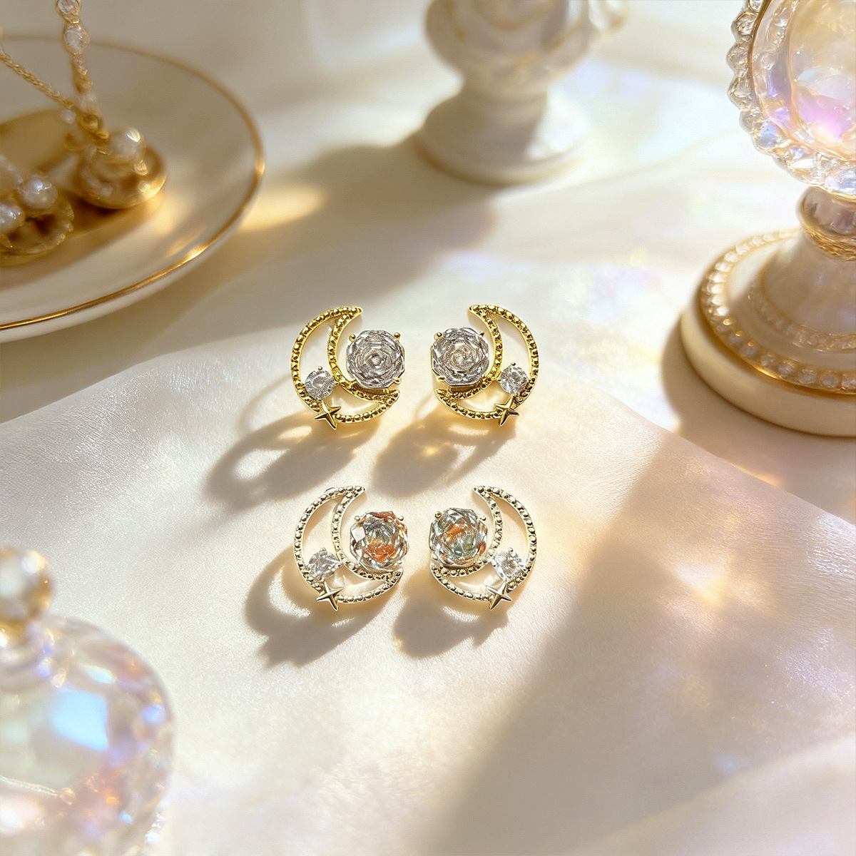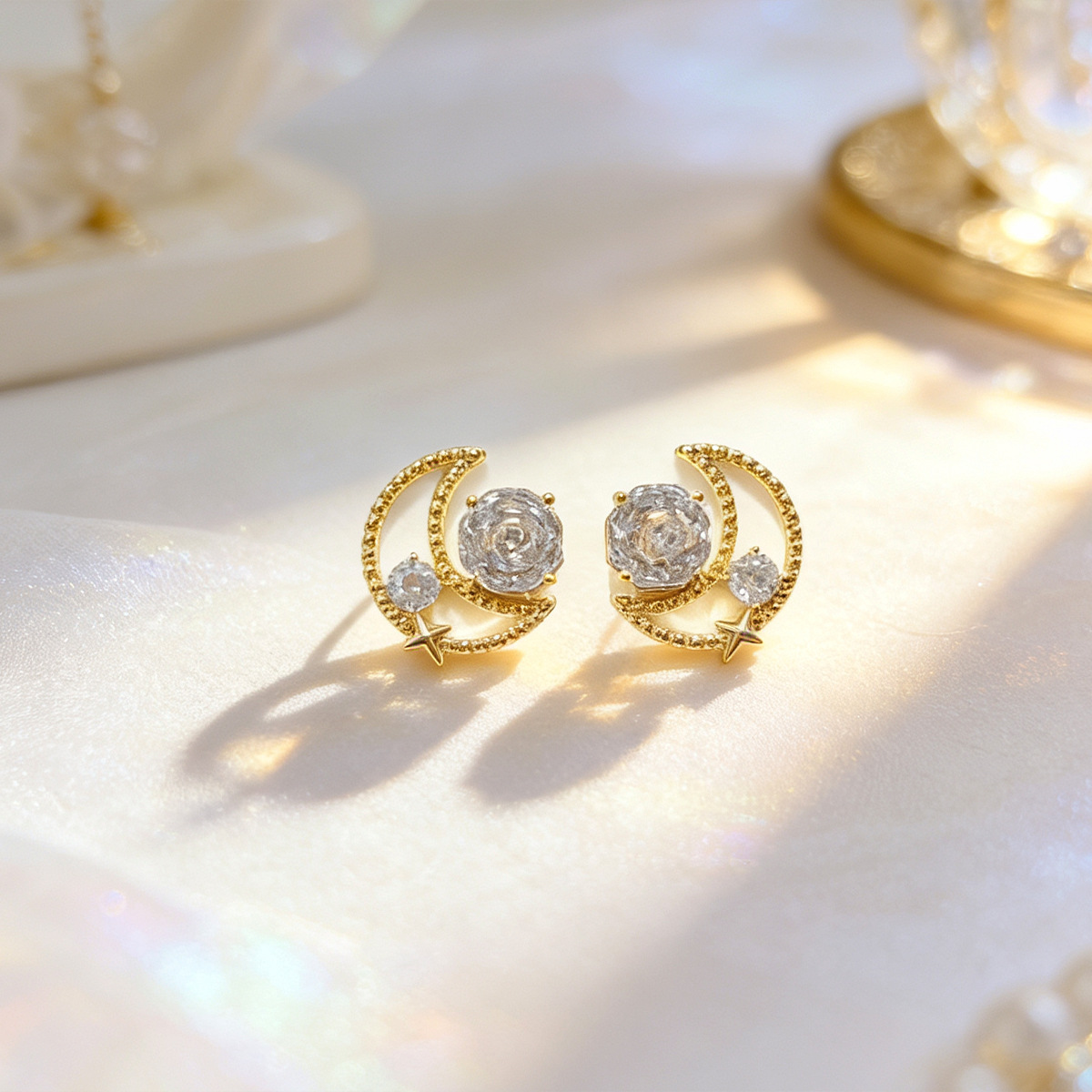 法式复古玫瑰锆石月亮耳钉轻奢高级感时尚百搭耳饰小众设计感饰品 English | 投诉