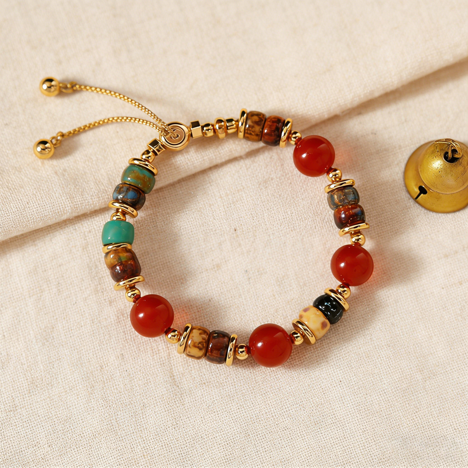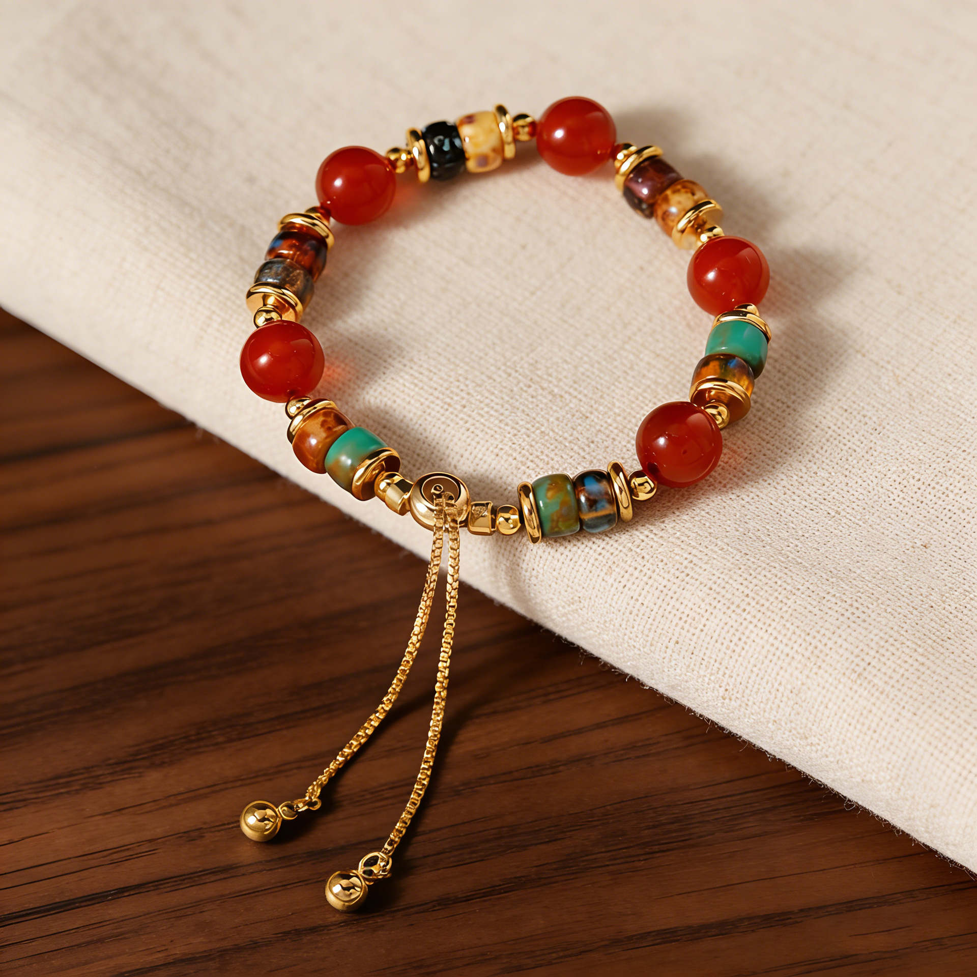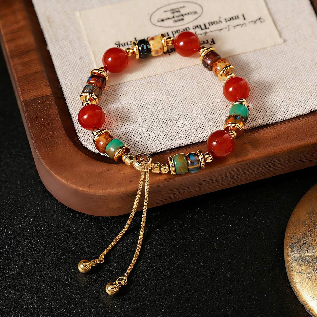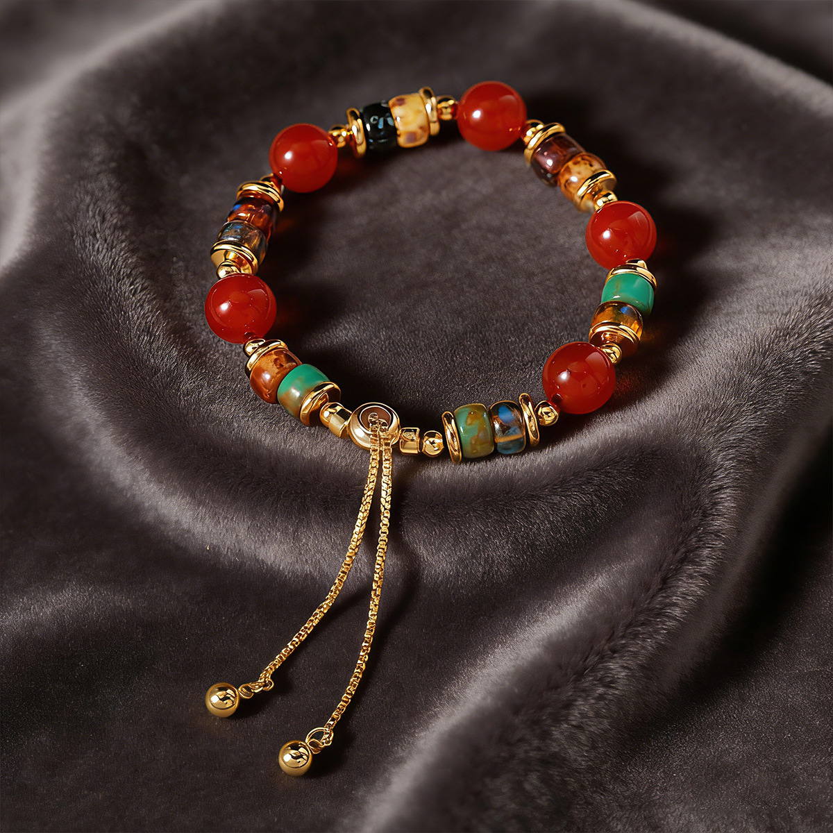 复古红玛瑙天然石头串珠手链女轻奢小众精致彩色珠子抽拉手链手饰 English | 投诉