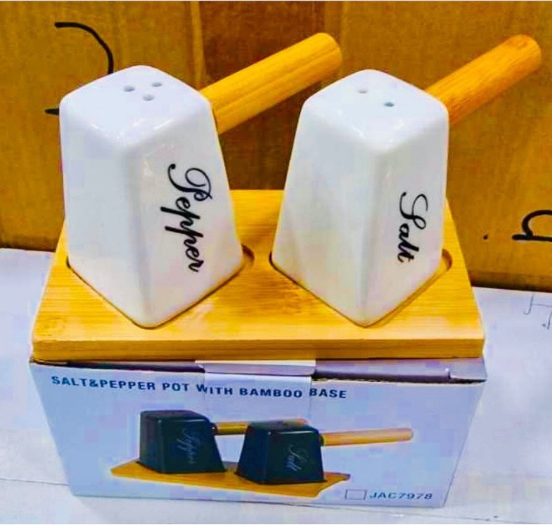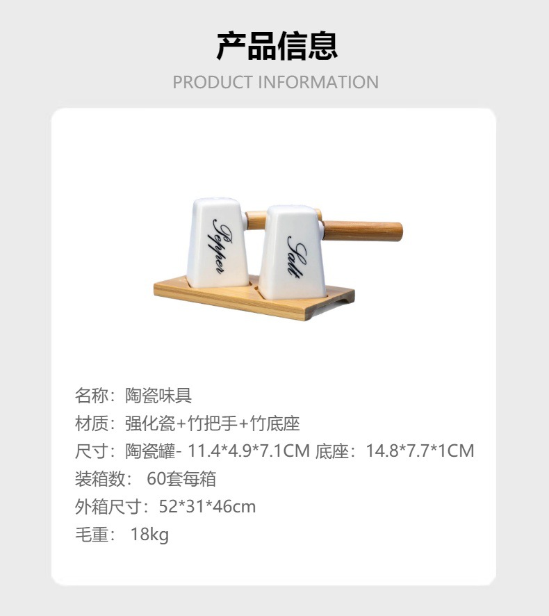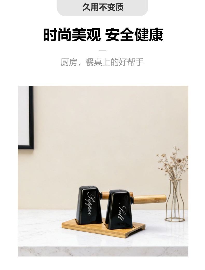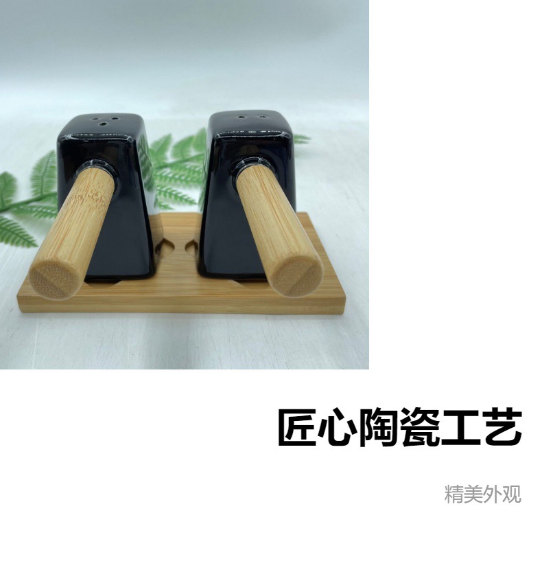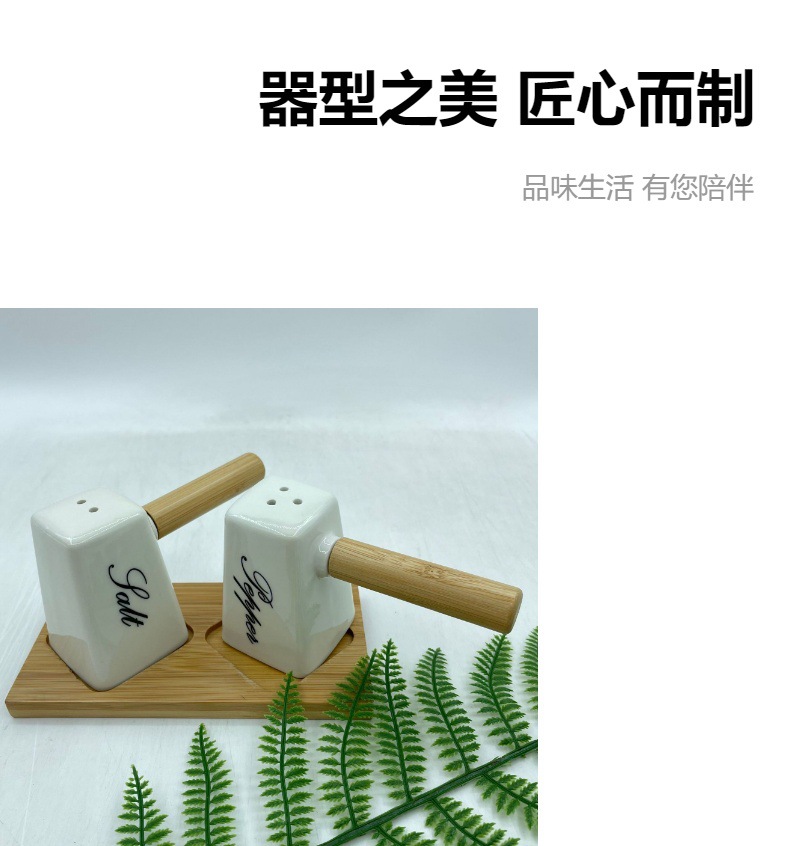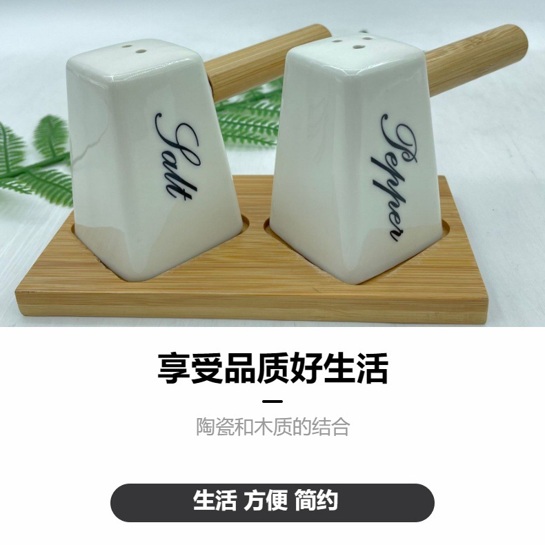 调味罐陶瓷盐瓶胡椒瓶带竹木底座调料罐调味盒厂家批发厨房味具 投诉