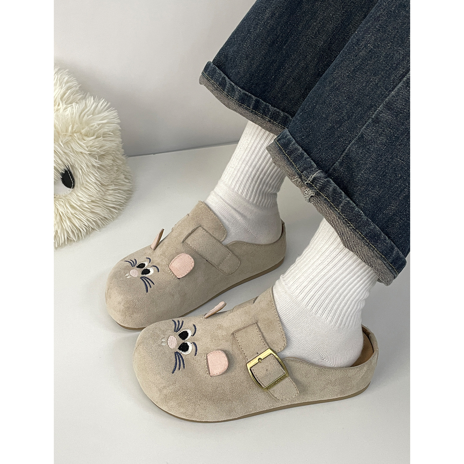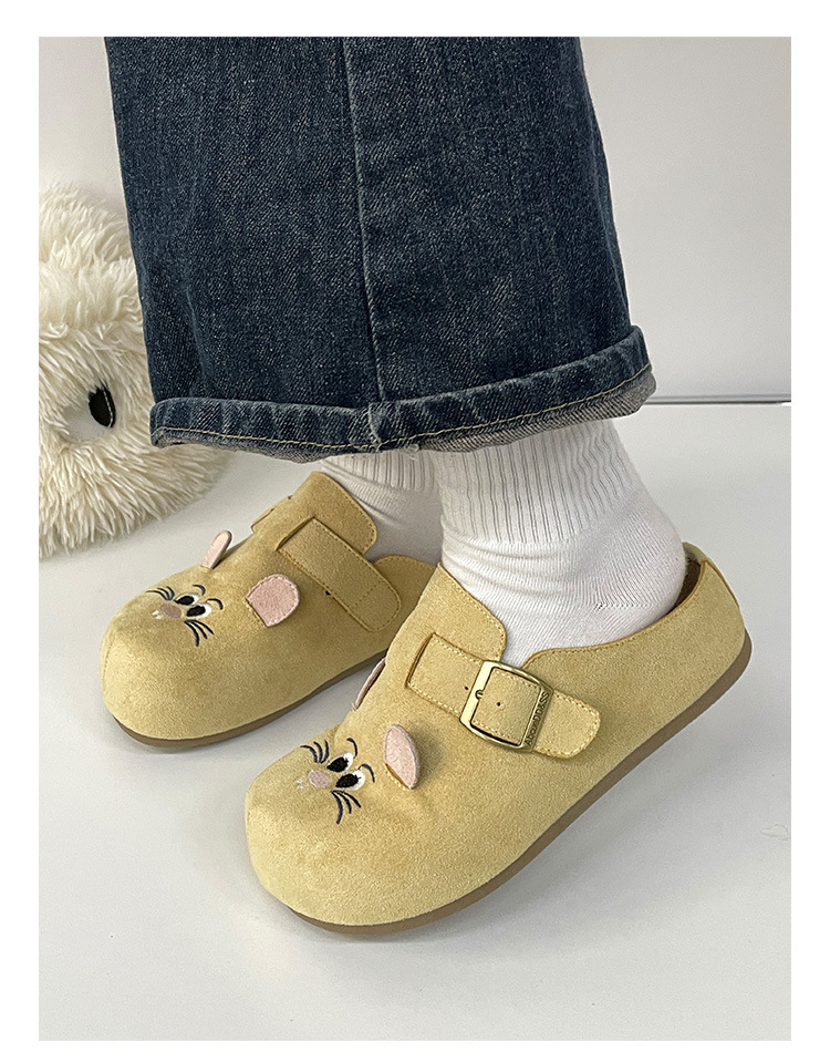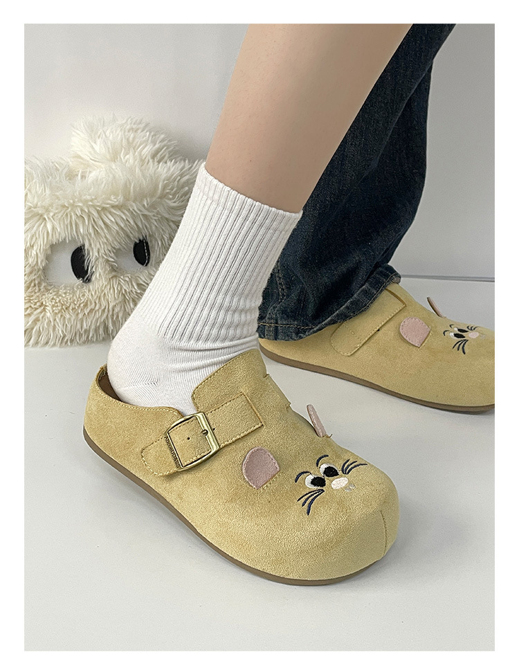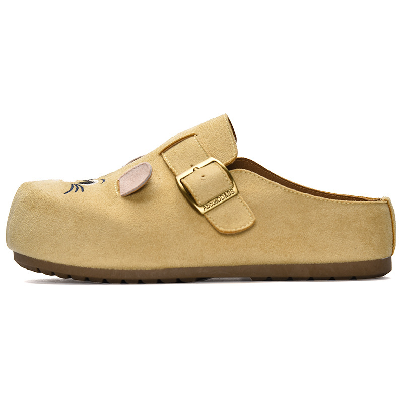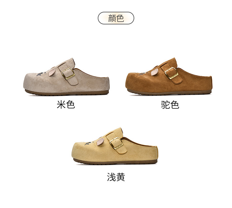 鞋面材质: 仿牛绒 内里材质: 布 品牌: ins flyerse/缤纷思益 款式: 半拖鞋 鞋垫材质: EVA 鞋底材质: PVC 功能: 透气,轻便 风格: 休闲风 流行元素: 纯色 鞋头形状: 圆头 货源类别: 现货 产地: 浙江温州 适用性别: 女 鞋跟高度: 中跟(3-5CM) 图案: 纯色 适合季节: 夏季,春季,秋季 最快出货时间: 1 颜色: 米色,驼色,淡黄 尺码: 35,36,37,38,39,40 货号: MIS-5293 重量: 1.0 kg/双