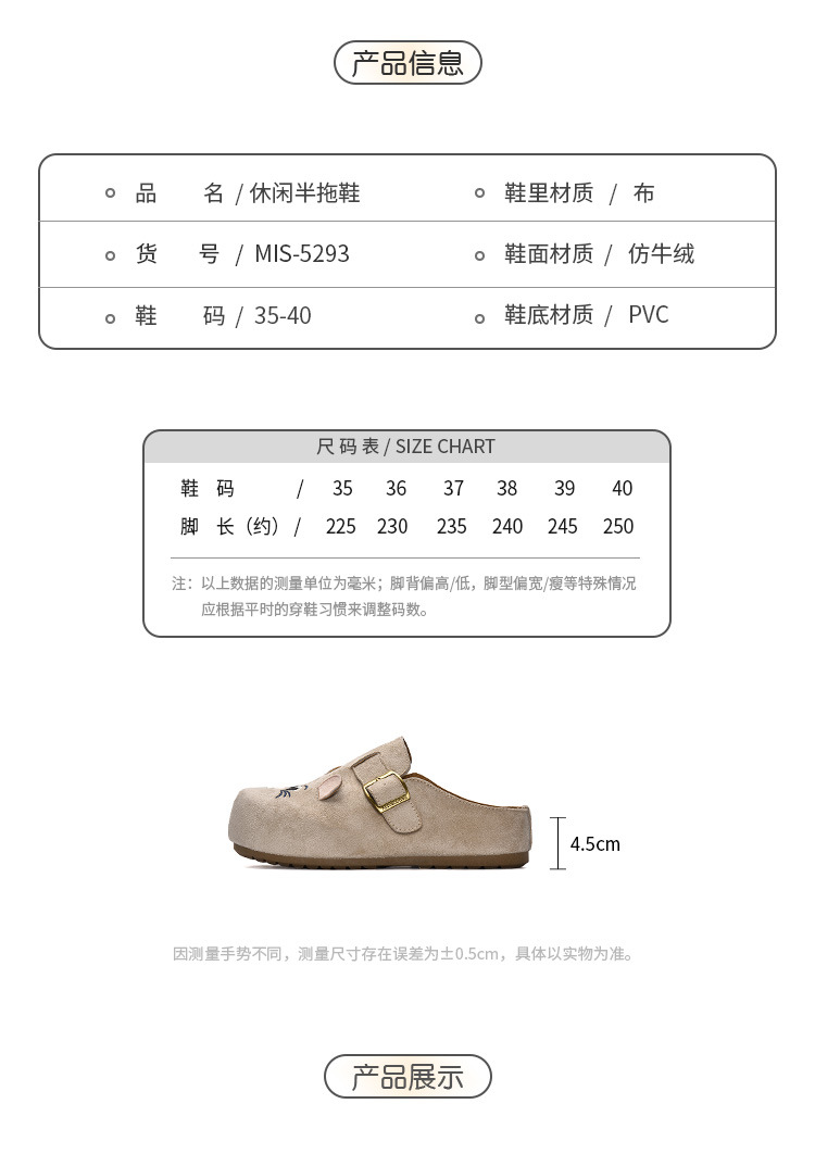 远益鞋行 2026春季新款厚底百搭休闲懒人一脚蹬半拖鞋女MIS-5293 English | 投诉