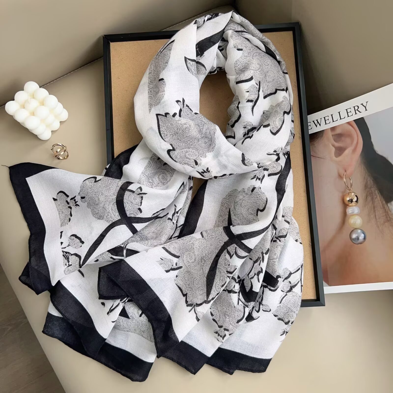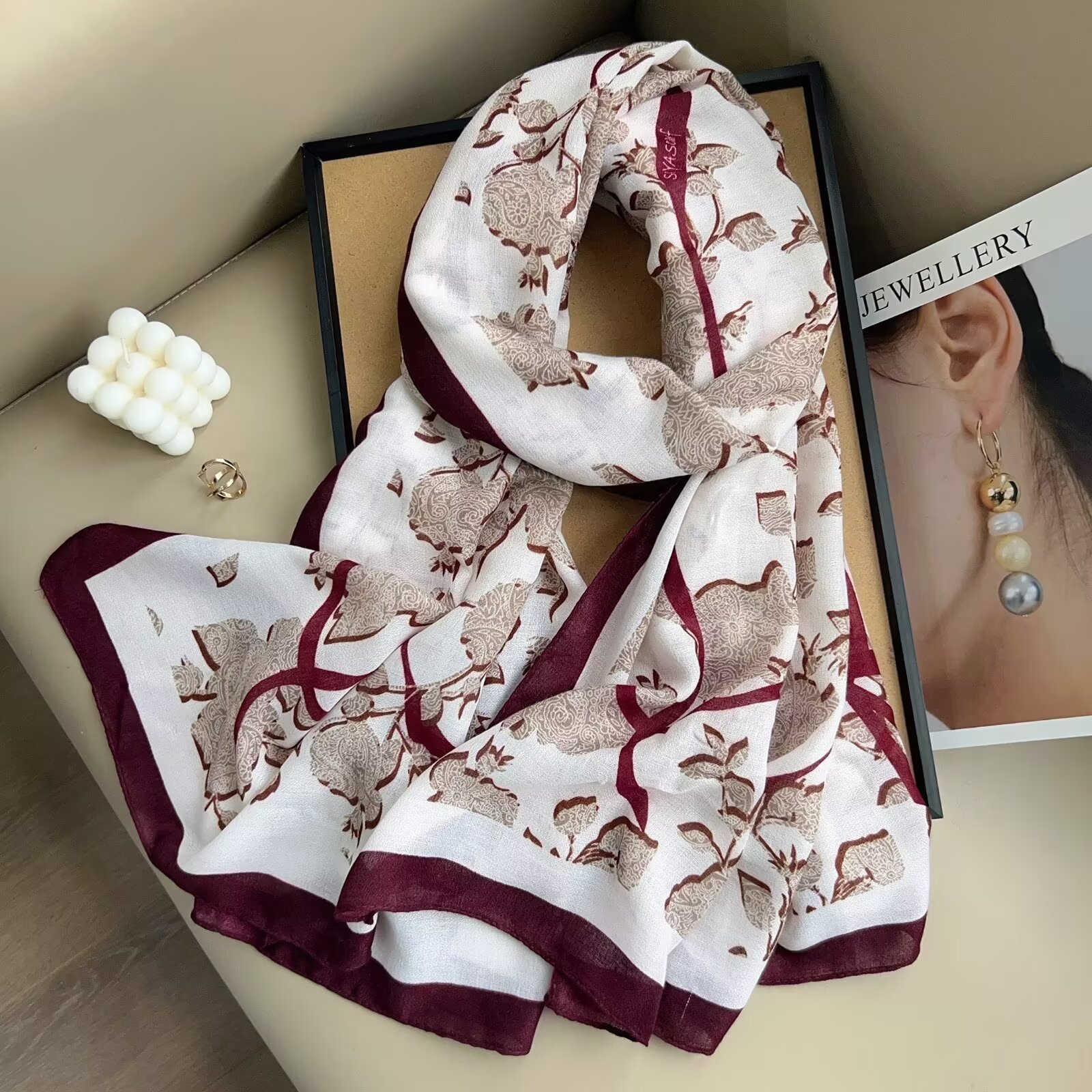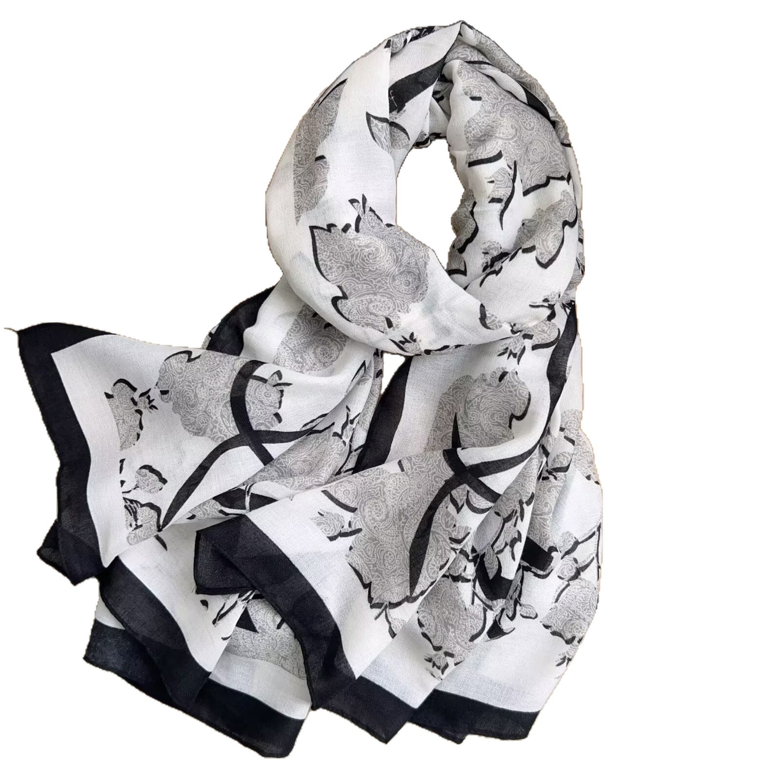 跨境新款棉麻长巾女韩国文艺百搭时尚气质领巾装饰乱麻围巾碎花头 投诉