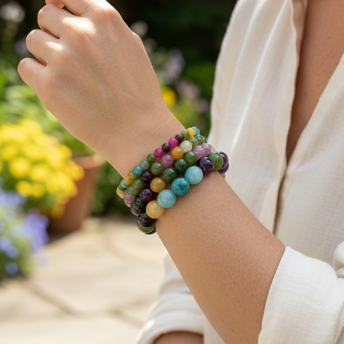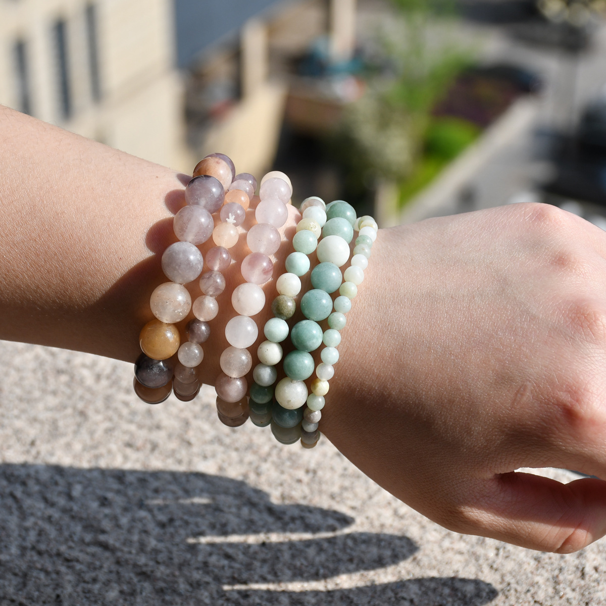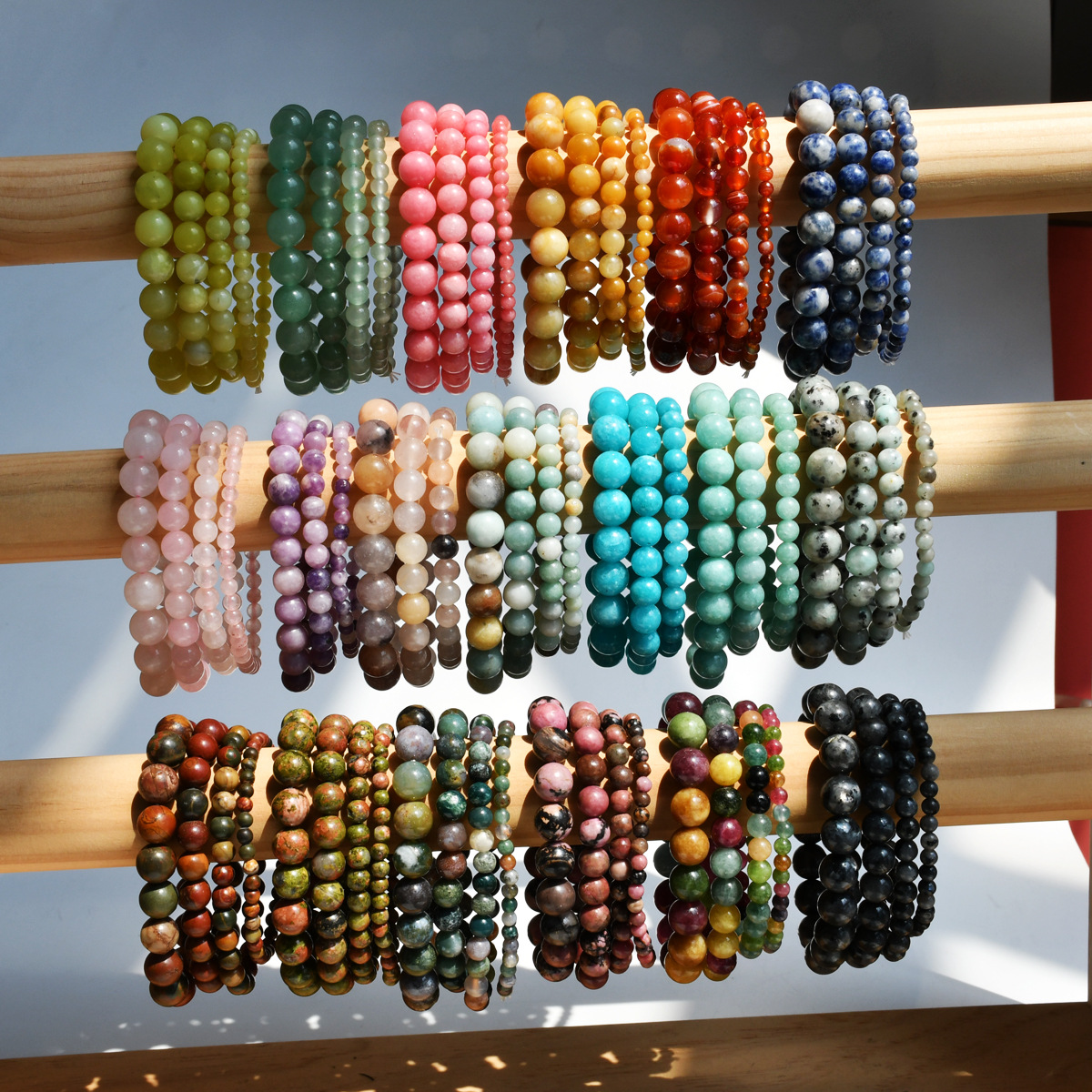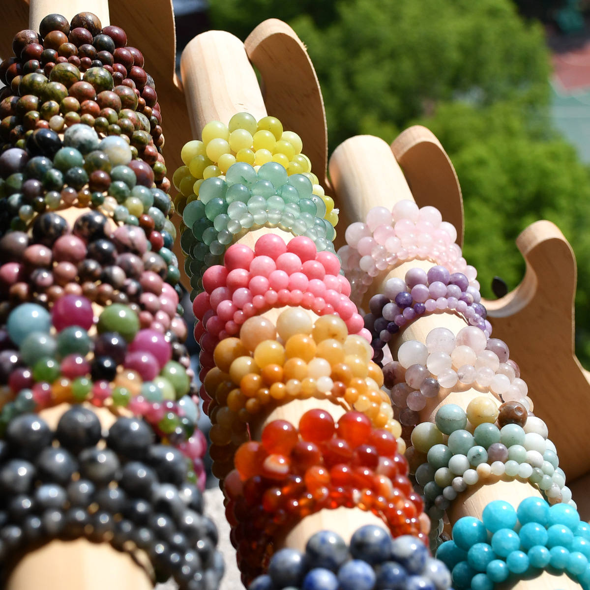 亚马逊新款单串圆珠串珠手链多规格天然石手串