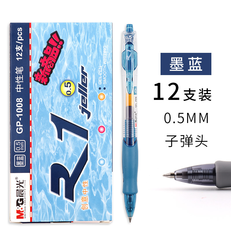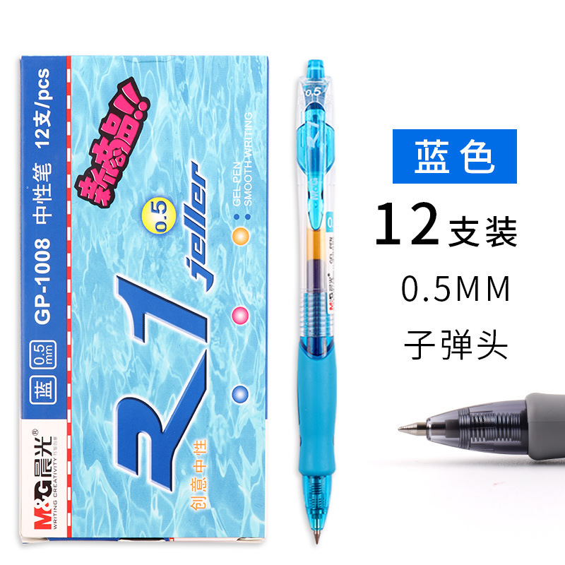 文具中性笔0.5mm子弹头按动大容量办公会议黑蓝签字笔GP1008