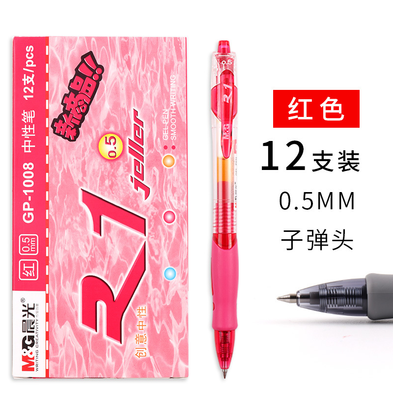 文具中性笔0.5mm子弹头按动大容量办公会议黑蓝签字笔GP1008 English | 投诉