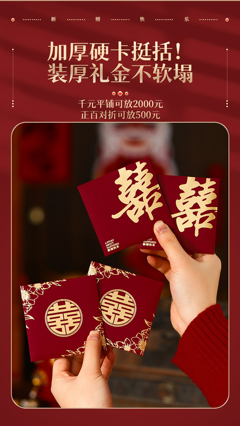 硬质堵门接亲结婚红包利是封婚礼塞门用2026新款红包袋批发红包结婚2026新款利是封婚礼随份子硬卡喜包接亲堵门小红包袋