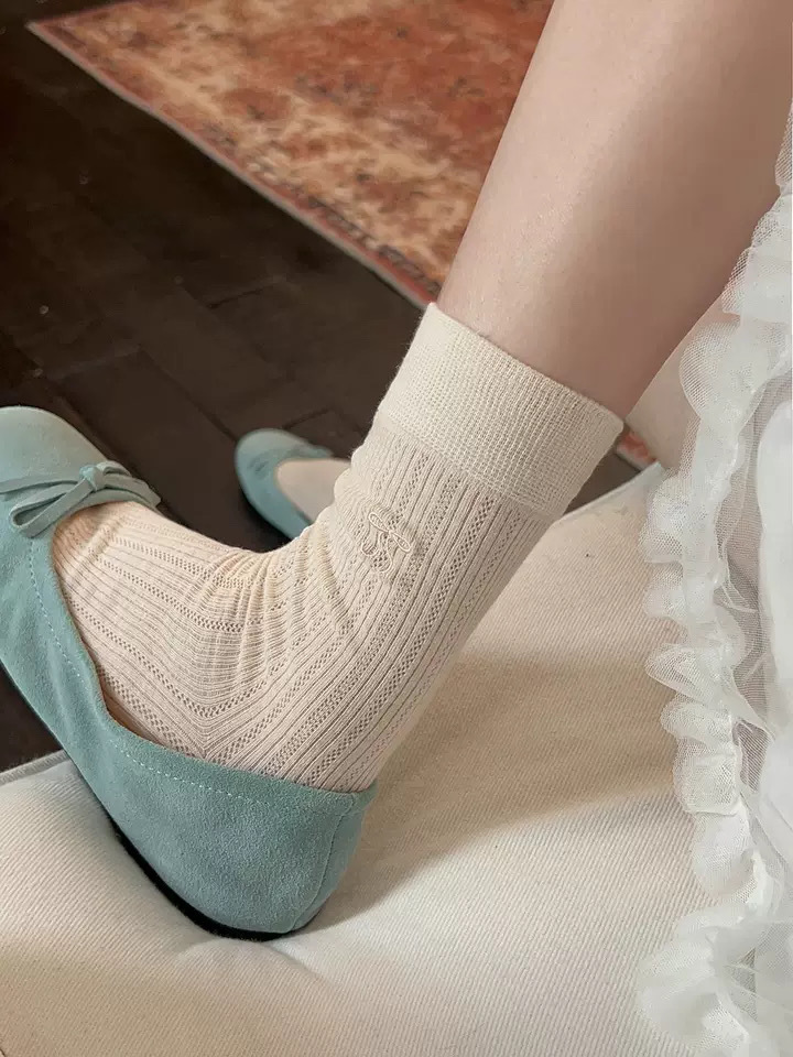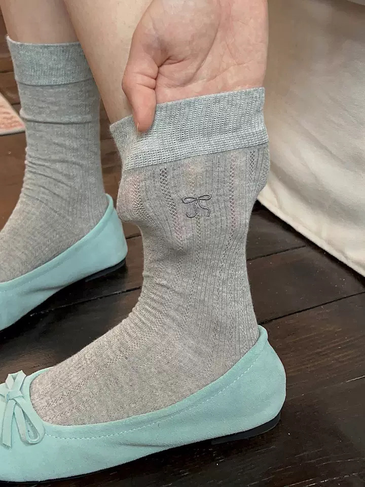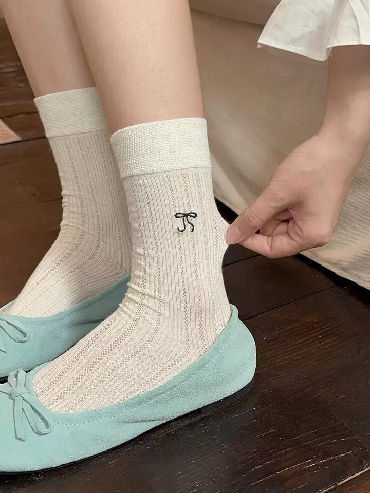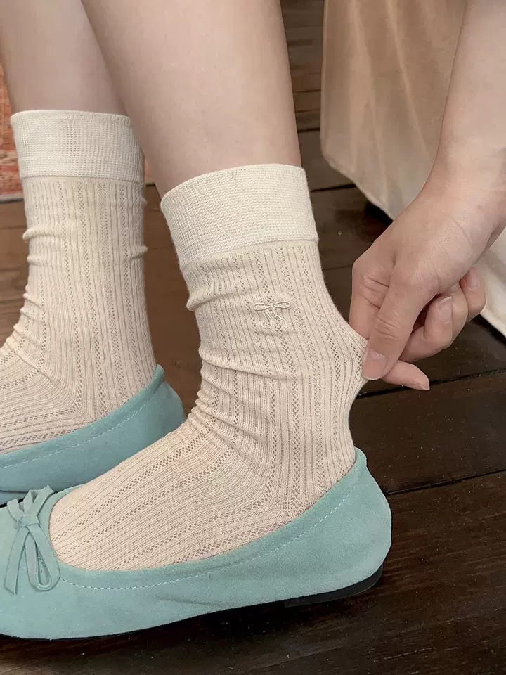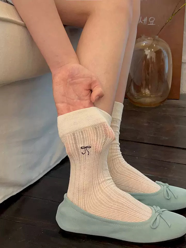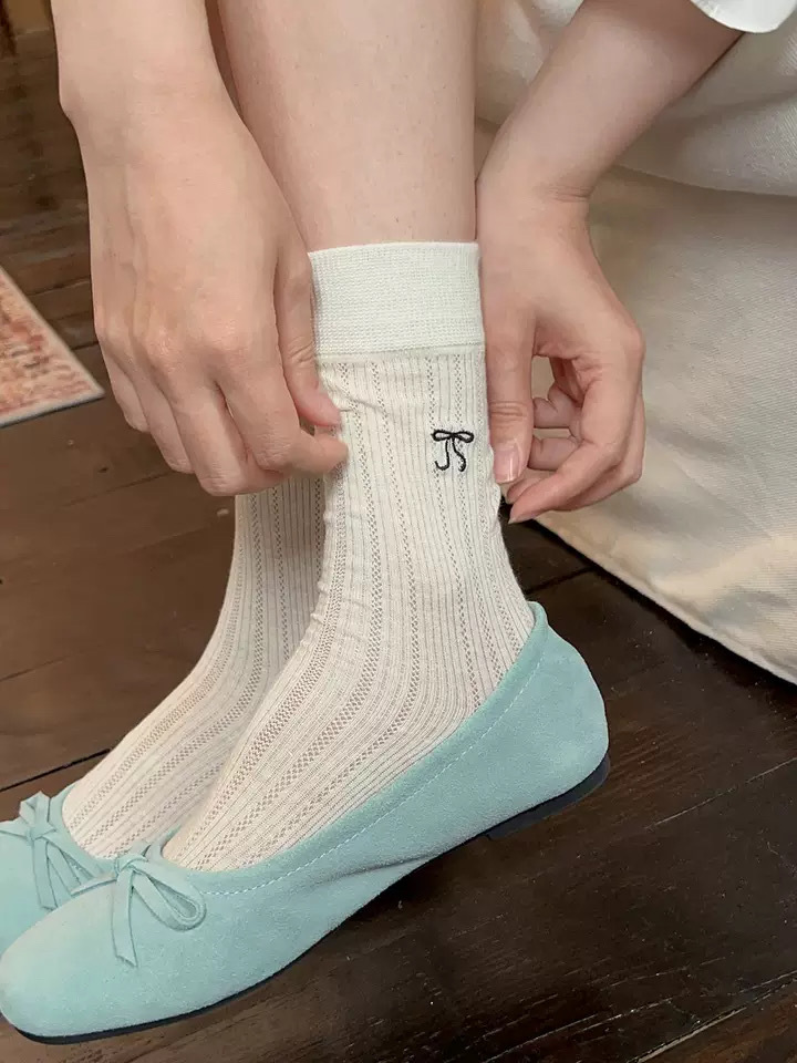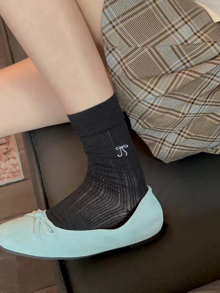 芭蕾风蝴蝶结袜子女夏季薄款堆堆袜中筒袜韩系ins潮袜百搭竖条透 English | 投诉