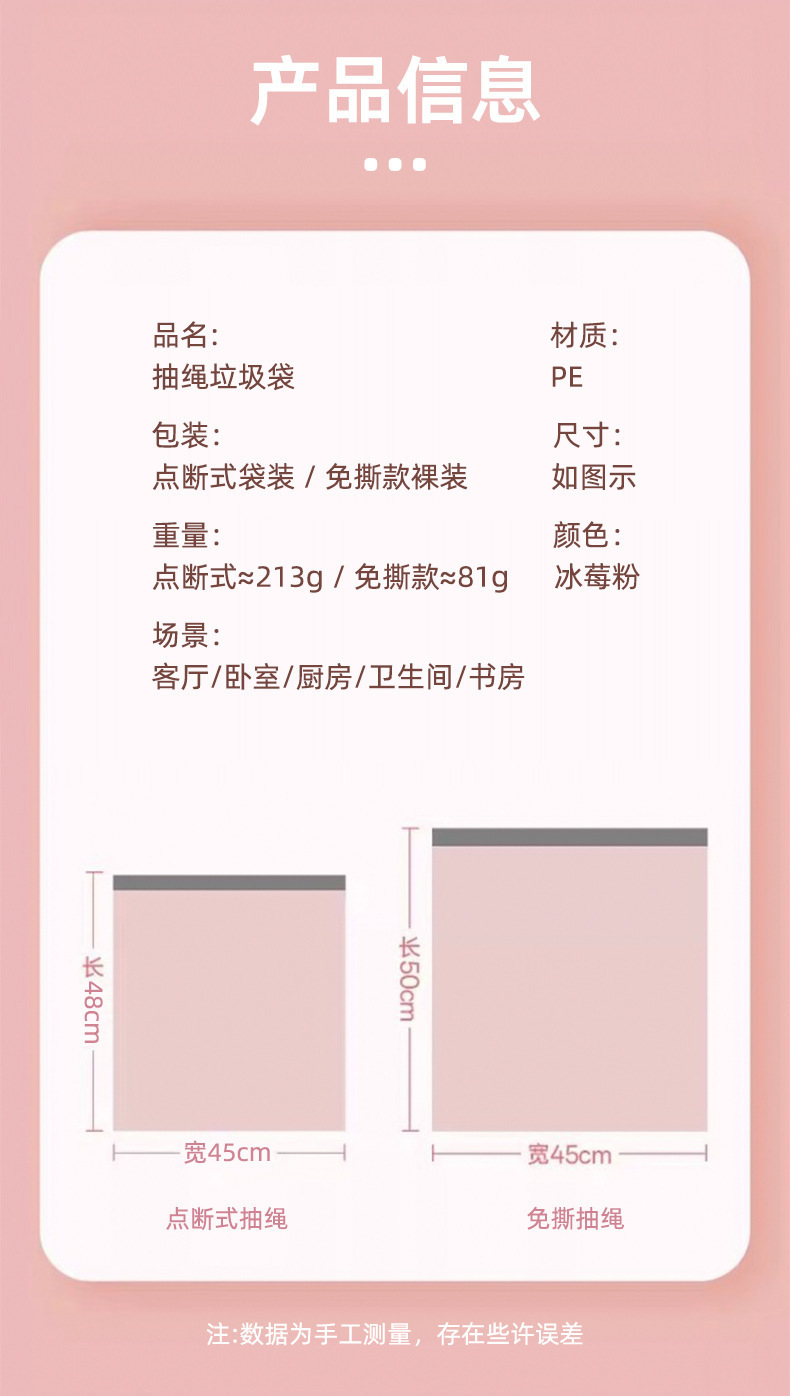 产品名称:4171粉色抽绳垃圾袋