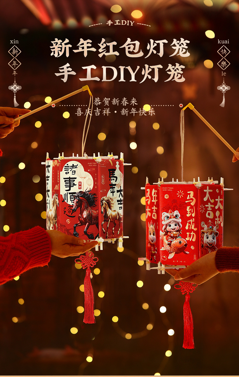 元宵节儿童手提花灯手工制作diy2026马年红包灯笼过年小商品批货 English | 投诉