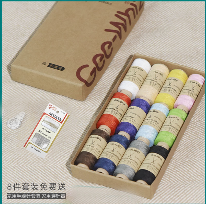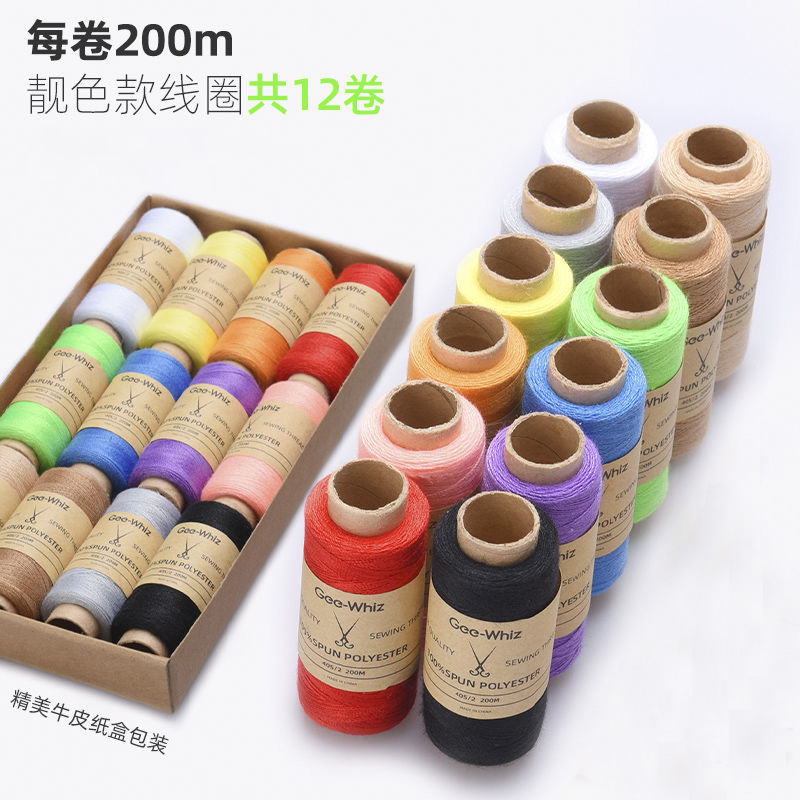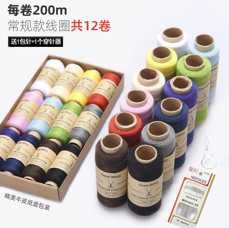 缝纫线缝衣线402牛皮纸盒缝纫机线针线盒家用手工缝补线团缝衣服
