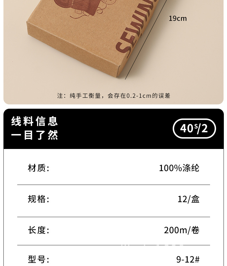 缝纫线缝衣线402牛皮纸盒缝纫机线针线盒家用手工缝补线团缝衣服 投诉