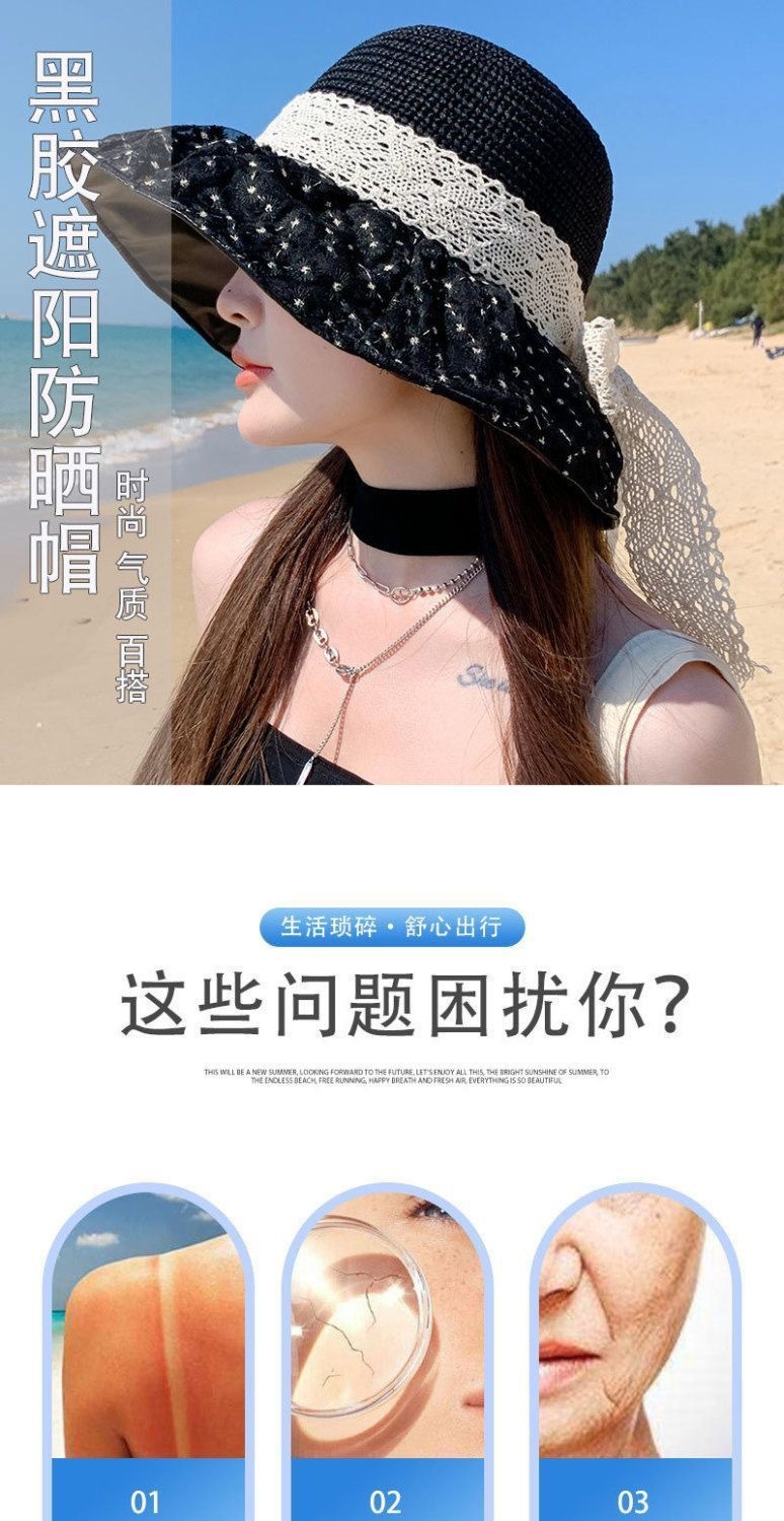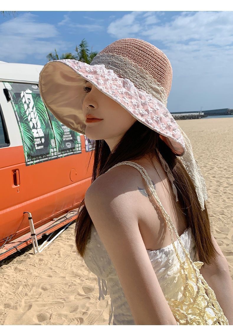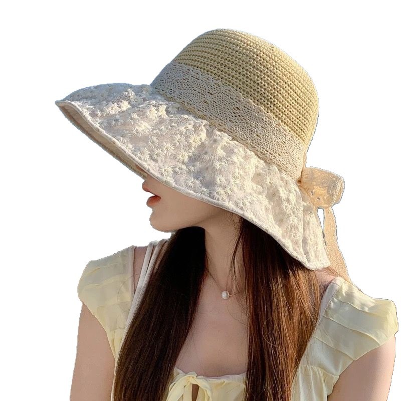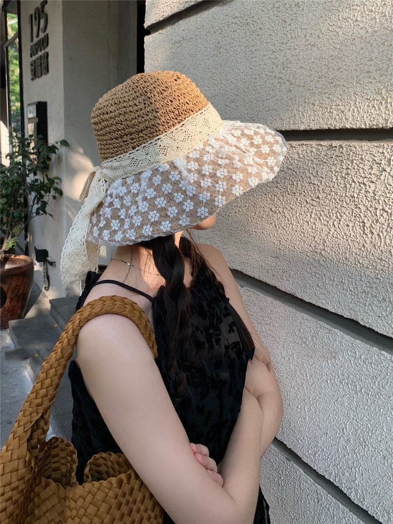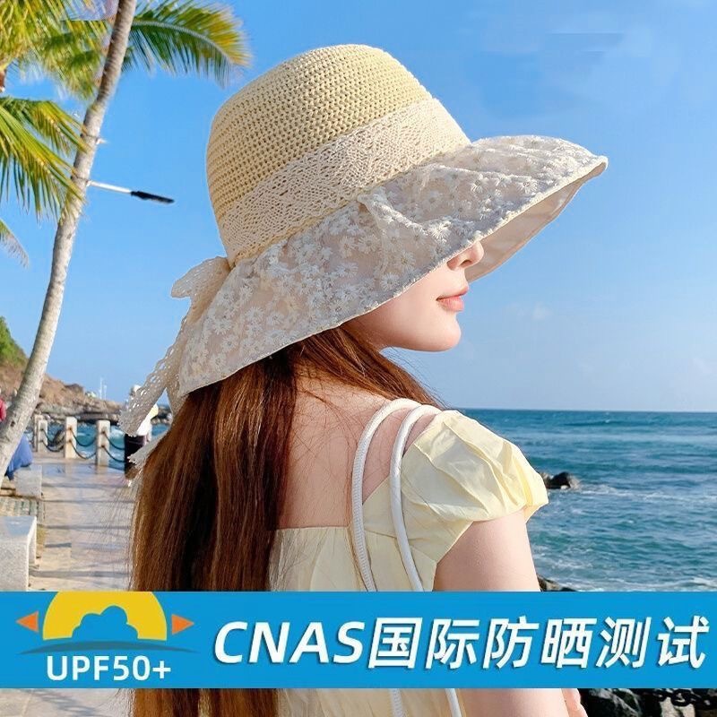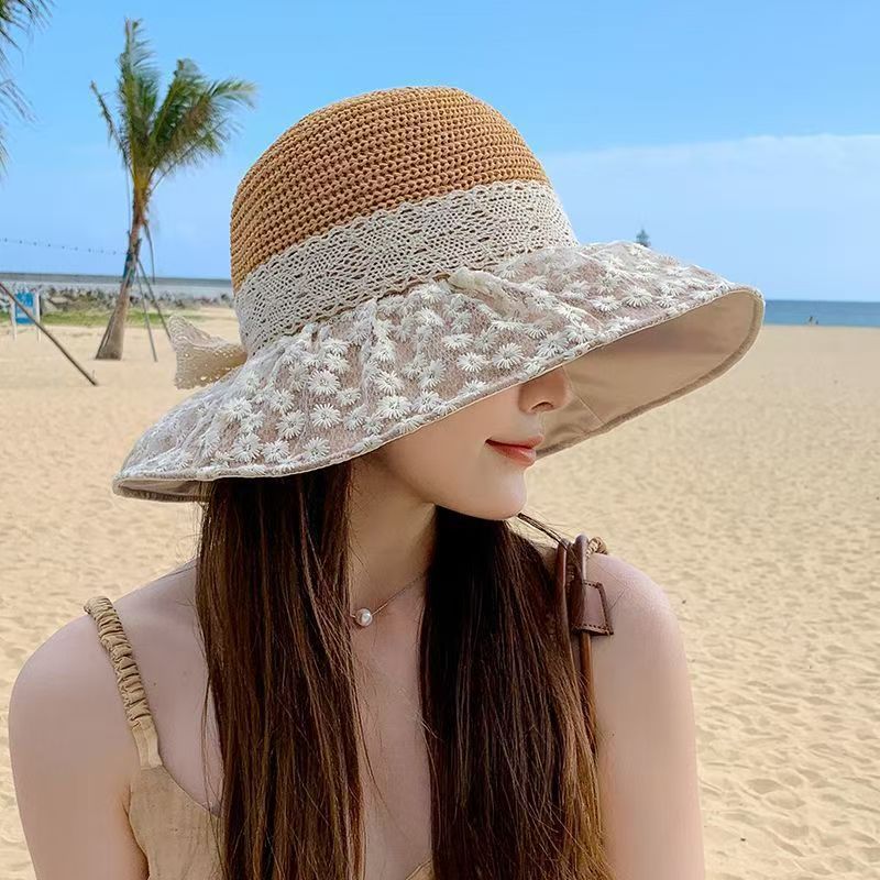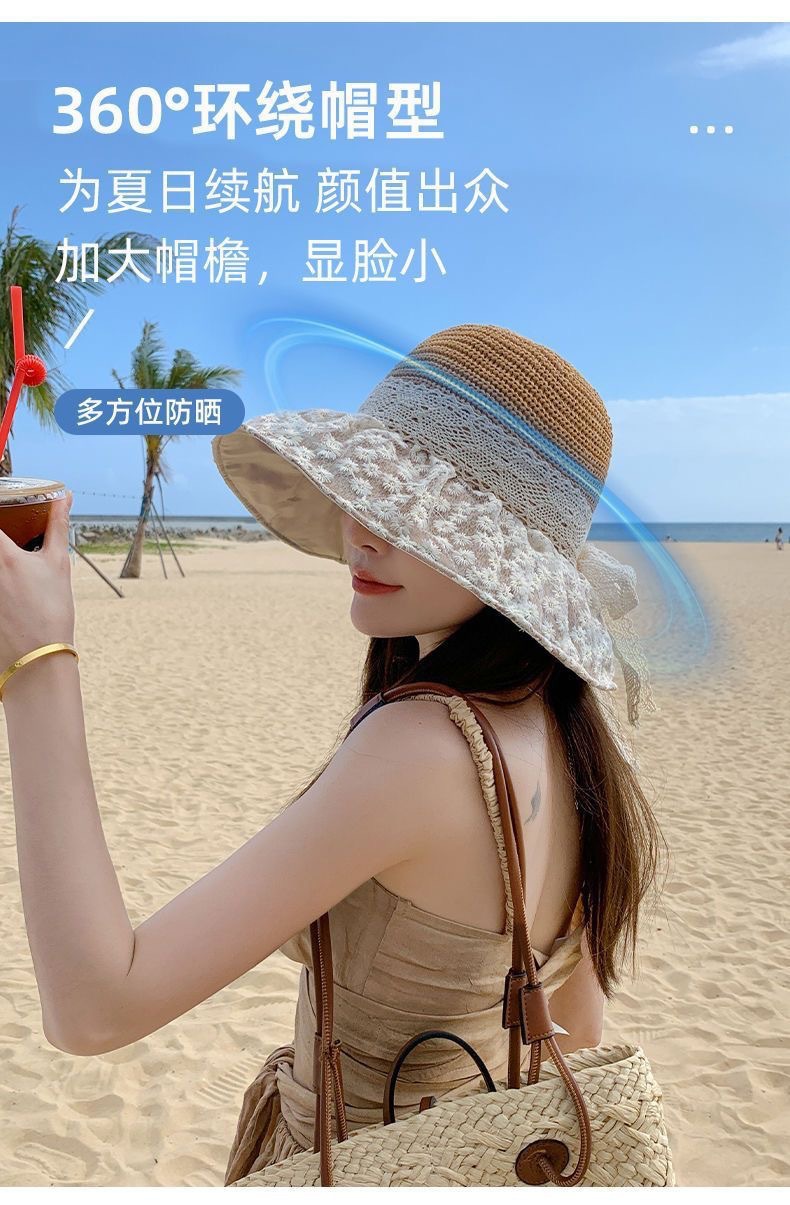 日系蕾丝草编大檐遮阳帽女夏季海边度假太阳防晒帽子显脸小渔夫帽 English | 投诉