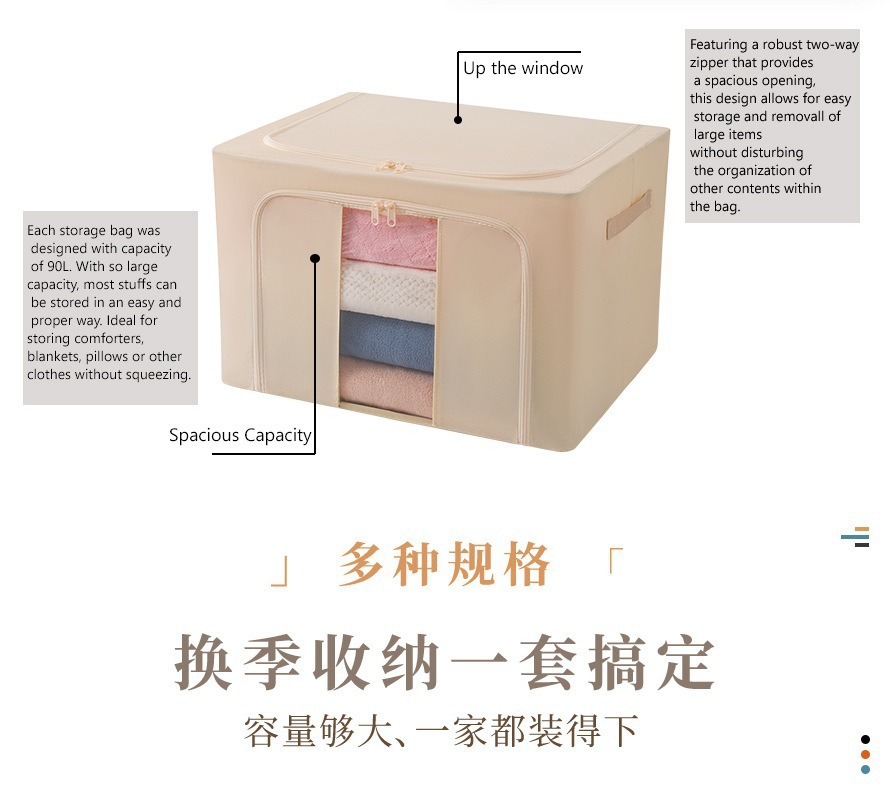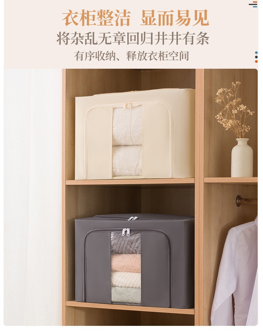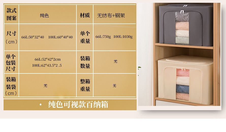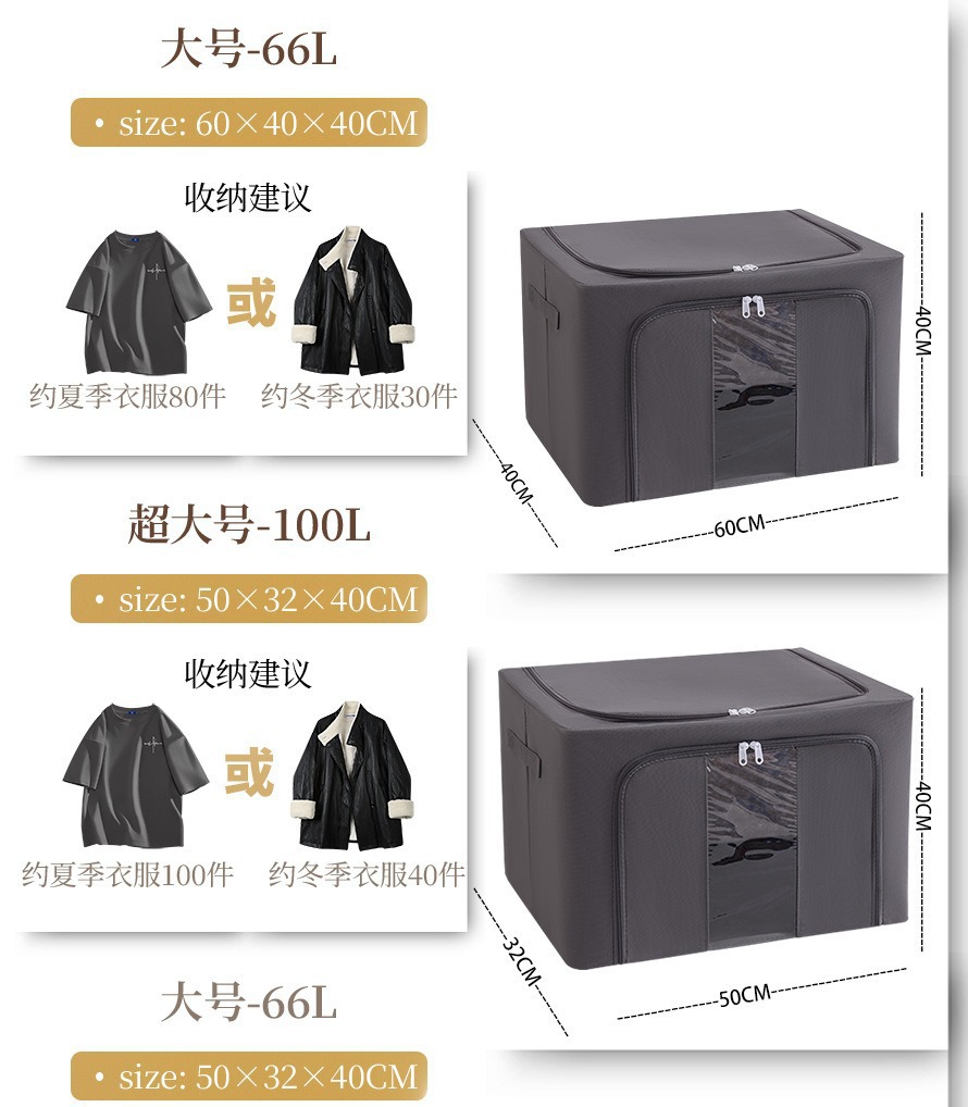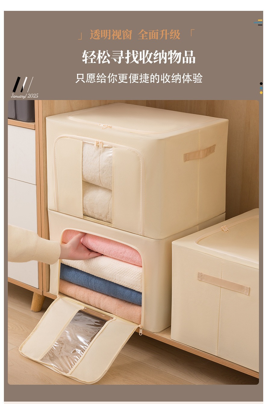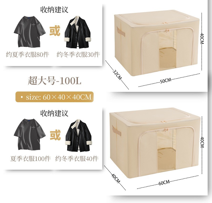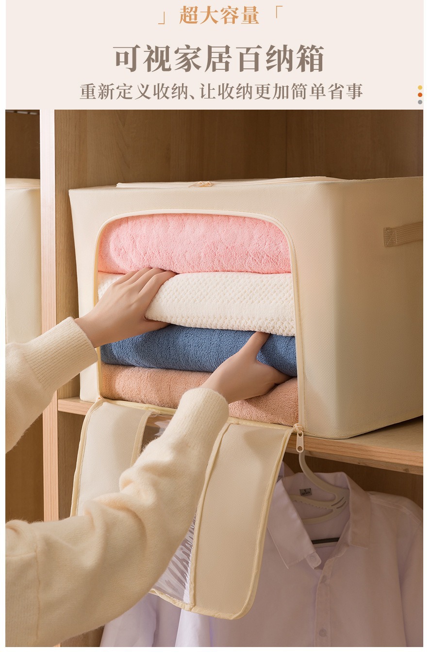 透明窗钢架箱家用无纺布大容量百纳箱衣服棉被整理箱可折叠收纳箱 English | 投诉