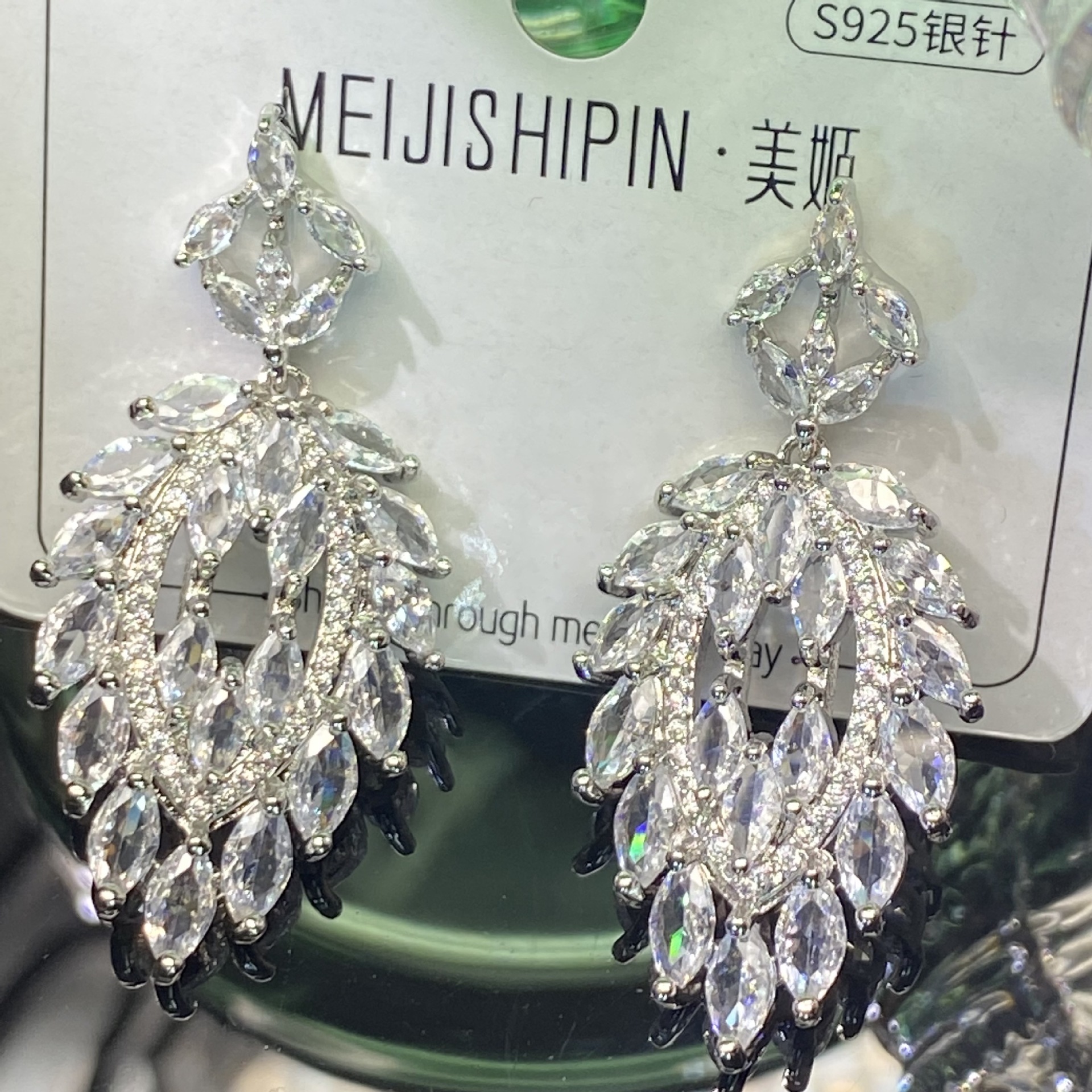 材质: 铜 处理工艺: 镶锆石 耳针材质: 925银 品牌: 无 流行元素: 方块 风格: 优雅风 造型: 叶子 货号: ouwen 产地: 义乌 主要下游平台: 淘宝,京东,ebay,亚马逊,wish, 颜色: 银羽锆石耳坠,复古彩宝耳坠,银叶绿钻耳坠 有可授权的自有品牌: 否 是否跨境出口专供货源: 否 上市年份/季节: 2025夏季 风格分类: 文艺复古 适用人群: 女式 商品类型: 饰品 流行元素分类: 几何 重量: 0.01 kg/对