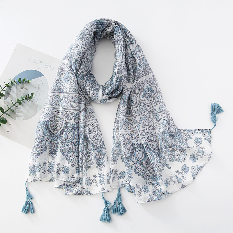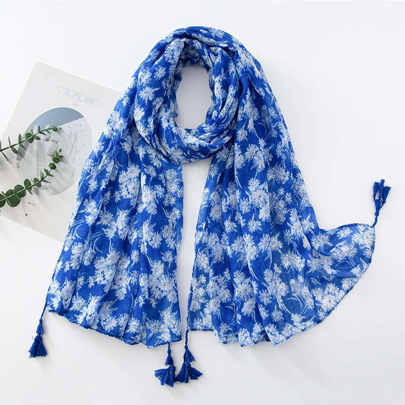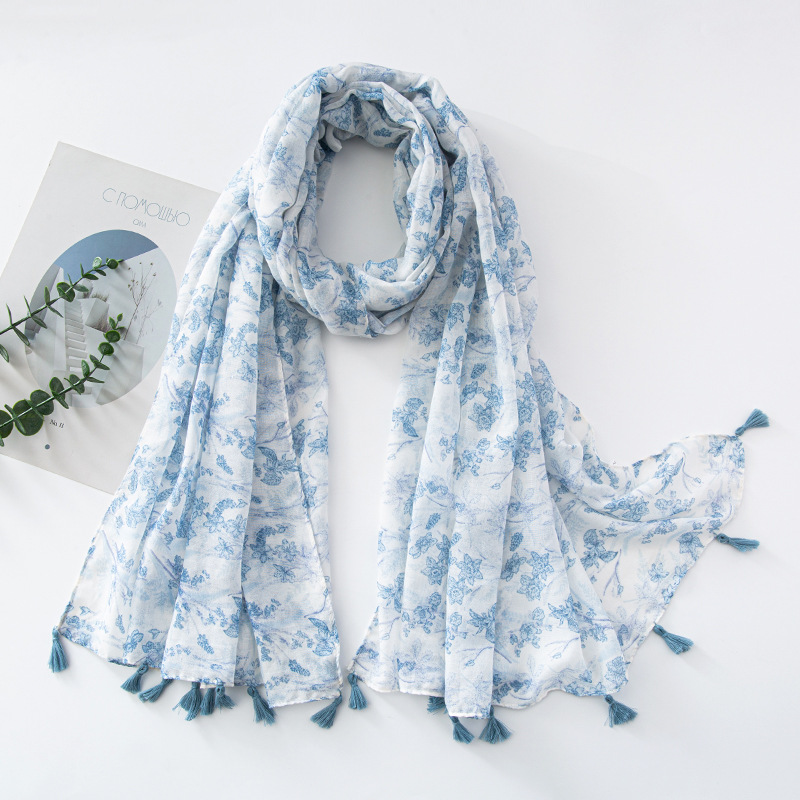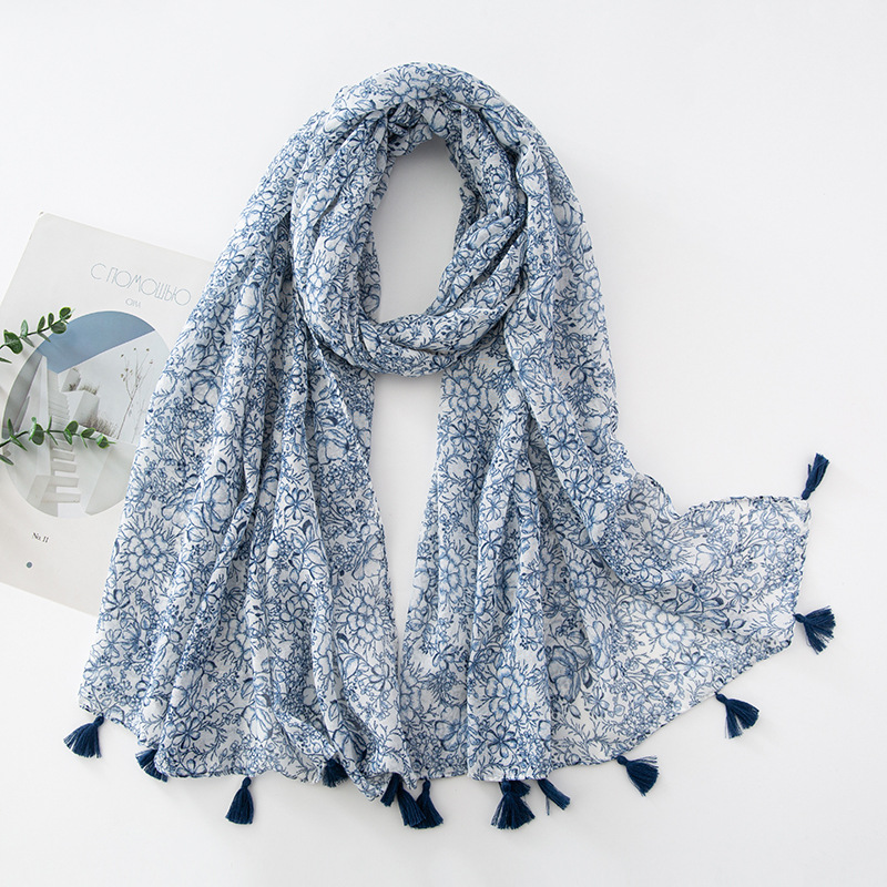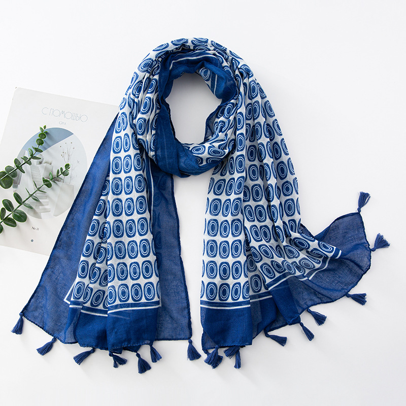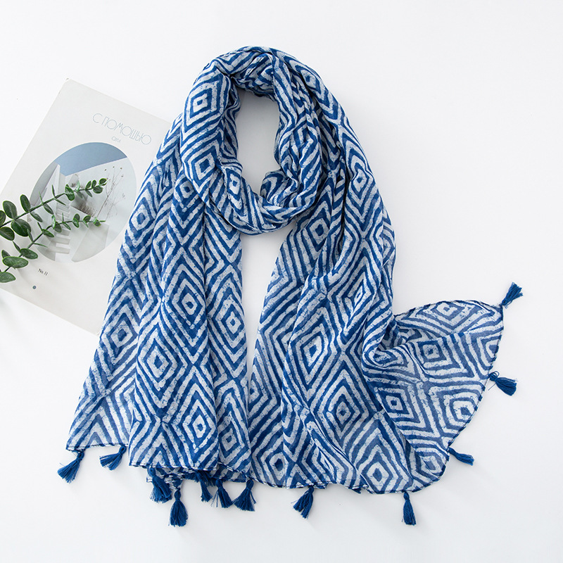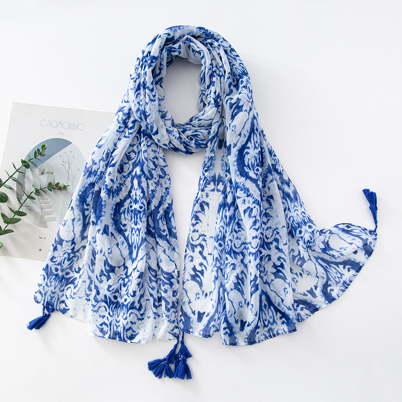 新款民族风扎染色调青花瓷系列小清新围巾森女旅行大披肩Scarf