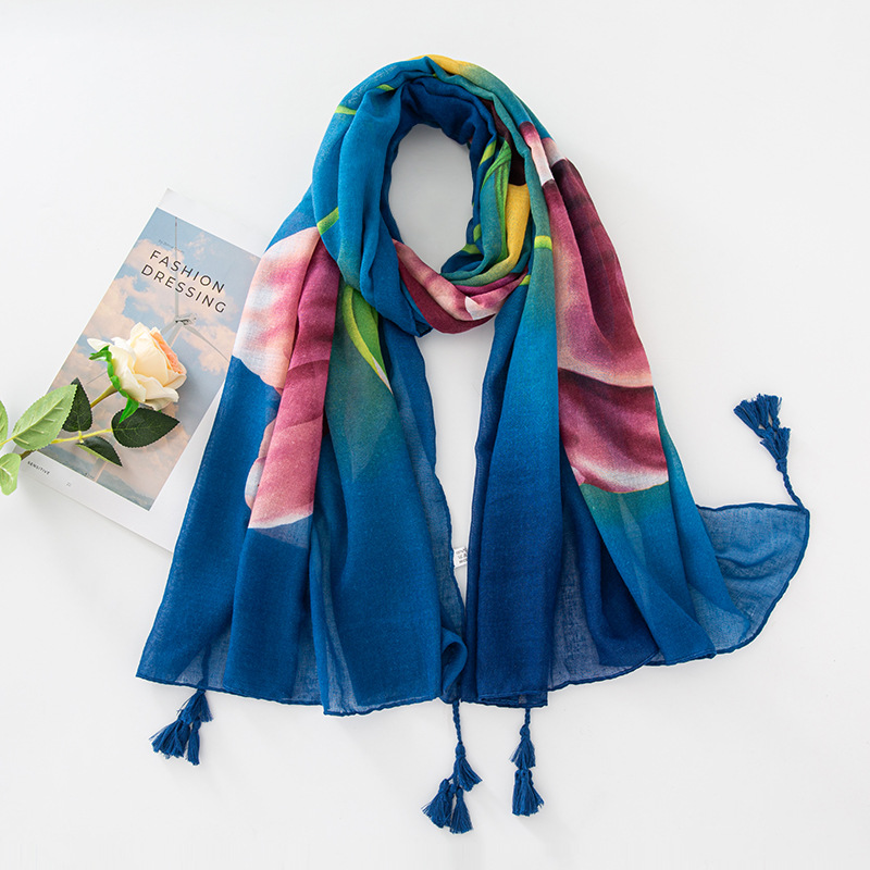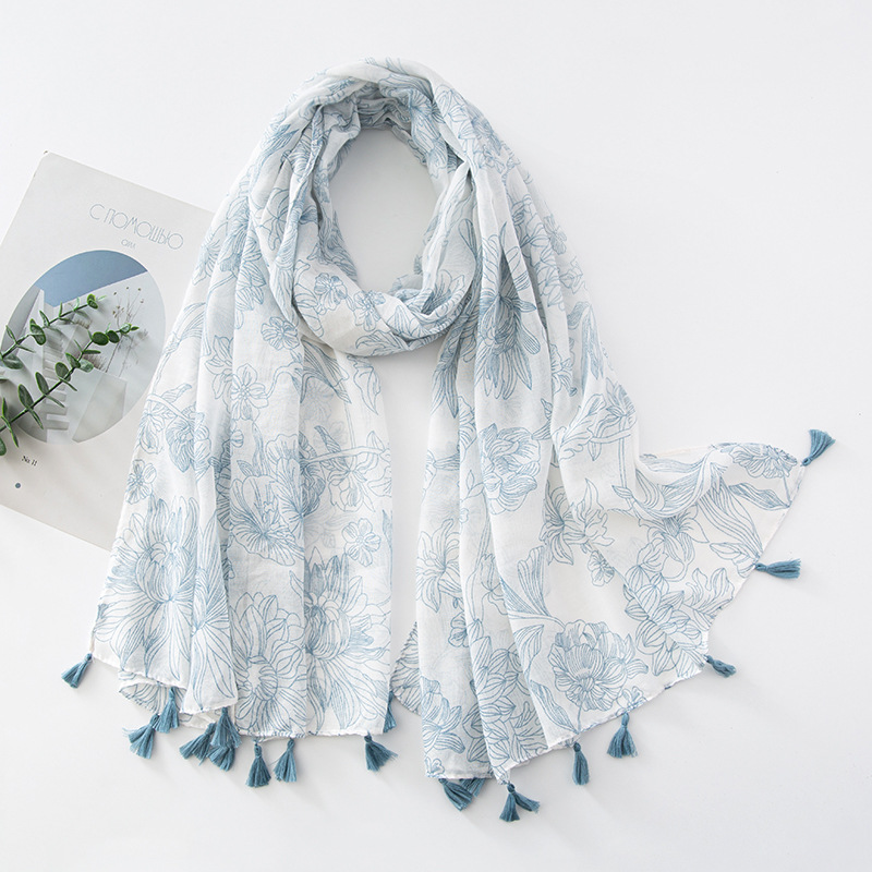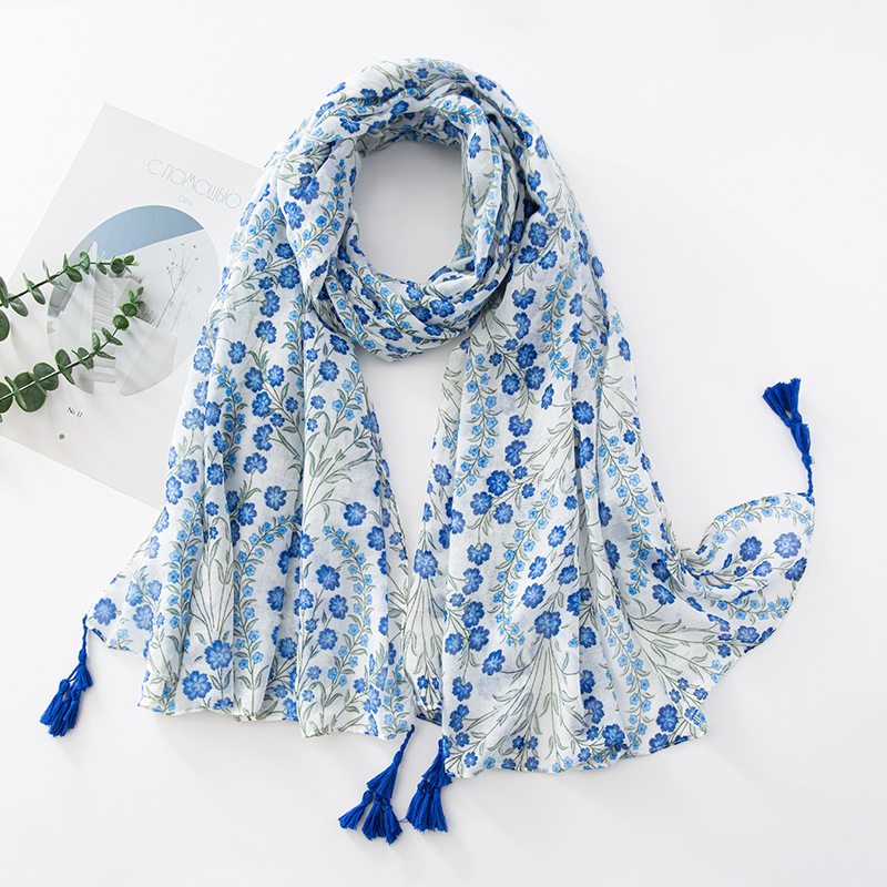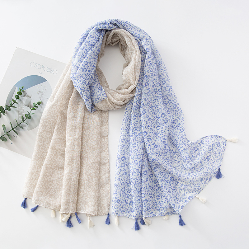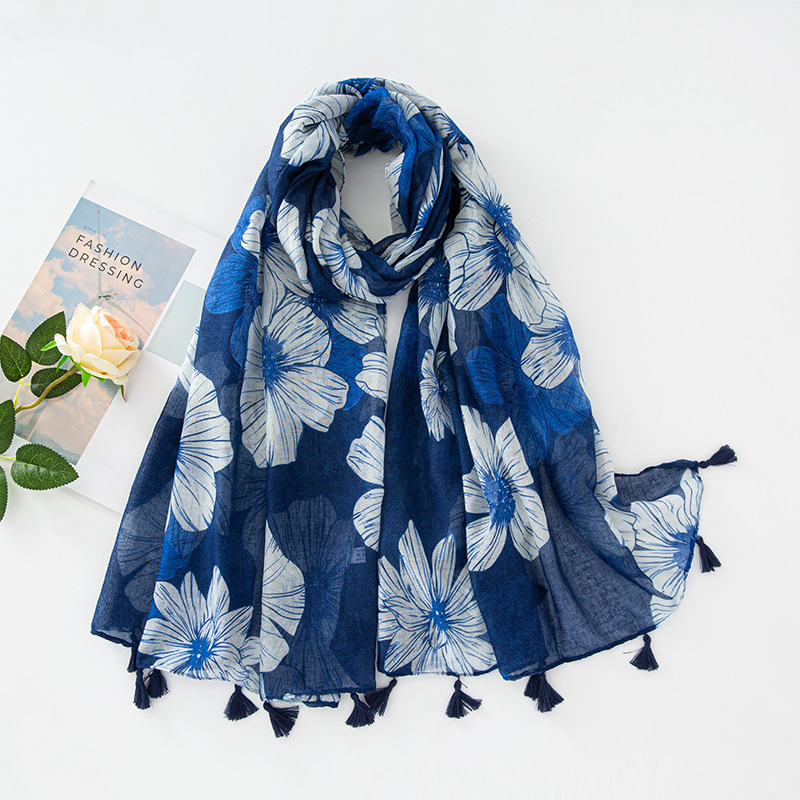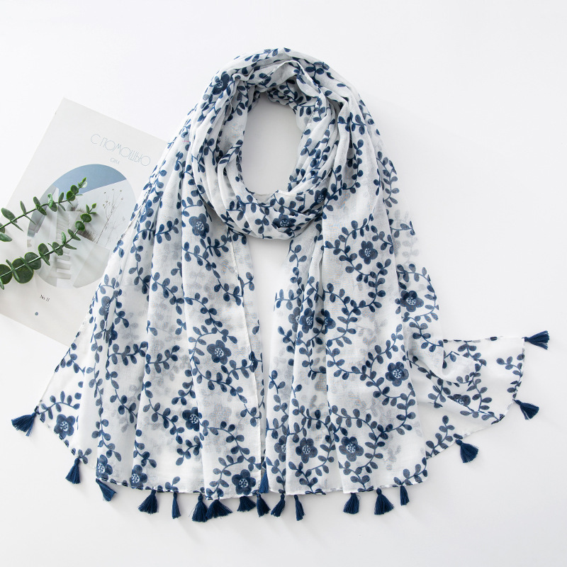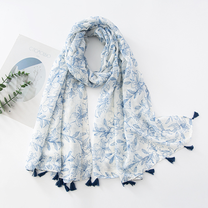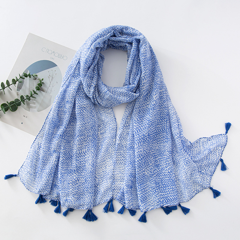 新款民族风扎染色调青花瓷系列小清新围巾森女旅行大披肩Scarf