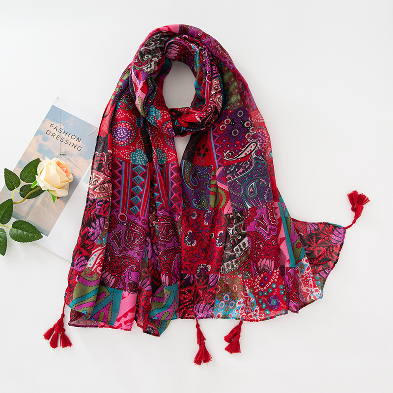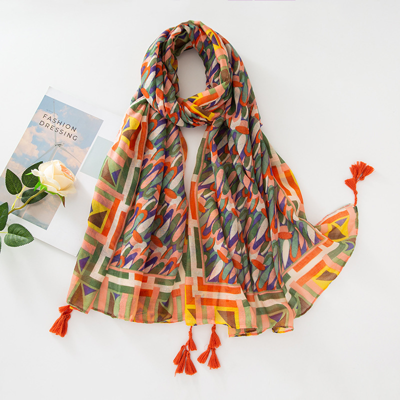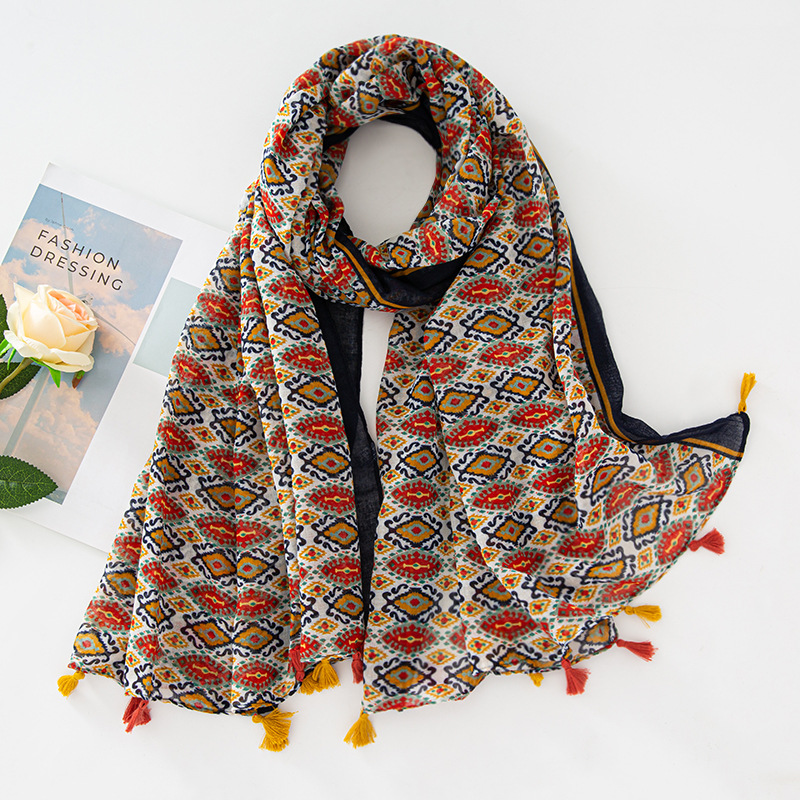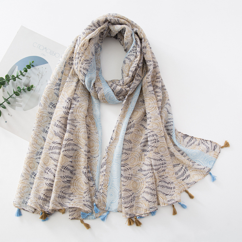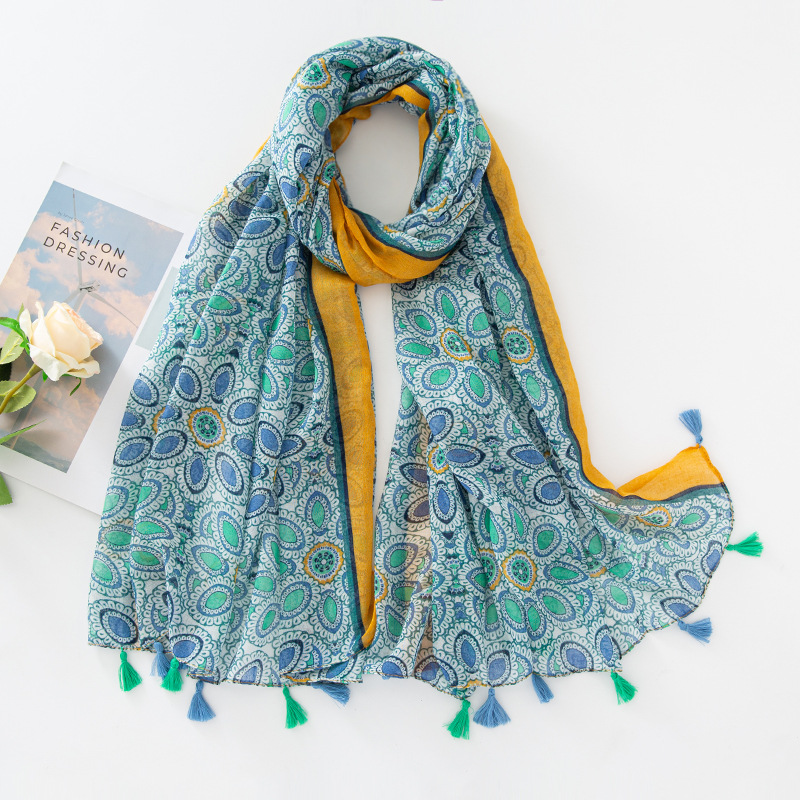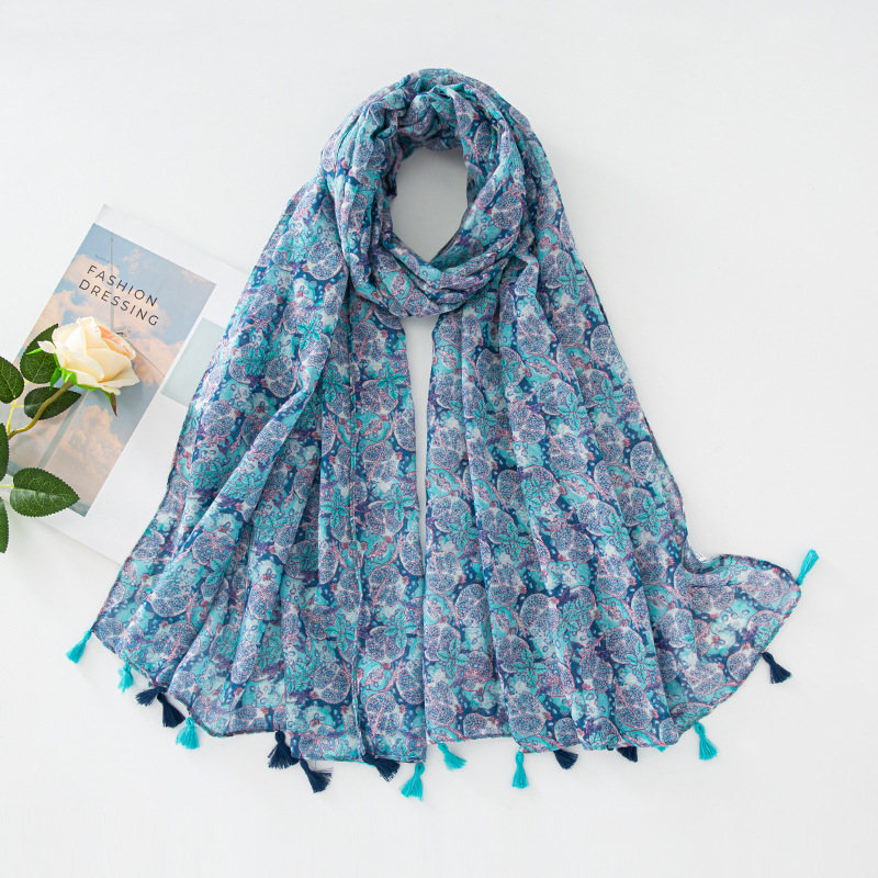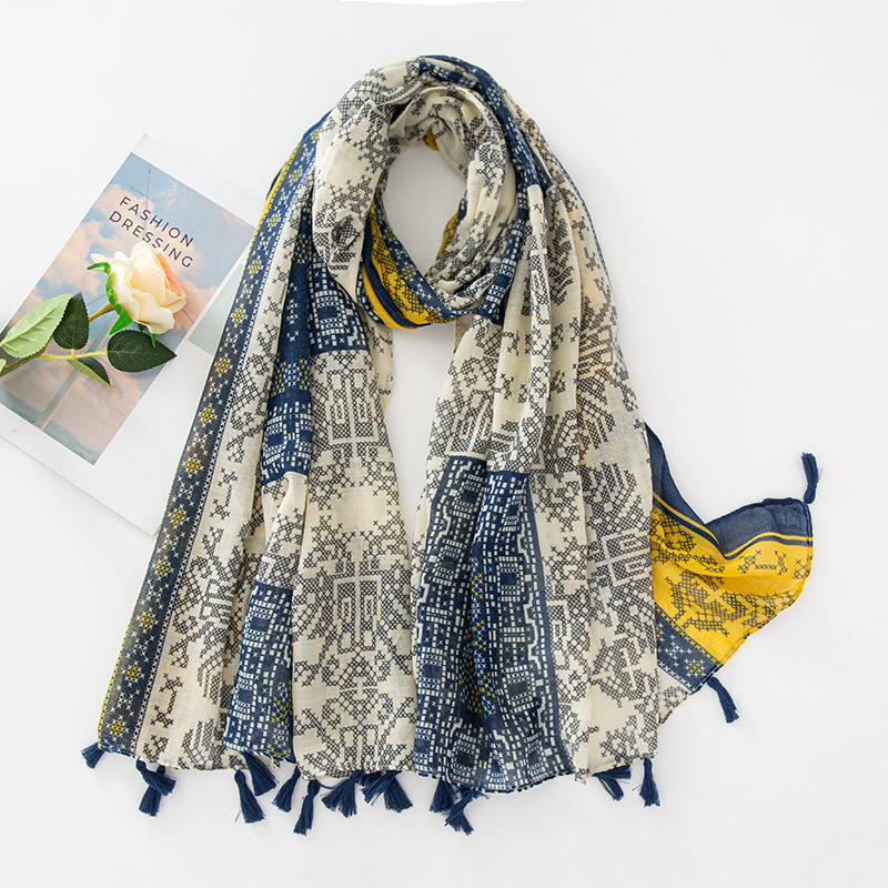 新款民族风扎染色调青花瓷系列小清新围巾森女旅行大披肩Scarf