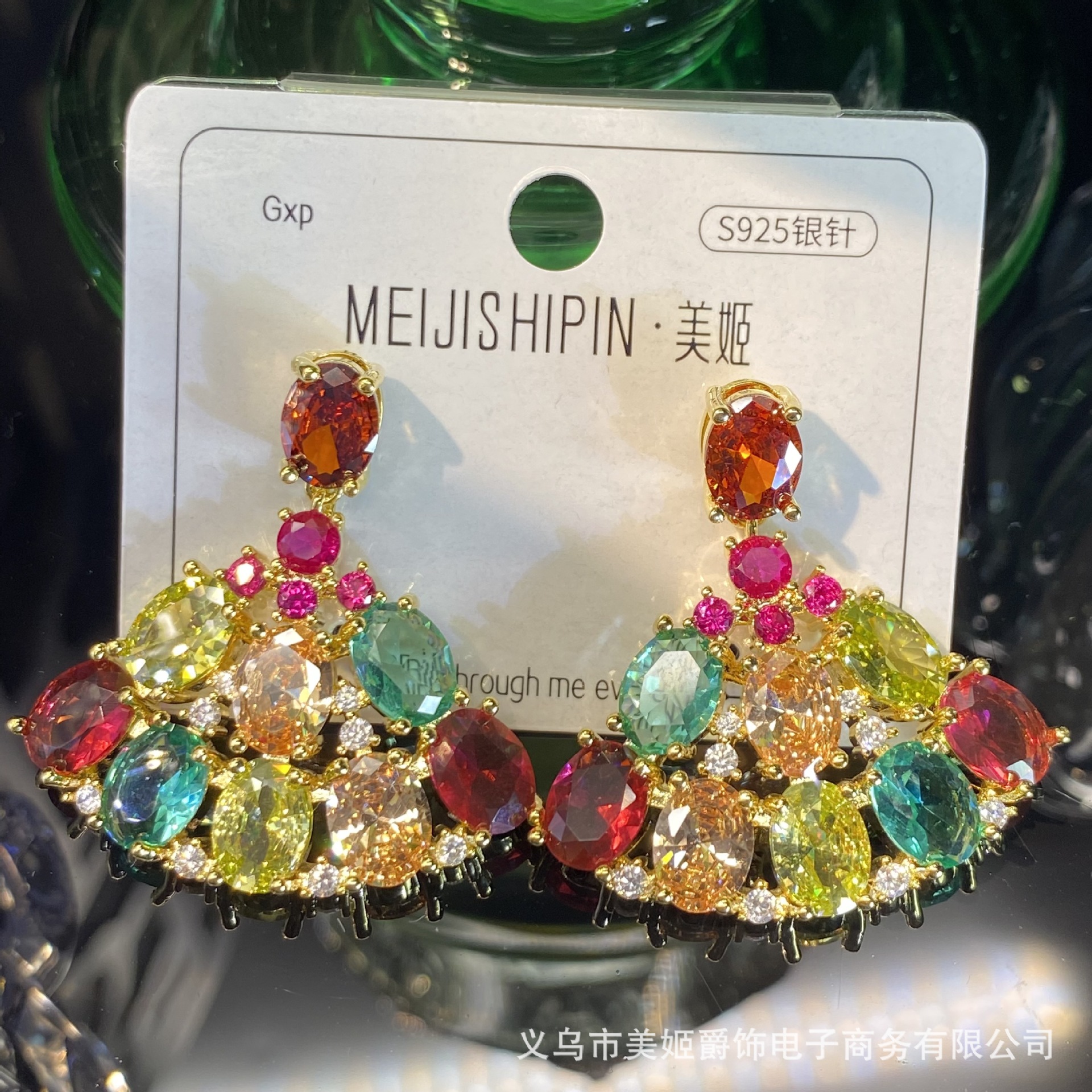 轻奢彩宝耳饰S925纯银法式复古红宝绿宝锆石耳环宴会派对精致耳坠