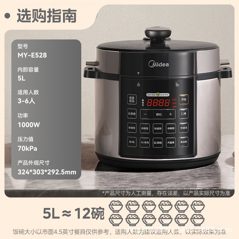 美的电压力锅家用双胆高压锅5L多功能饭煲全自动智能8人RY50Q3-FS English | 投诉