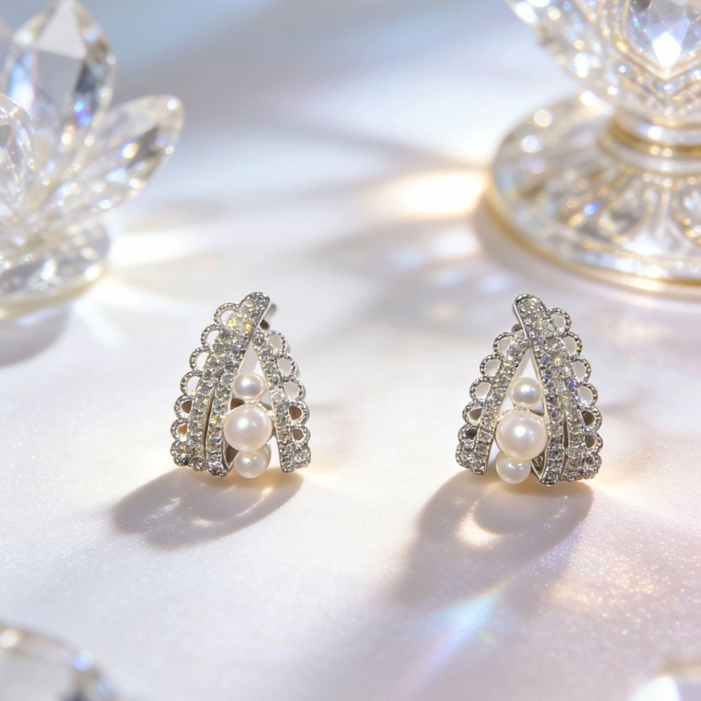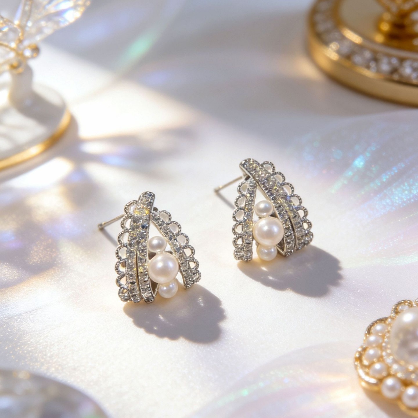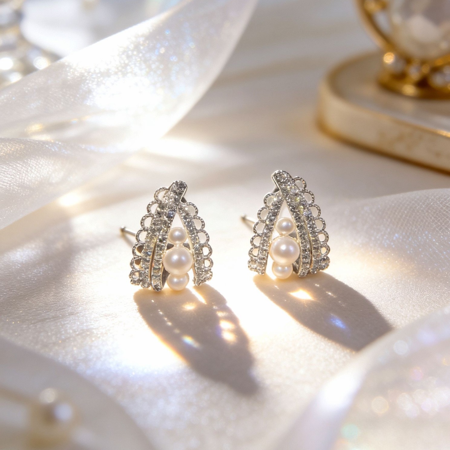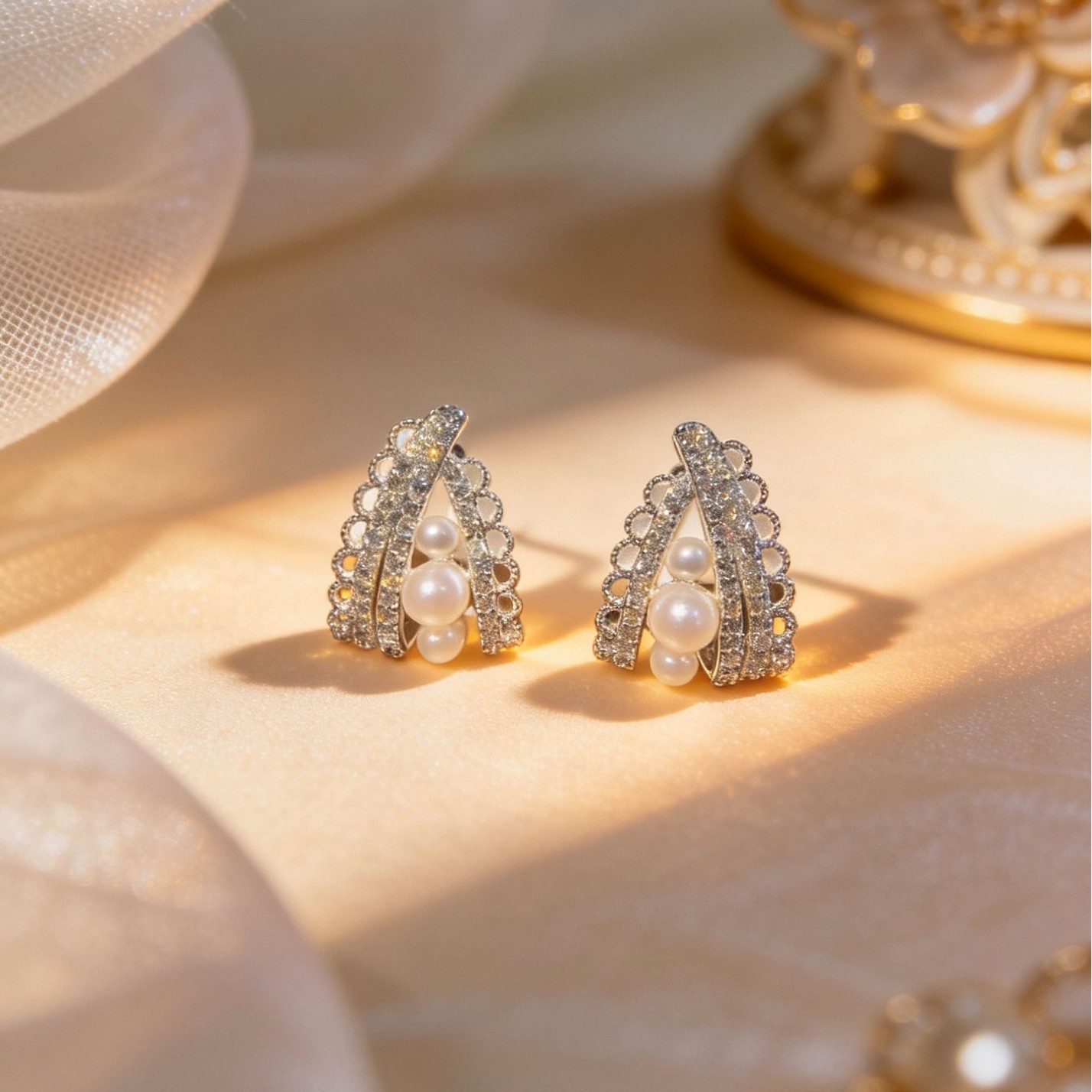 2026年新款轻奢微镶宫廷风镂空蕾丝珍珠耳钉女高级感时尚百搭耳饰 English | 投诉