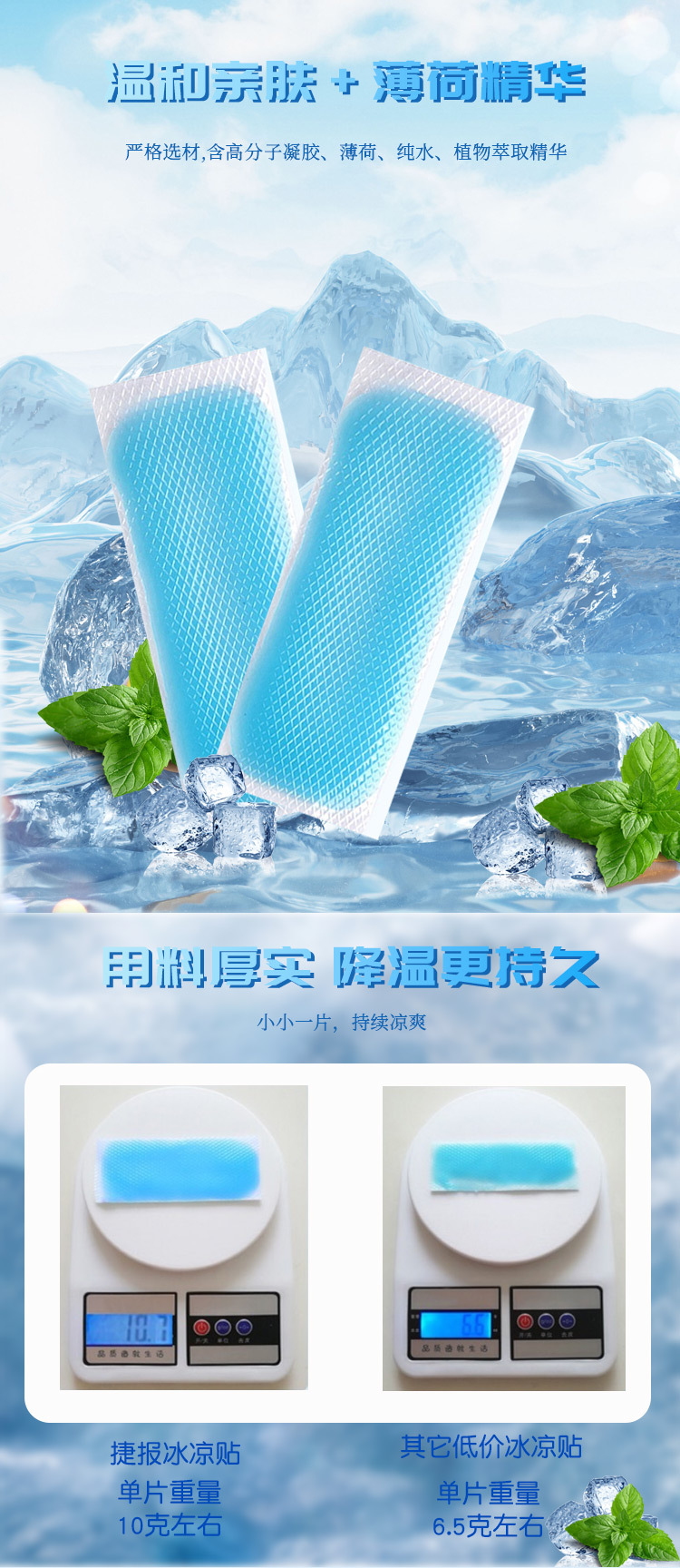 品牌: 捷报 材质: 水刺无纺布、水凝胶、甘油、薄荷因子等 风格: 卡通 是否跨境出口专供货源: 否 填充物材质: 水凝胶 薄荷因子 用途: 降温 产地: 江西九江庐山市 是否支持订制: 是 专利: 否 主要销售地区: 全球 规格: 冰凉贴 一袋2贴 版权: 无 货号: 现货冰凉贴 重量: 0.001 kg/袋