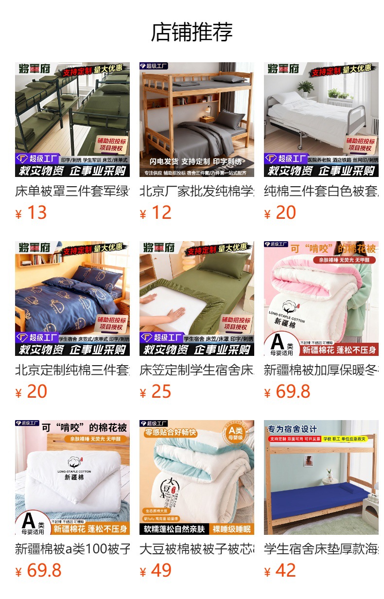 | 热熔棉六件套【被罩+被芯+枕套+枕芯+床单+褥子】 | ¥18763 | 99998套可售 |